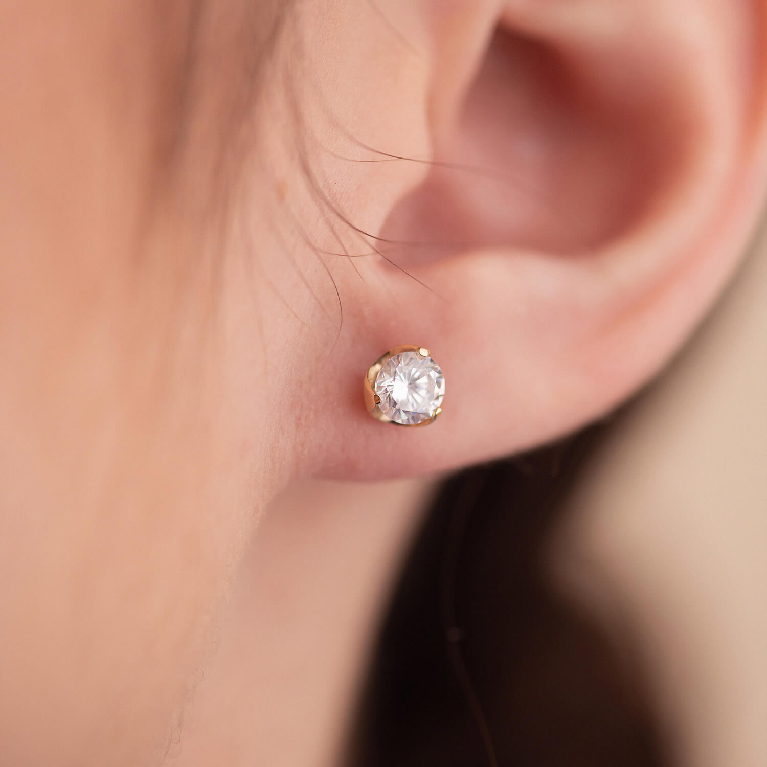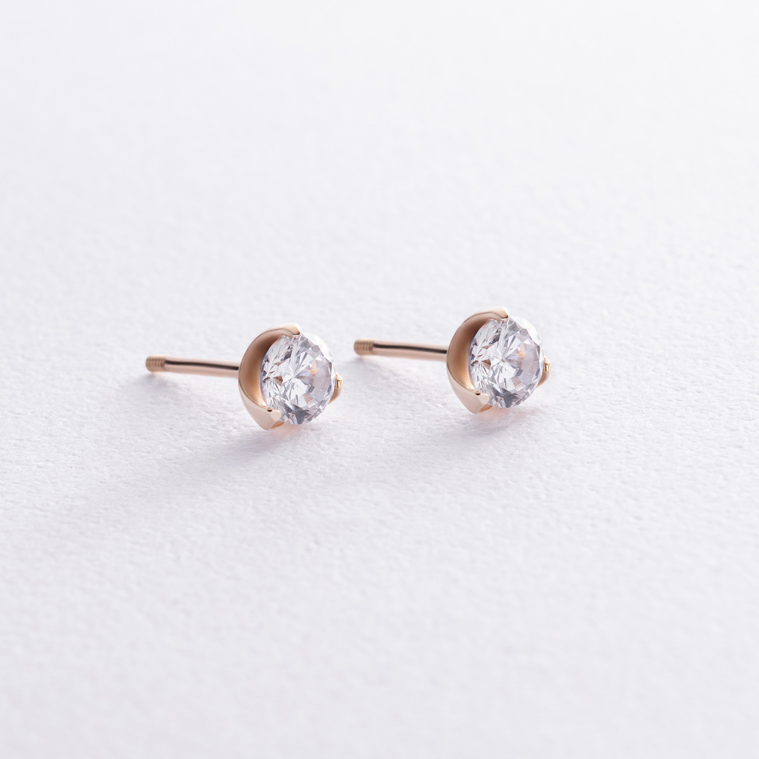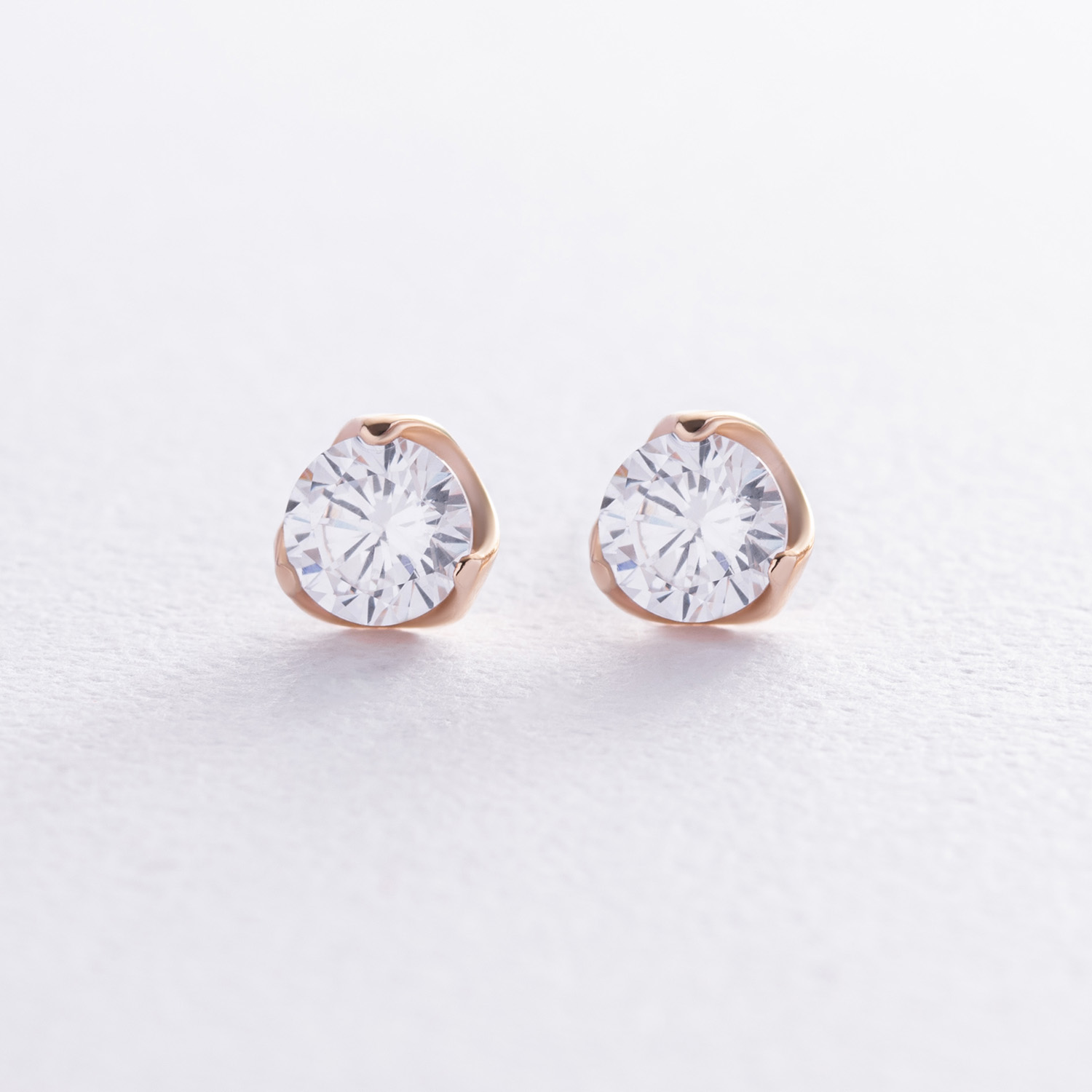 Серьги - пусеты с фианитами (желтое золото) с08346