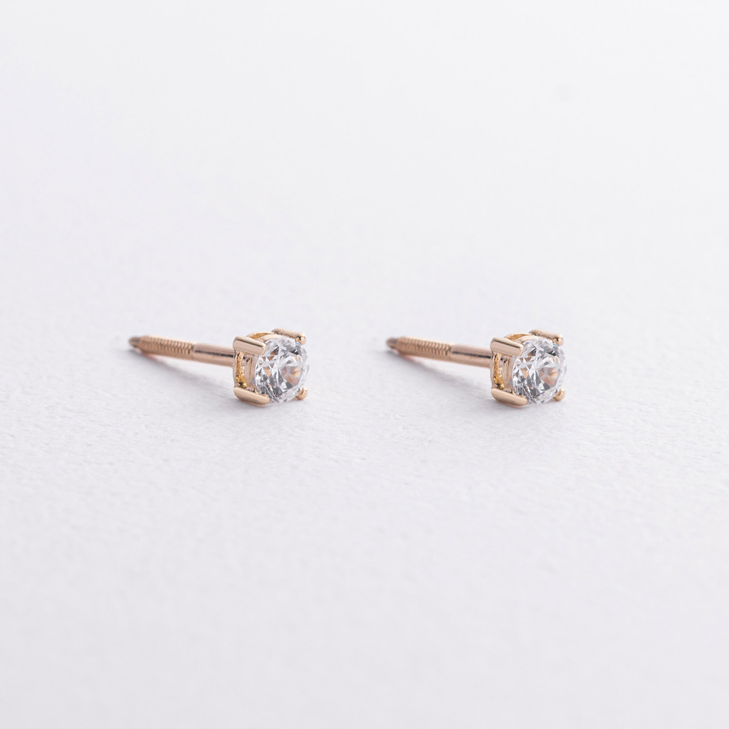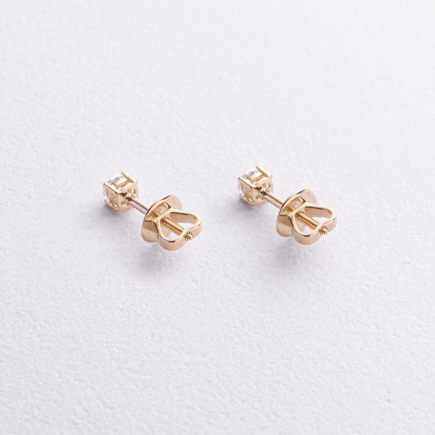 Серьги - пусеты с фианитами (желтое золото) с09641