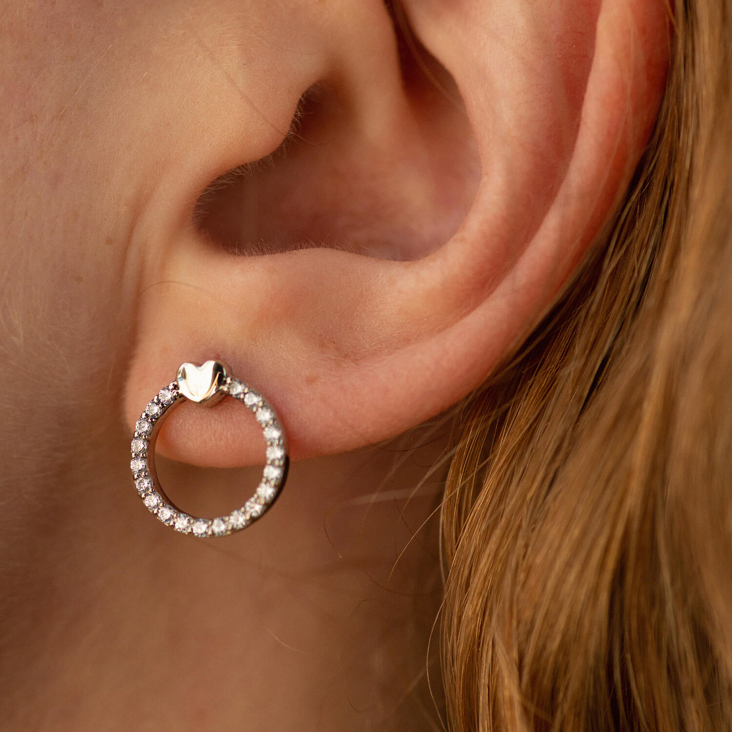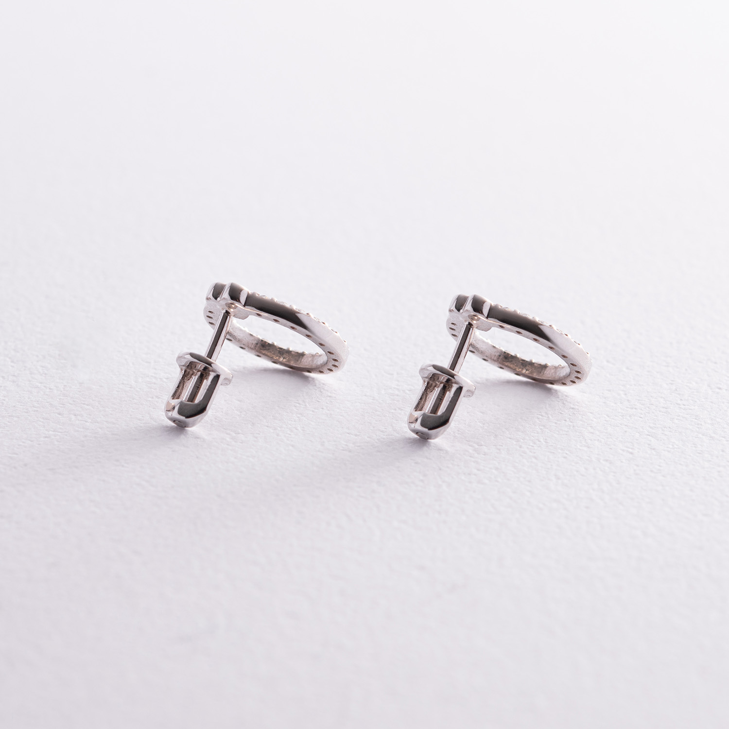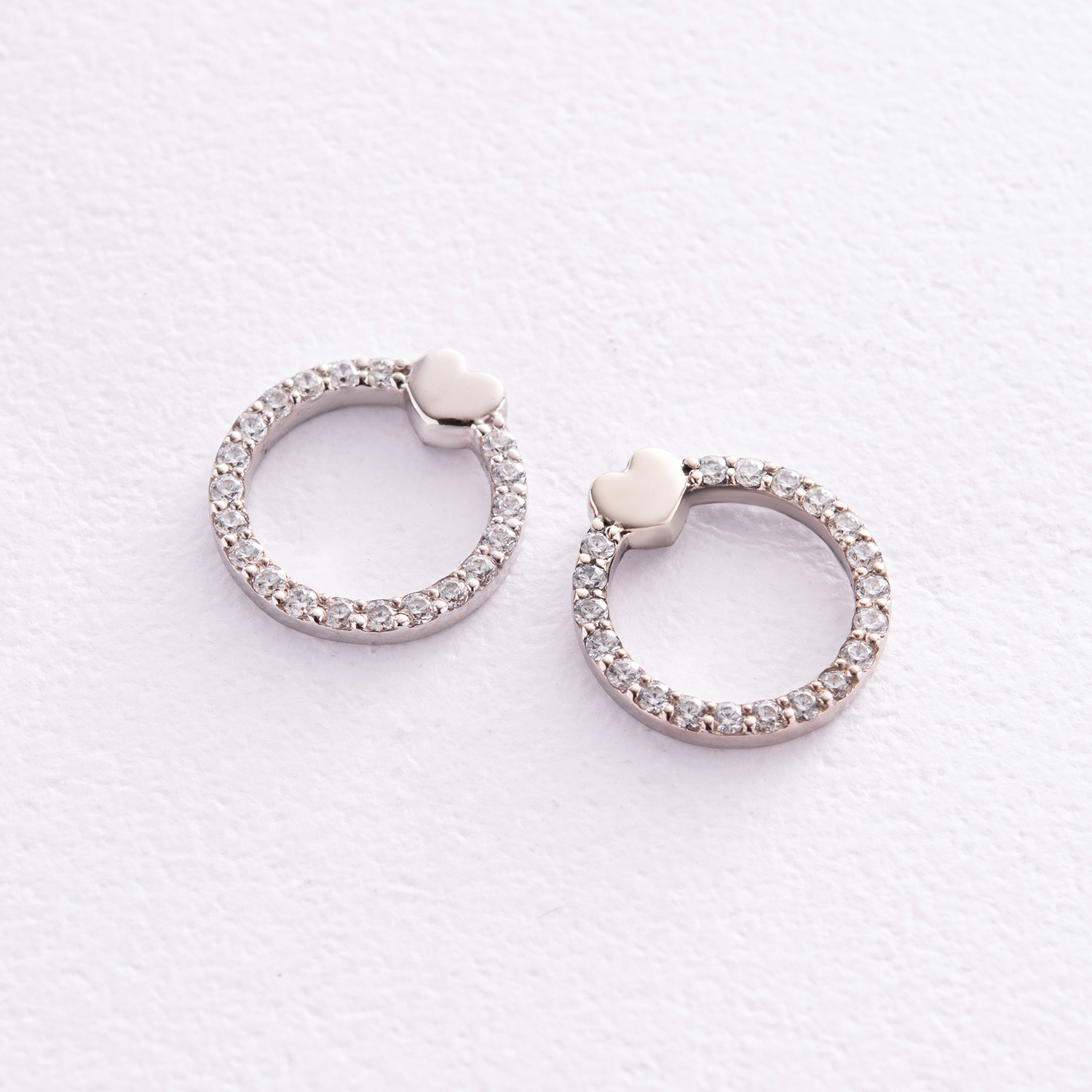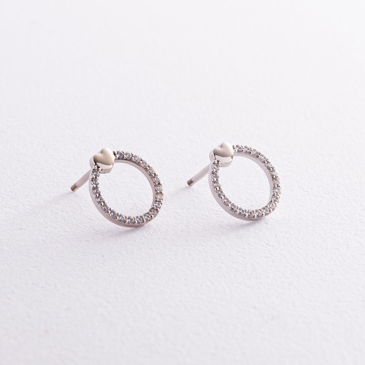 Серьги - пусеты "Сердечки" с фианитами (белое золото) с08475