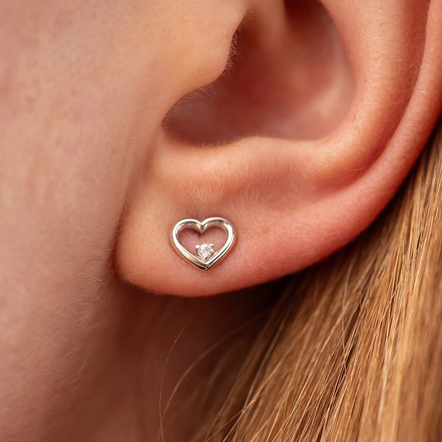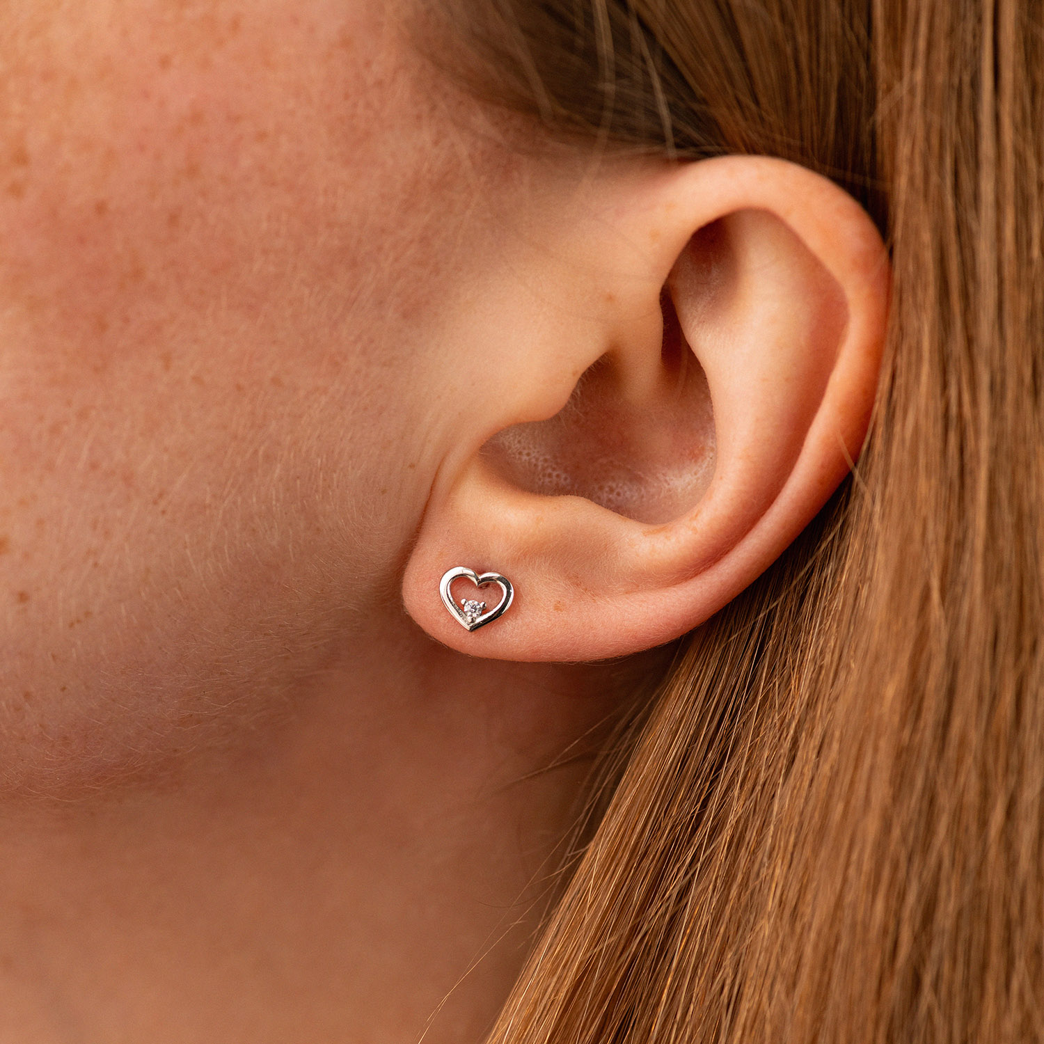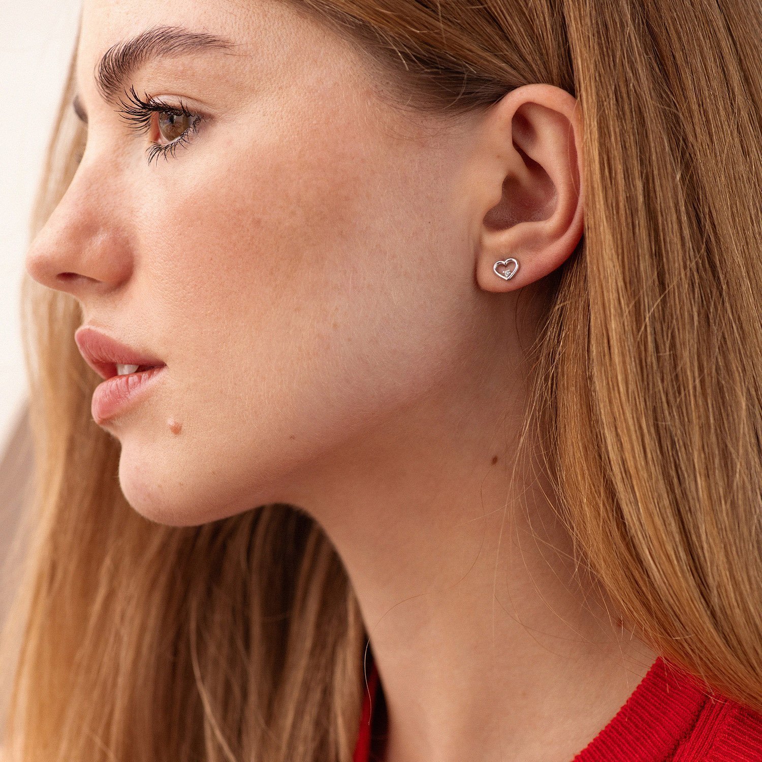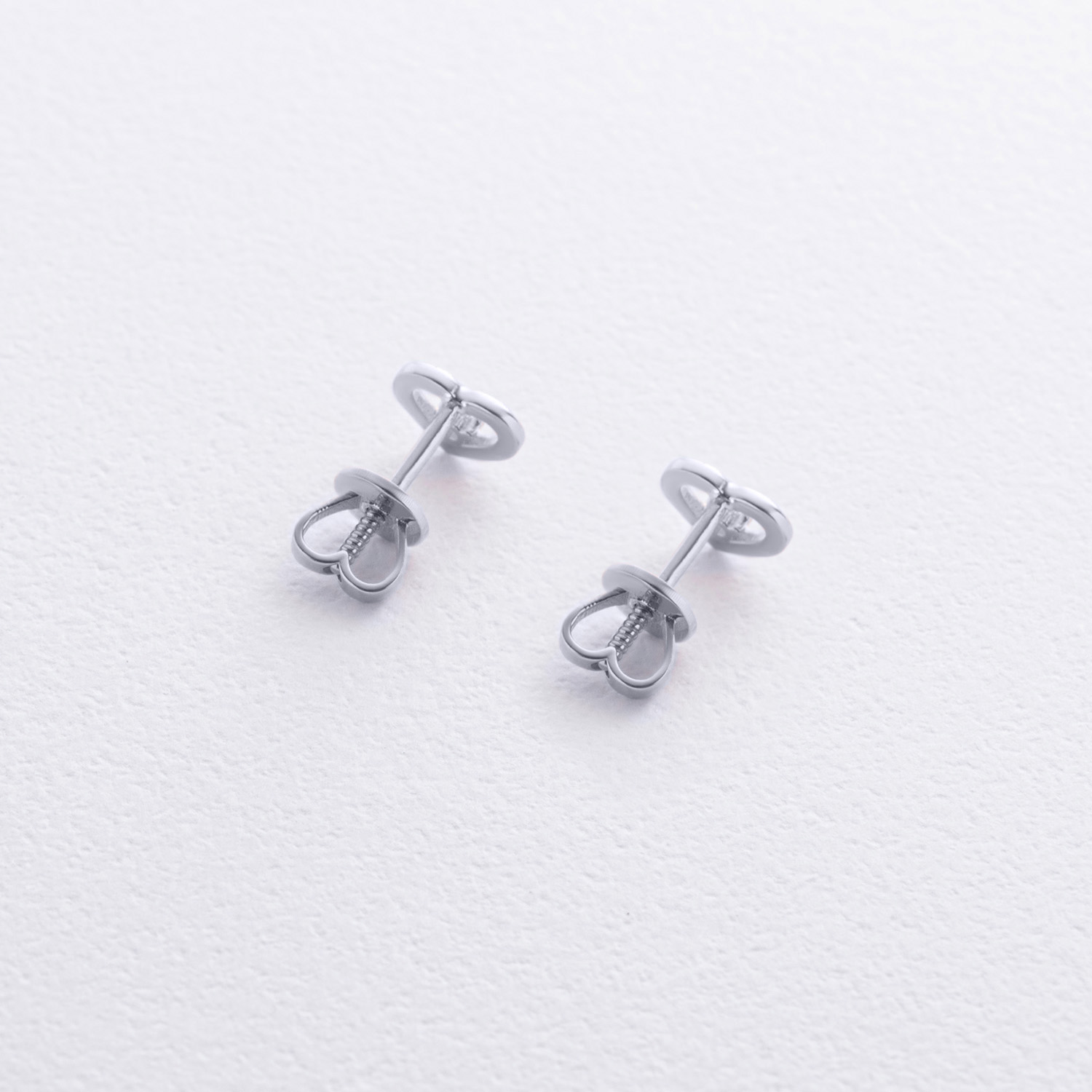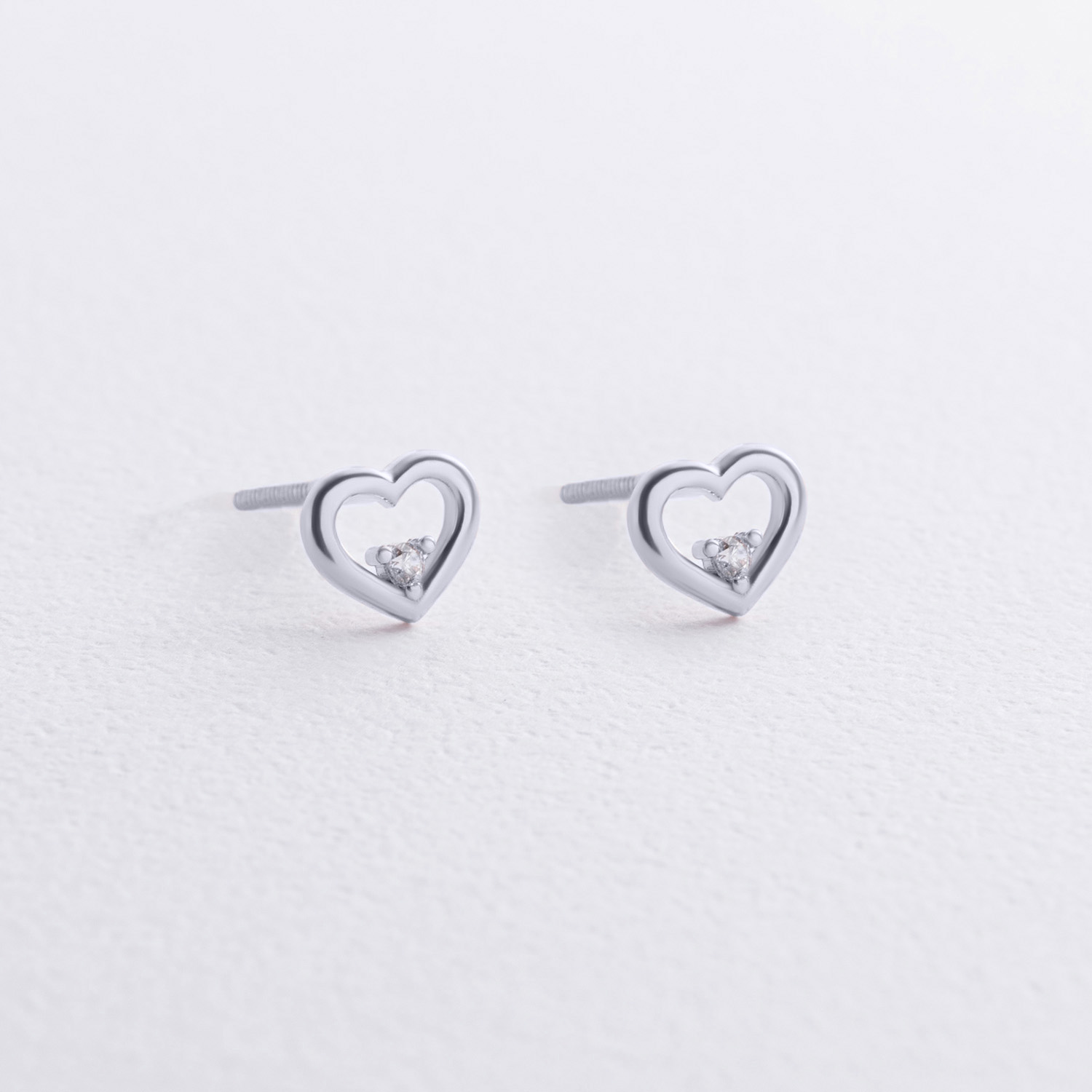 Серьги - пусеты "Сердечки" в белом золоте (фианиты) с08474
