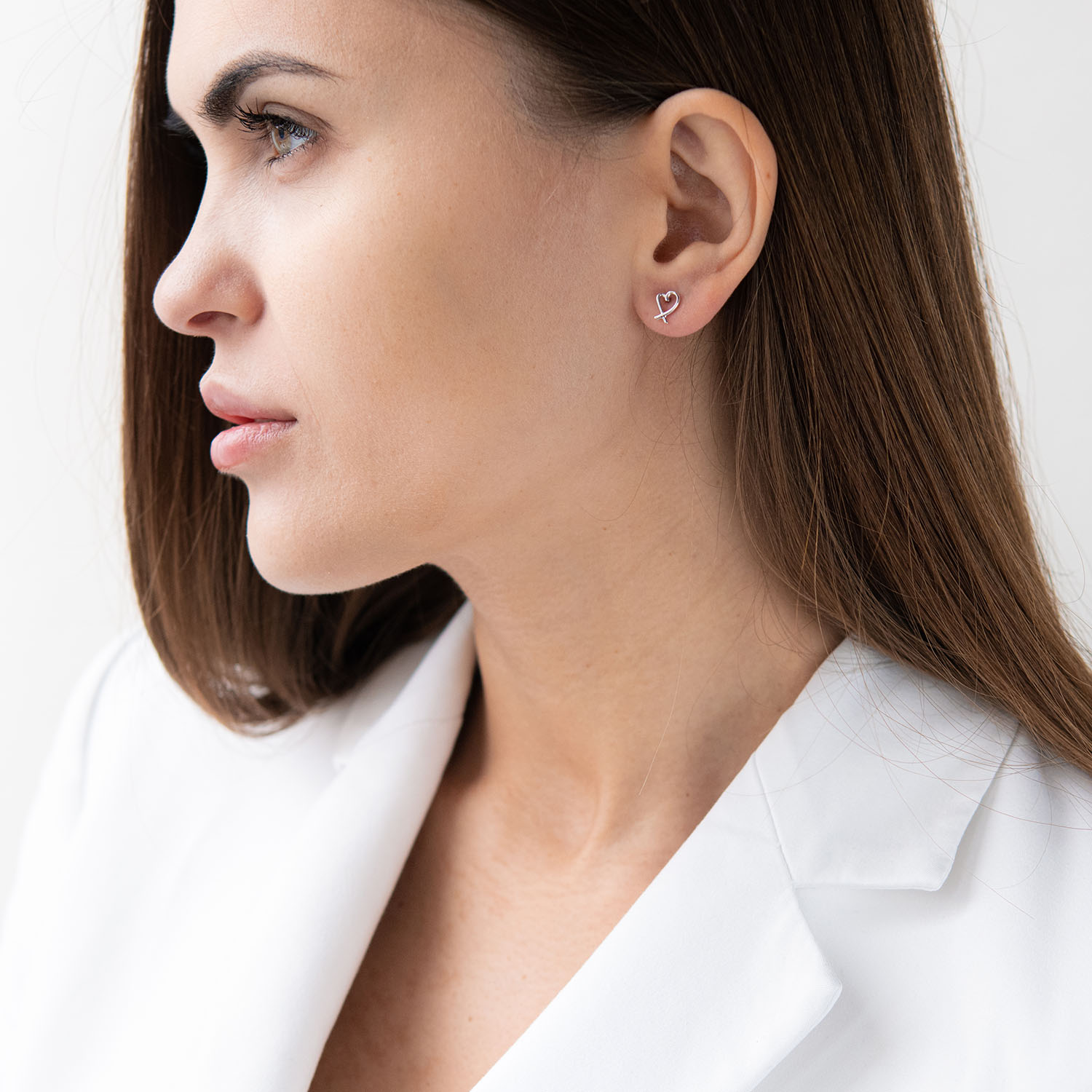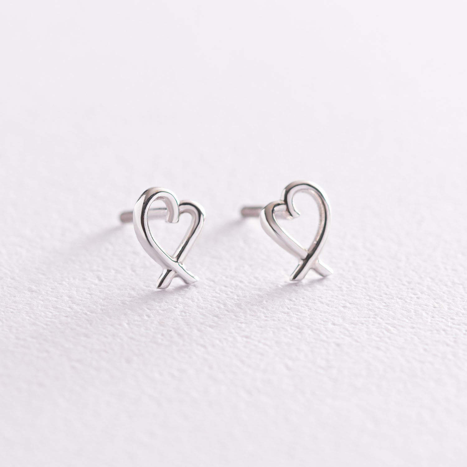 Серьги - пусеты "Сердечки" в белом золоте с07122