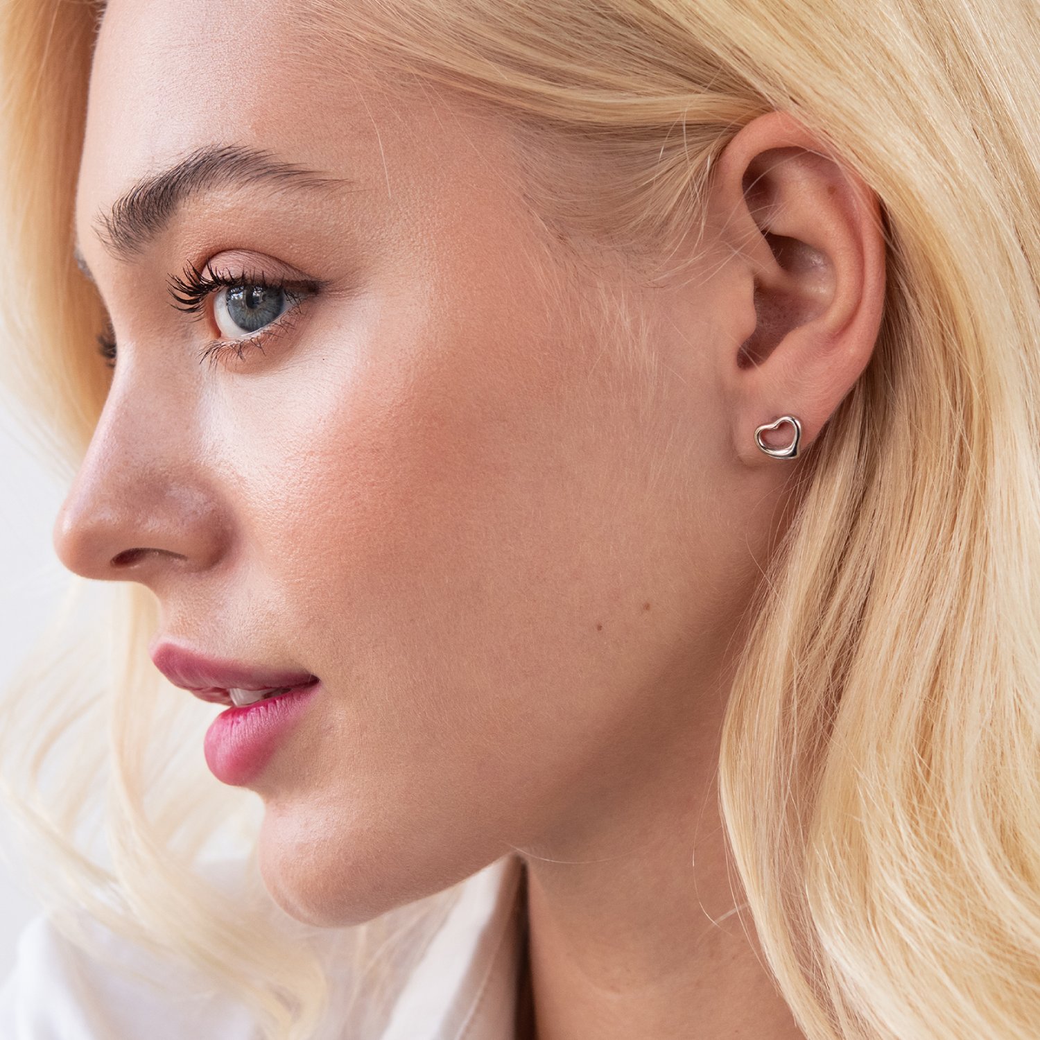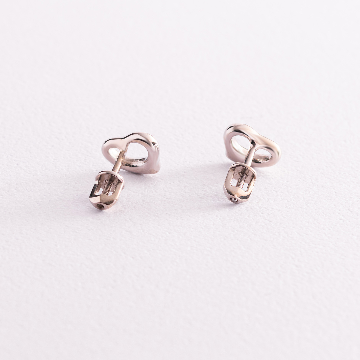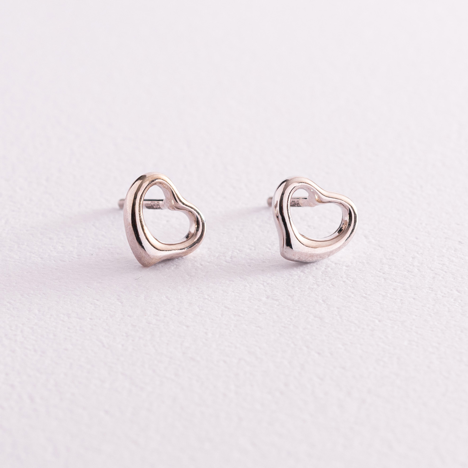 Серьги - пусеты "Сердечки" в белом золоте с07659