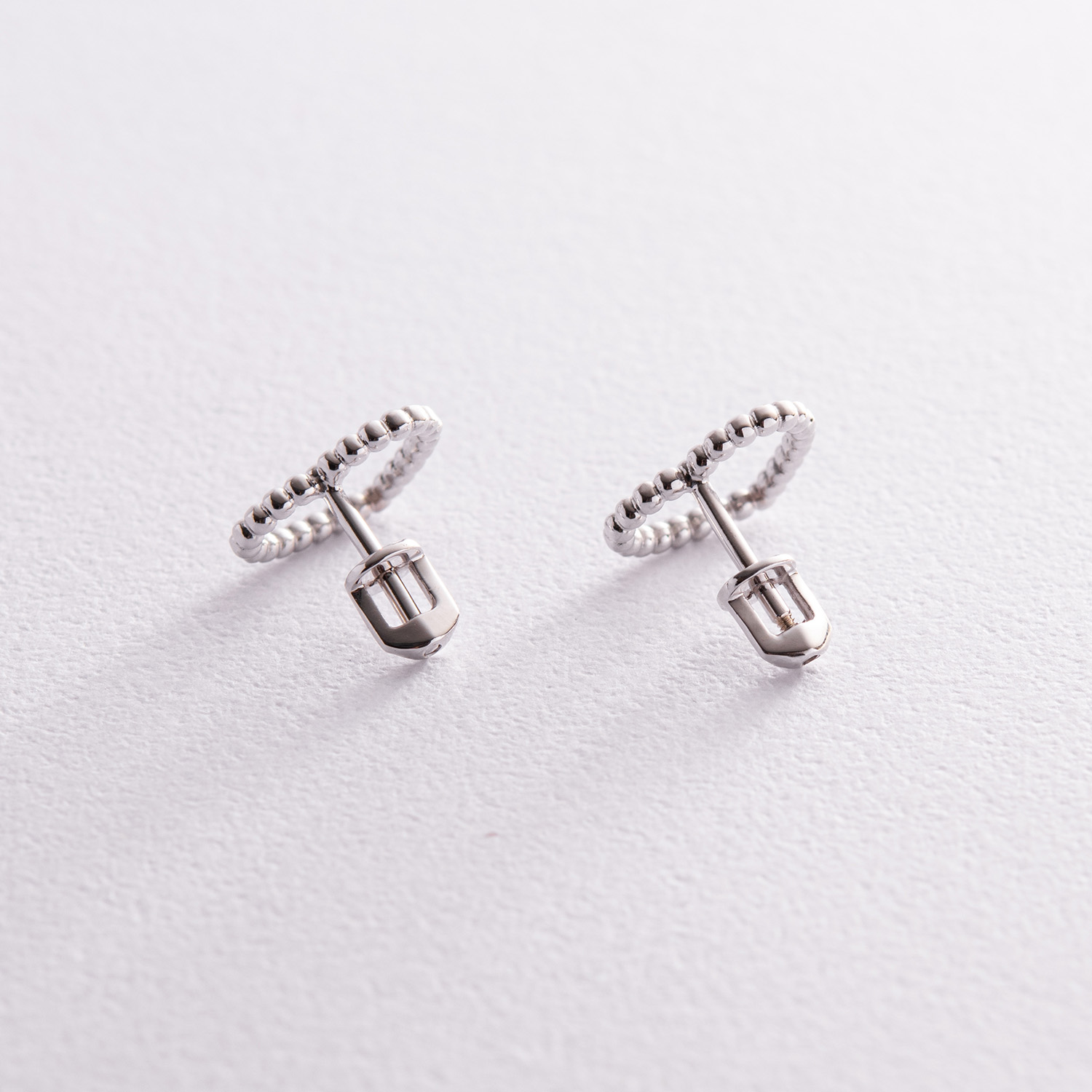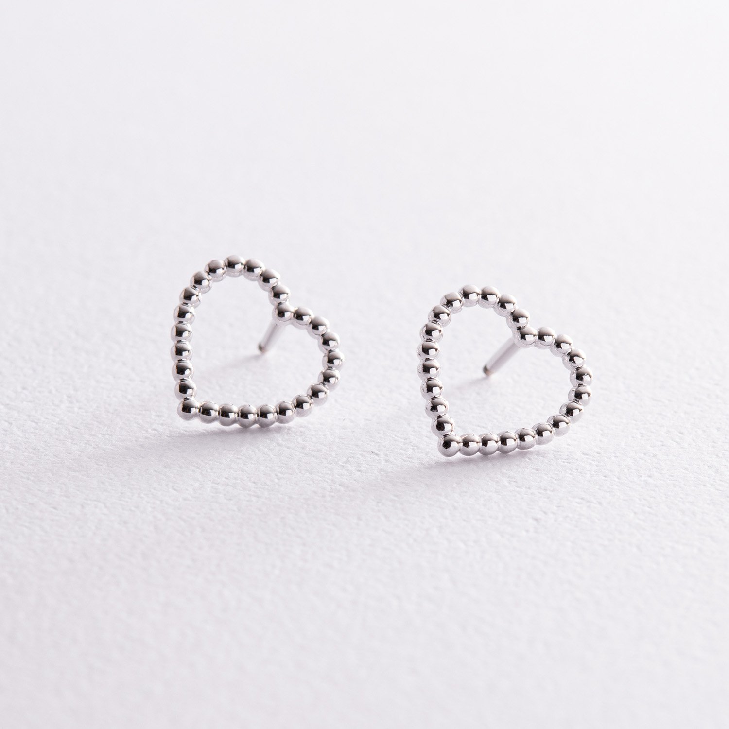Серьги - пусеты "Сердечки" в белом золоте с08296