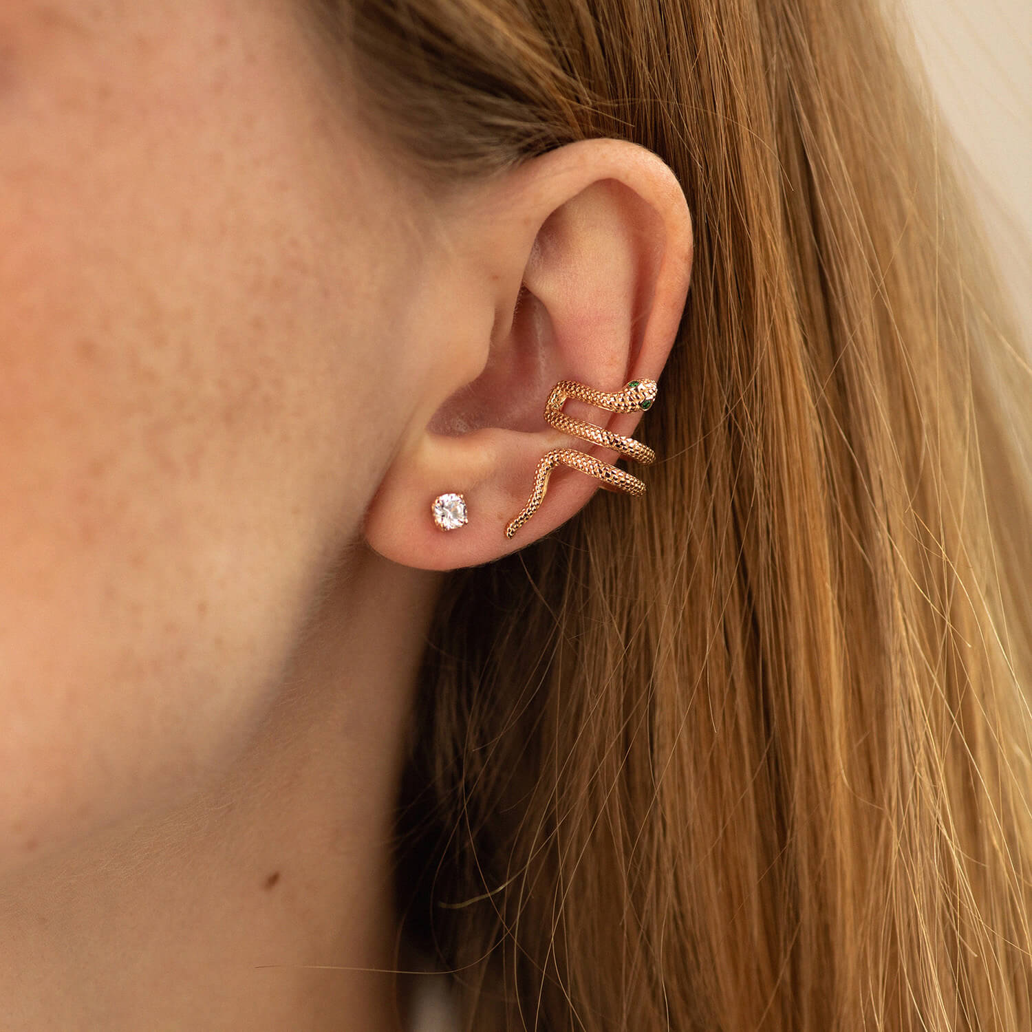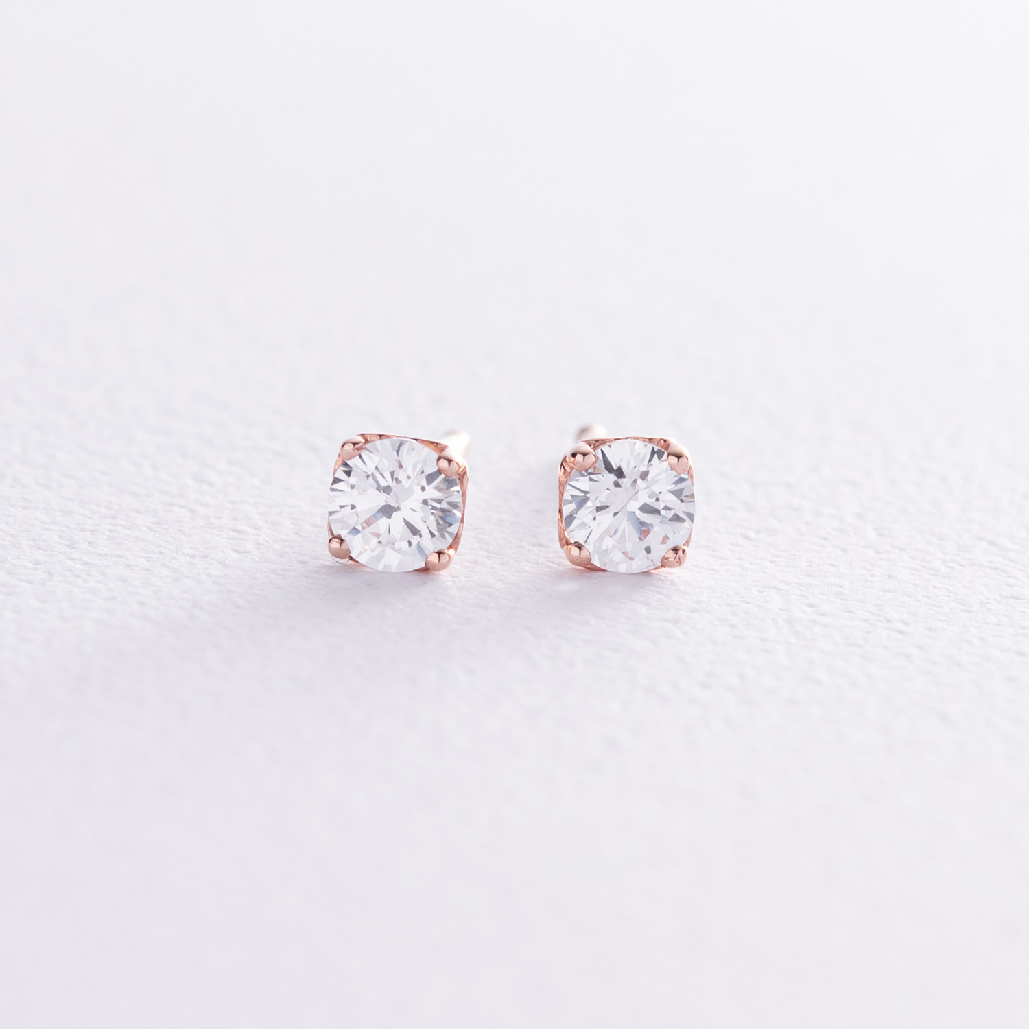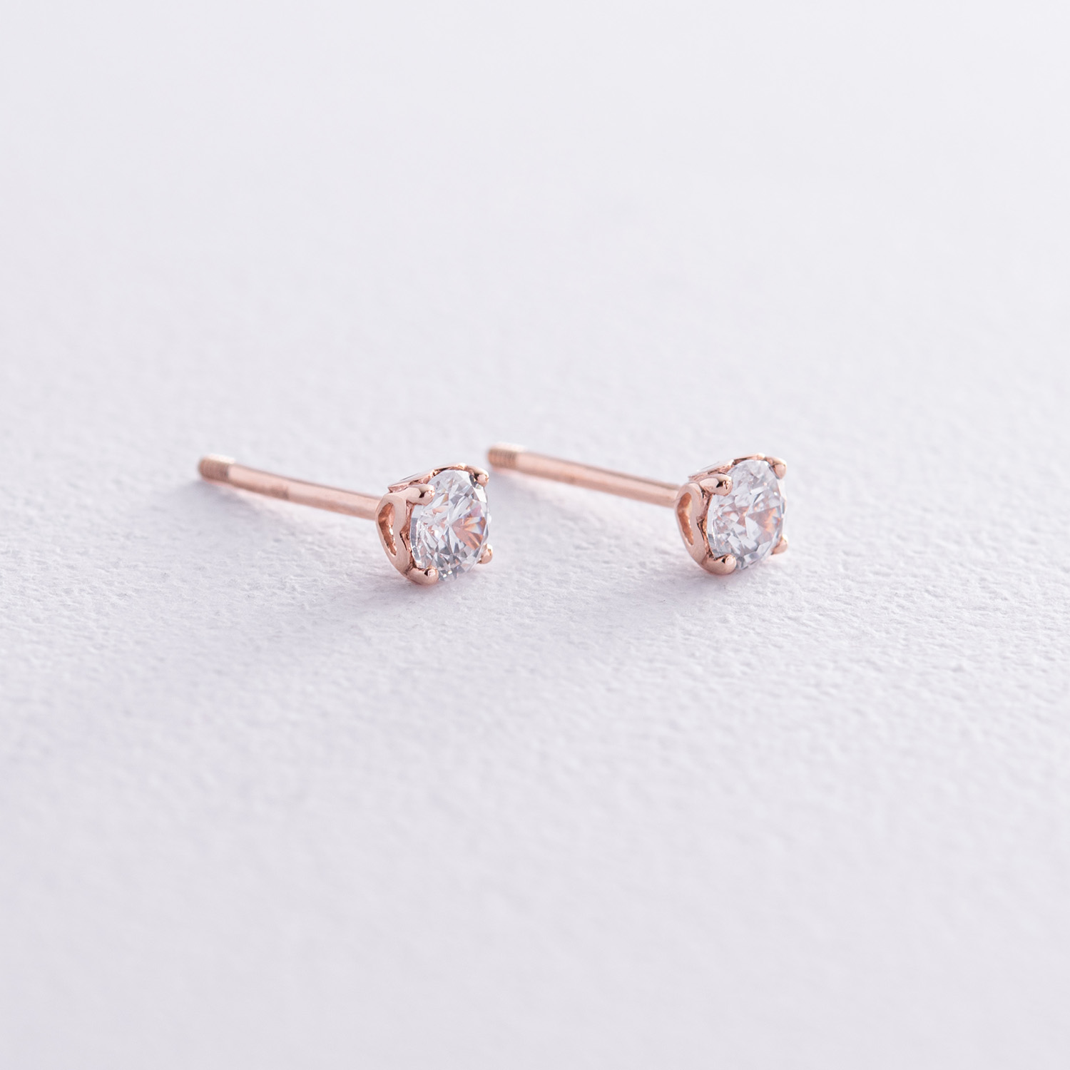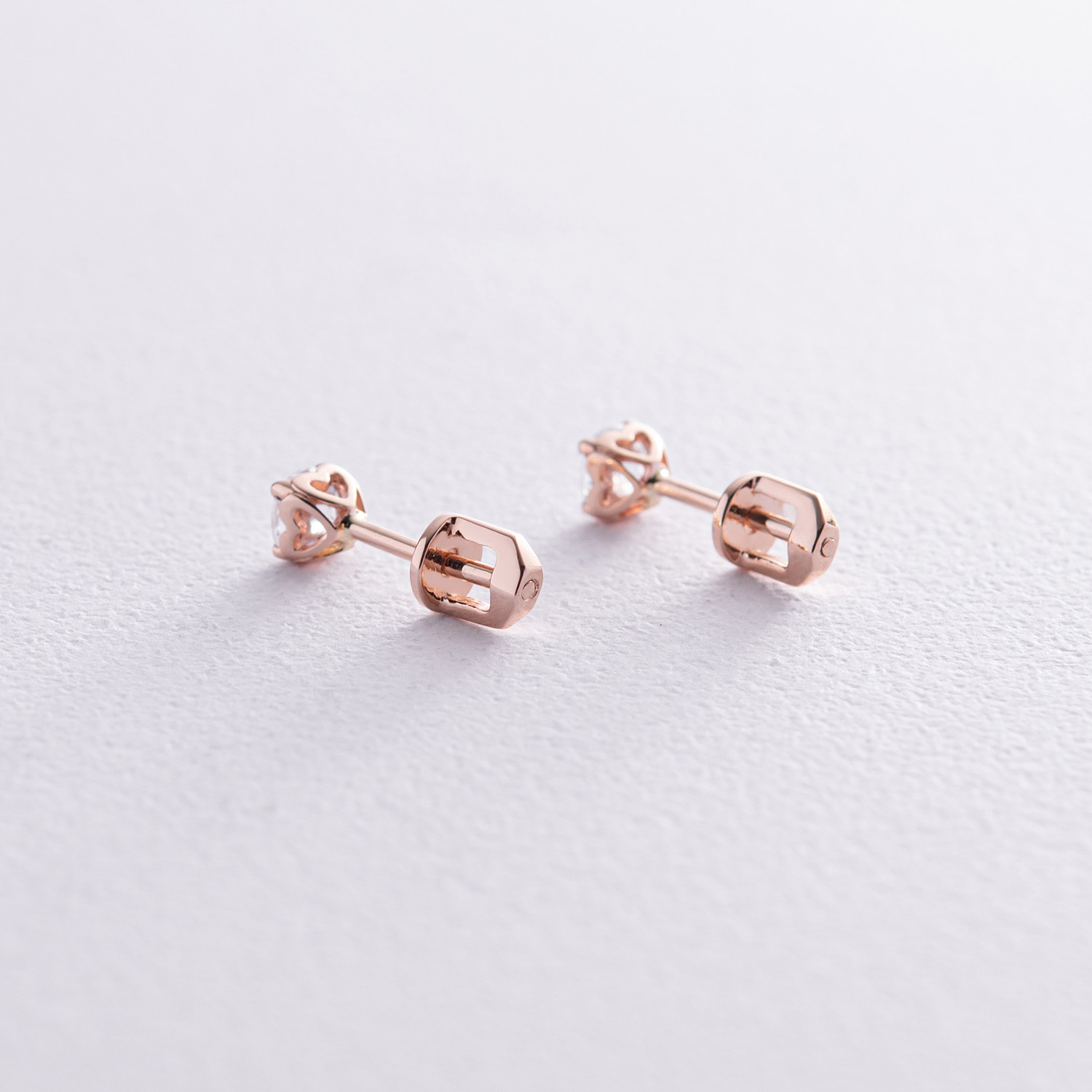 Серьги - пусеты "Сердечки" в красном золоте (фианиты) с06034