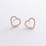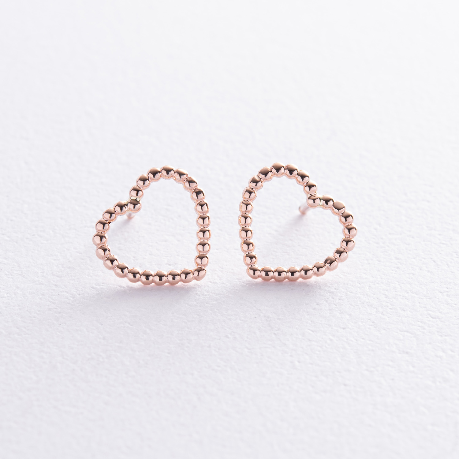 Серьги - пусеты "Сердечки" в красном золоте с08445