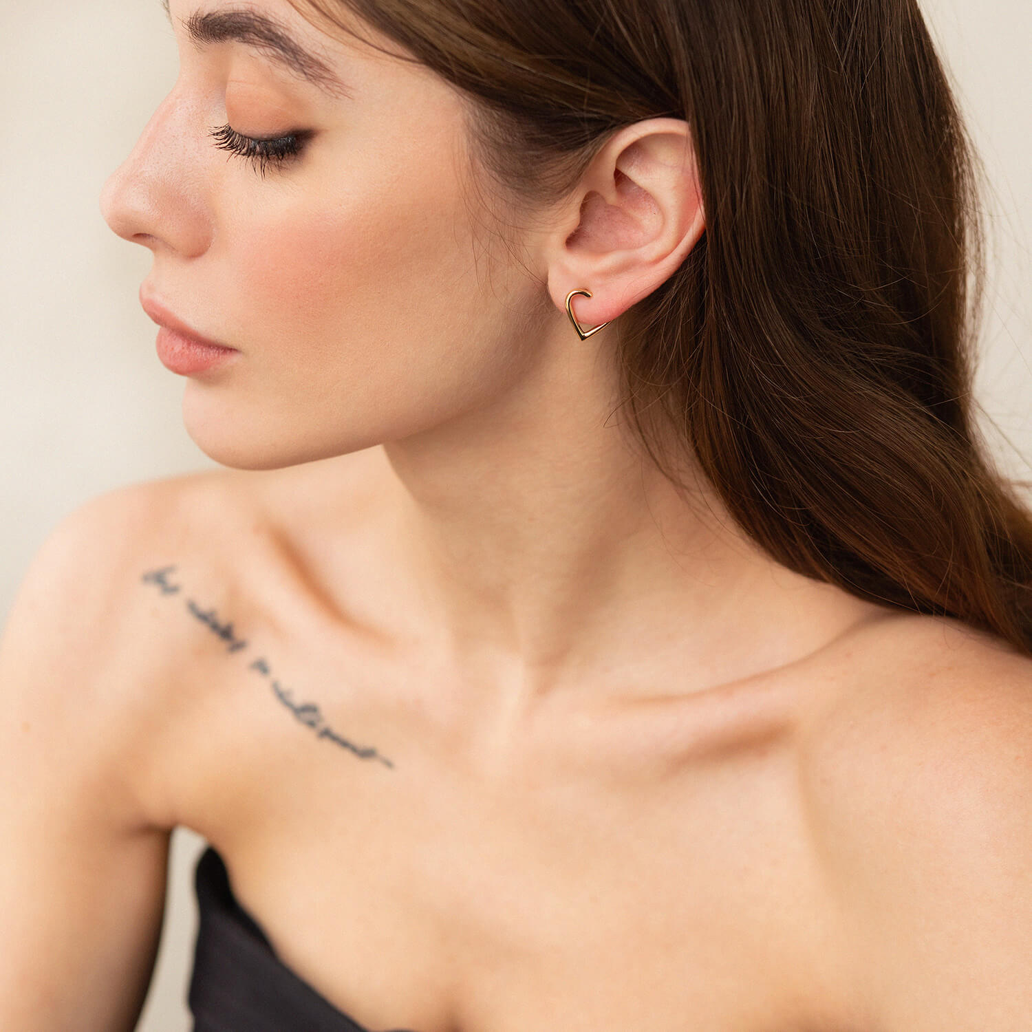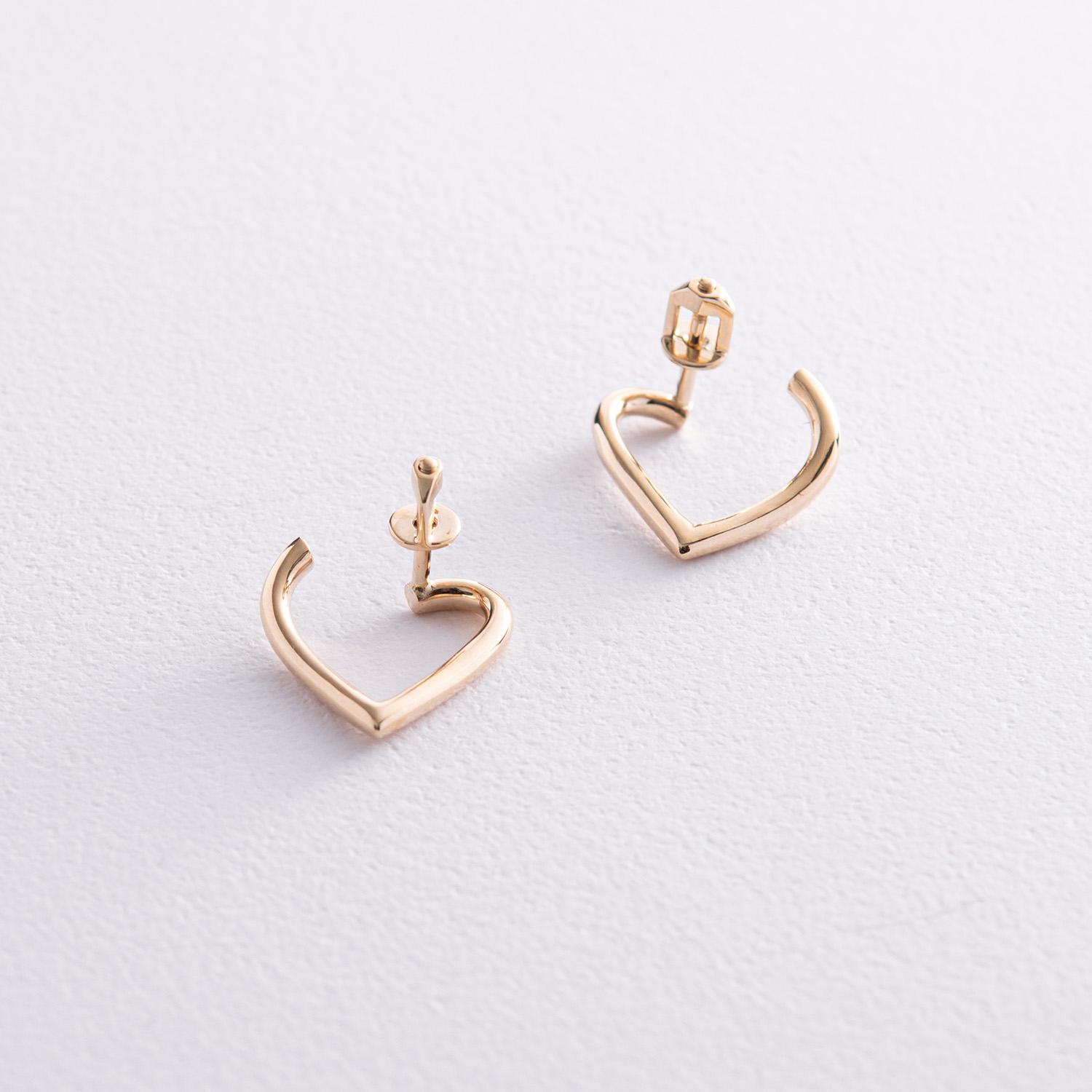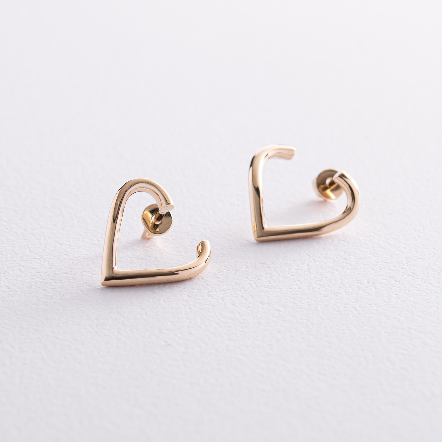Серьги - пусеты "Сердечки" в желтом золоте с08133