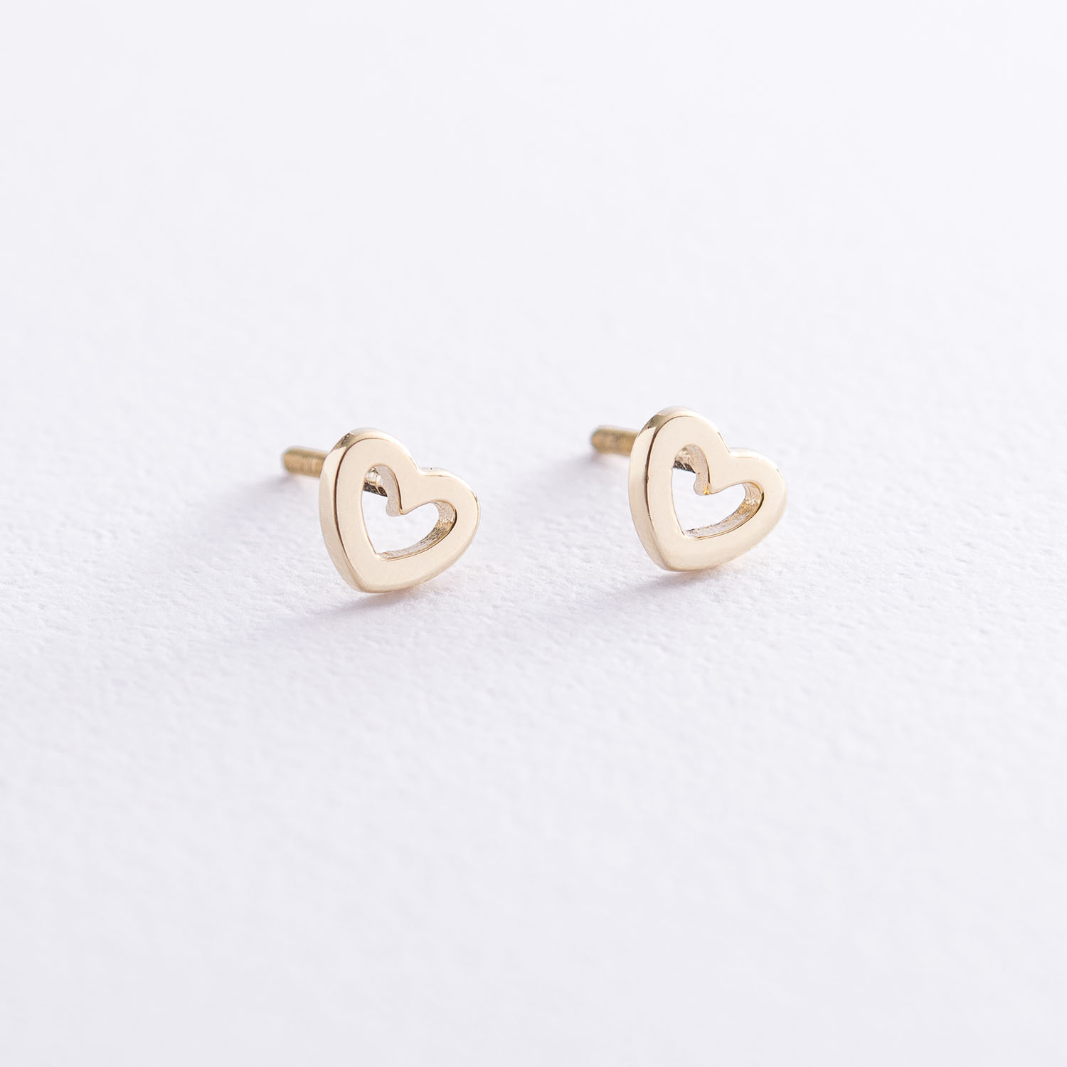 Серьги-пусеты "Сердечки" в желтом золоте с06947