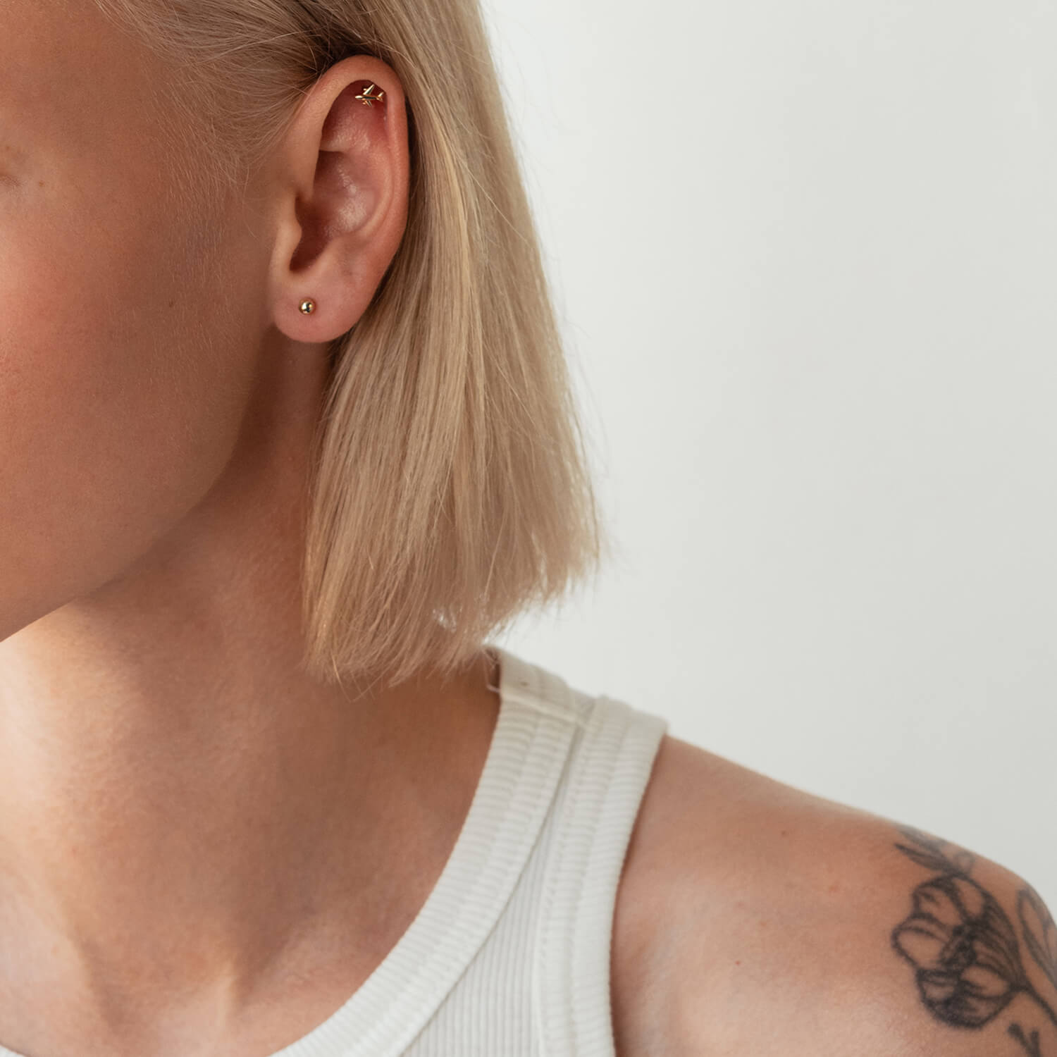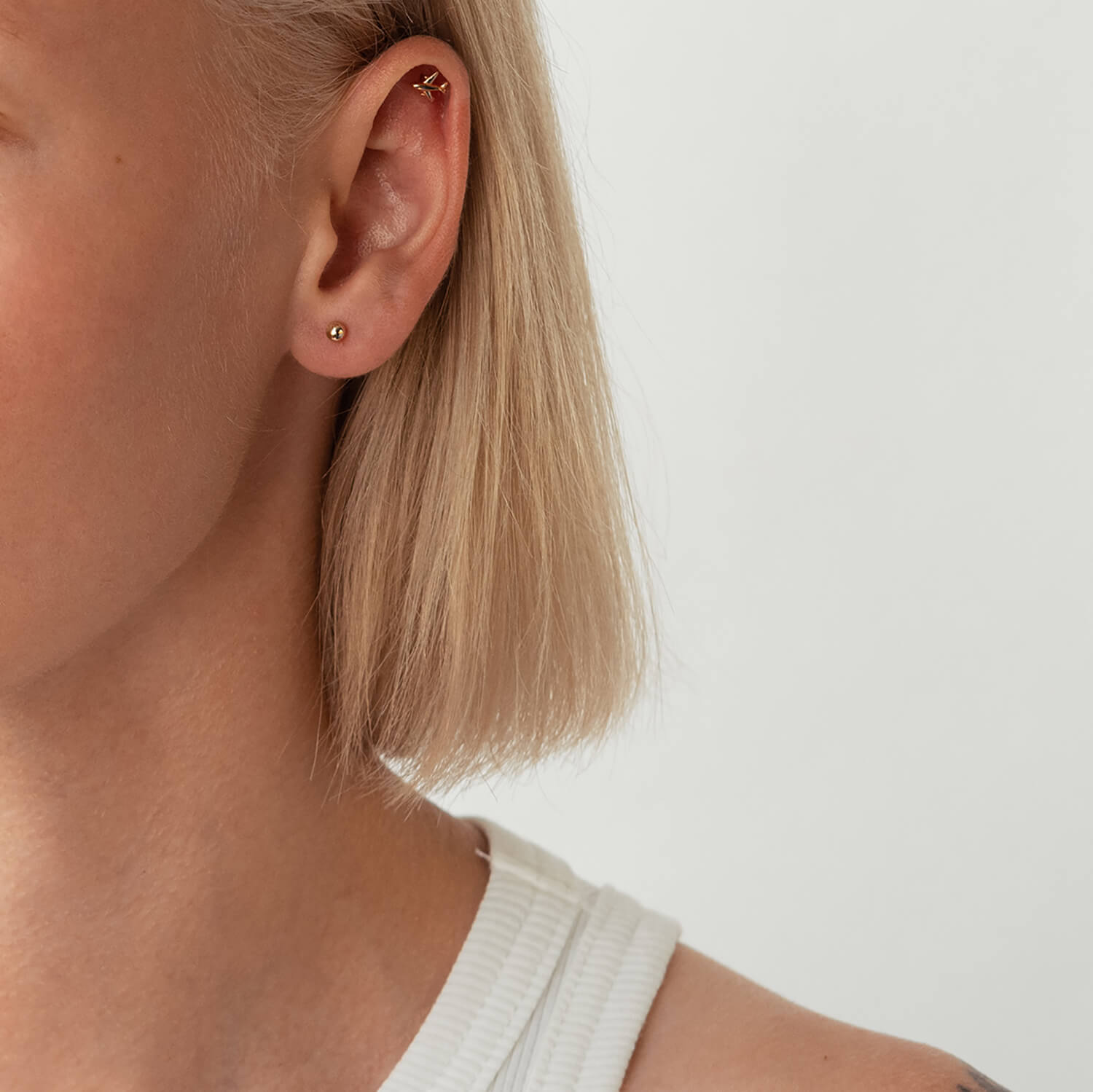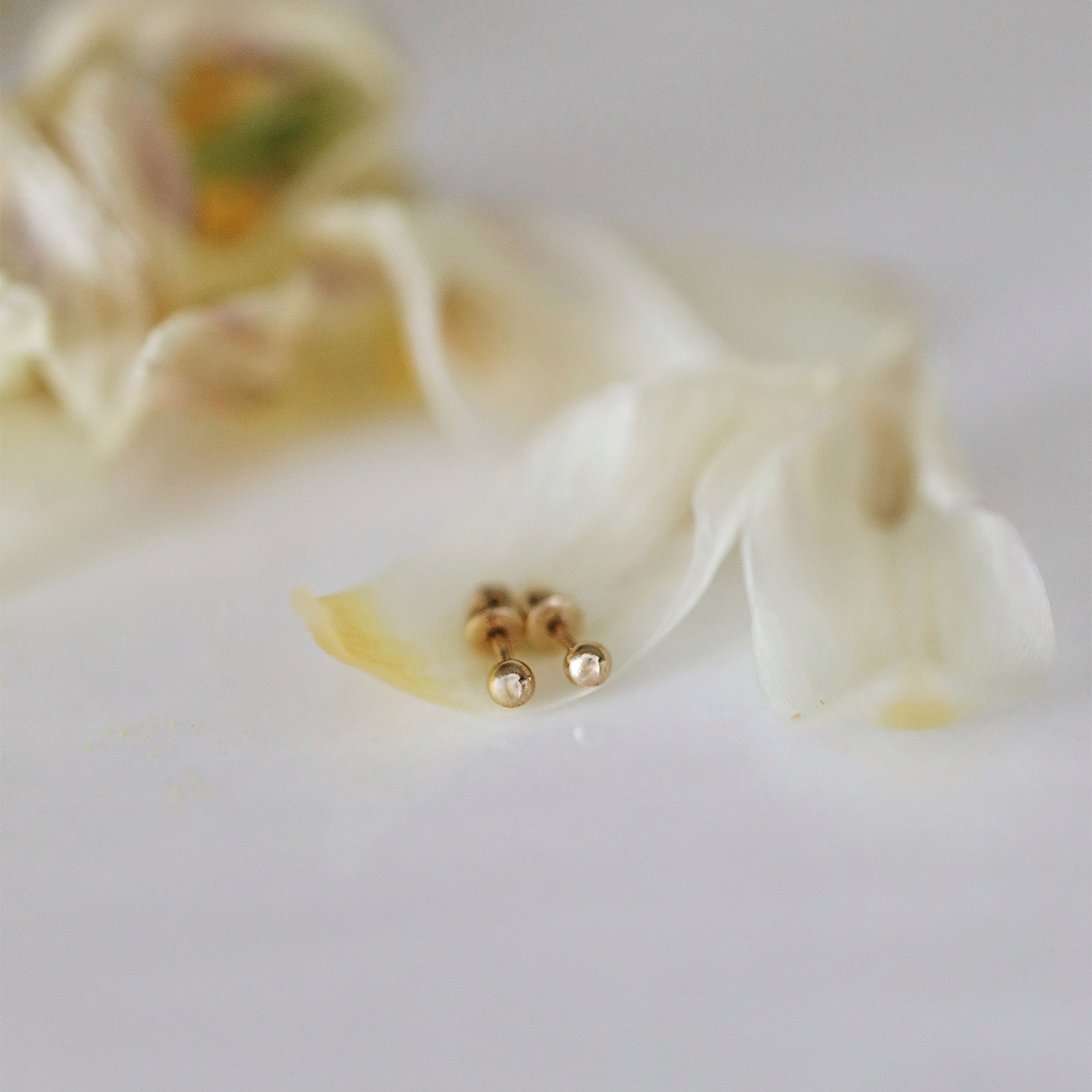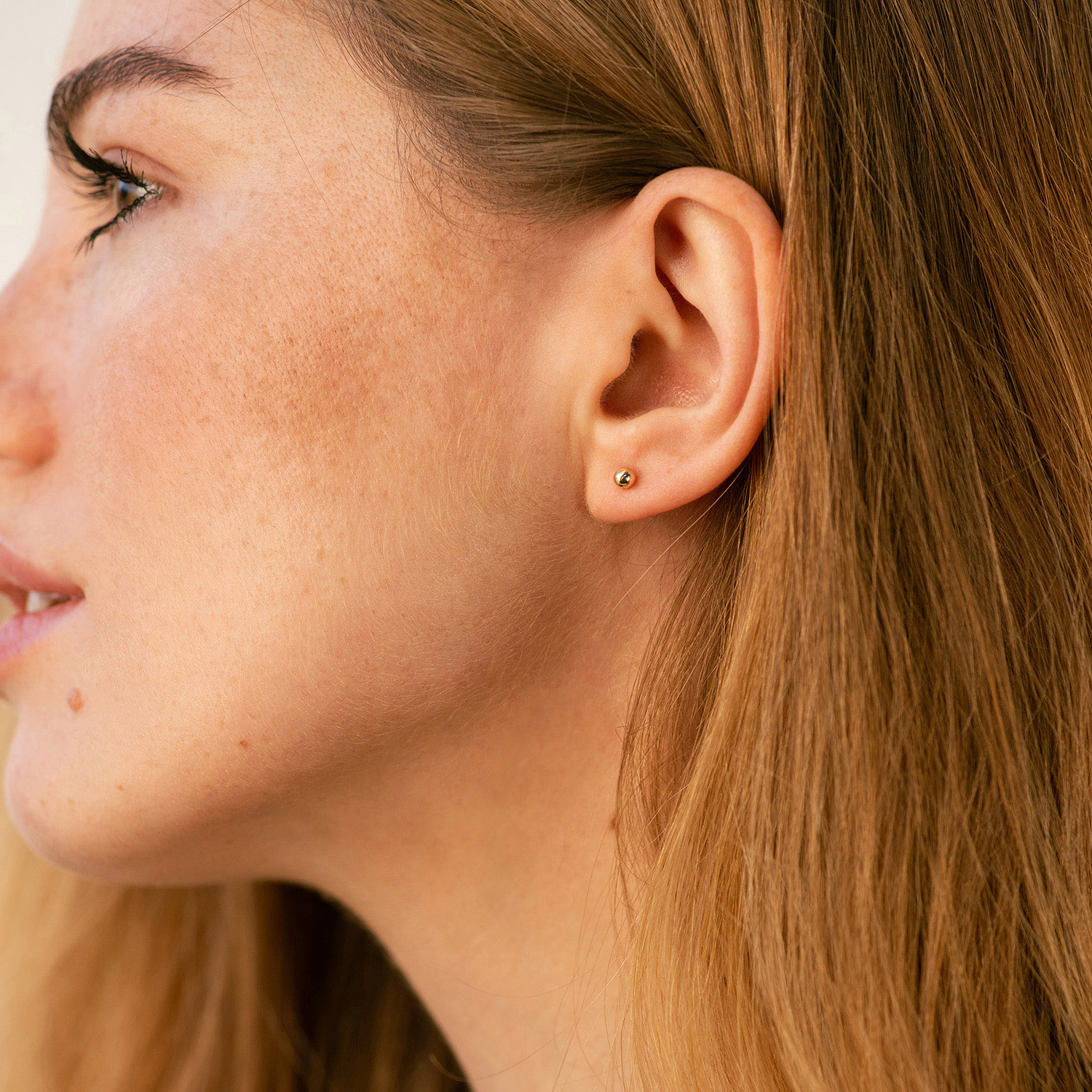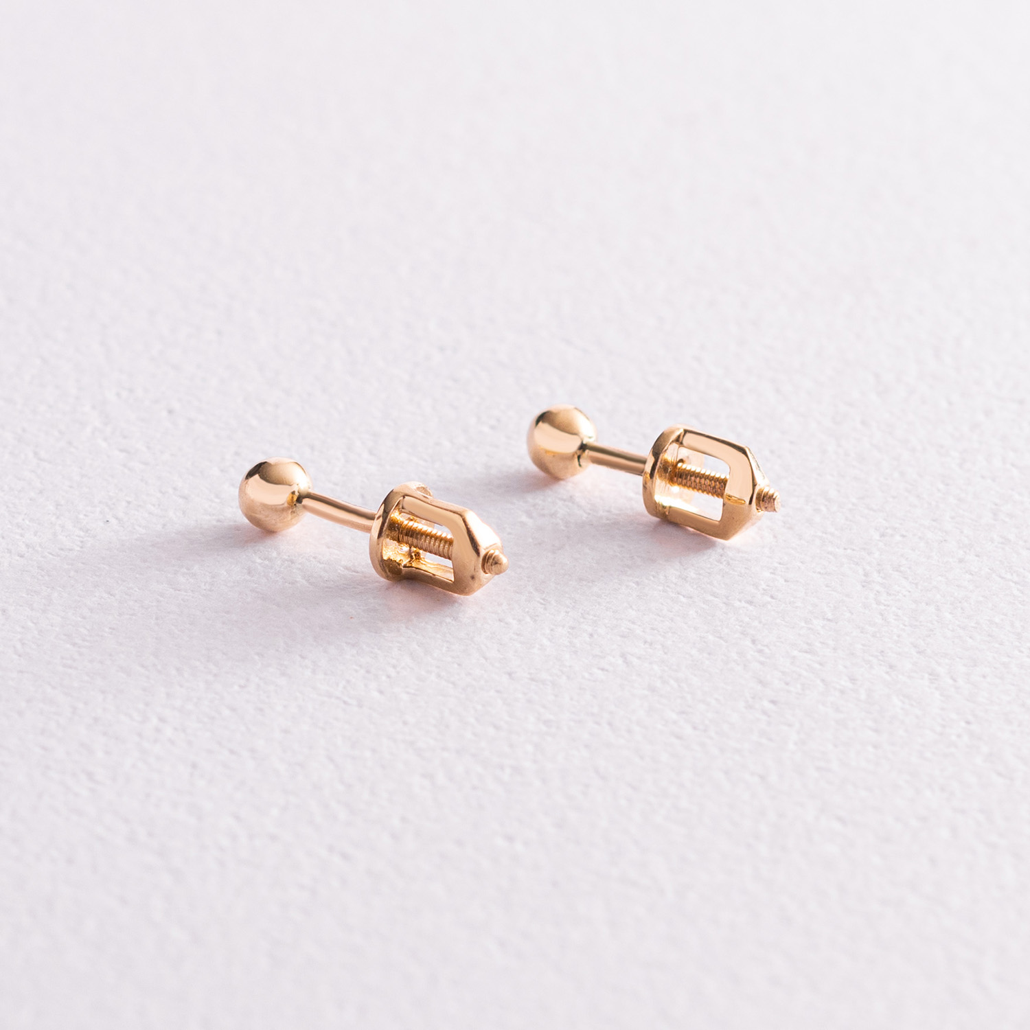 Серьги - пусеты "Шарики" в желтом золоте (0.4 см) с07322