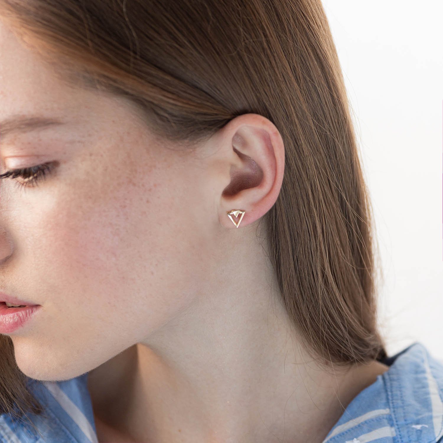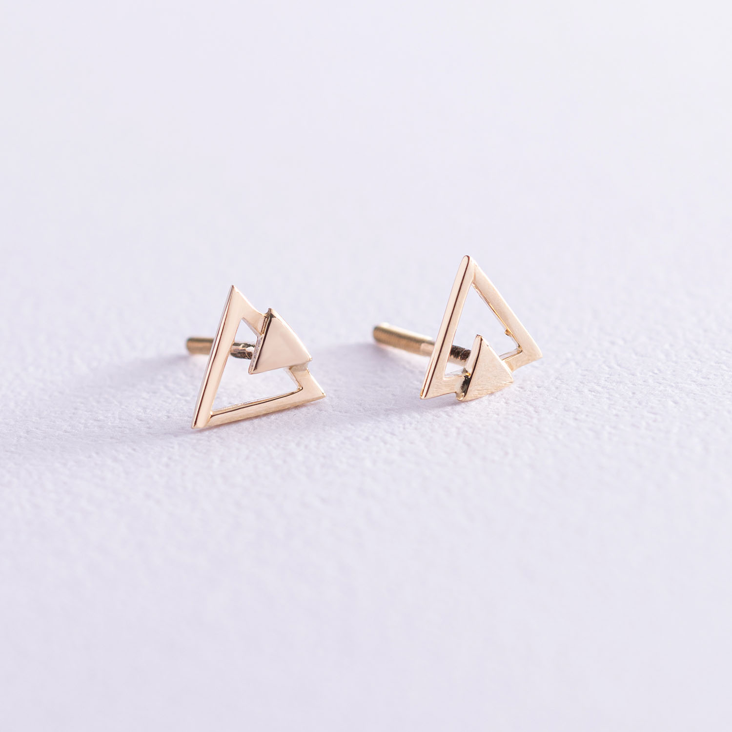 Серьги-пусеты "Треугольники" из желтого золота с06997