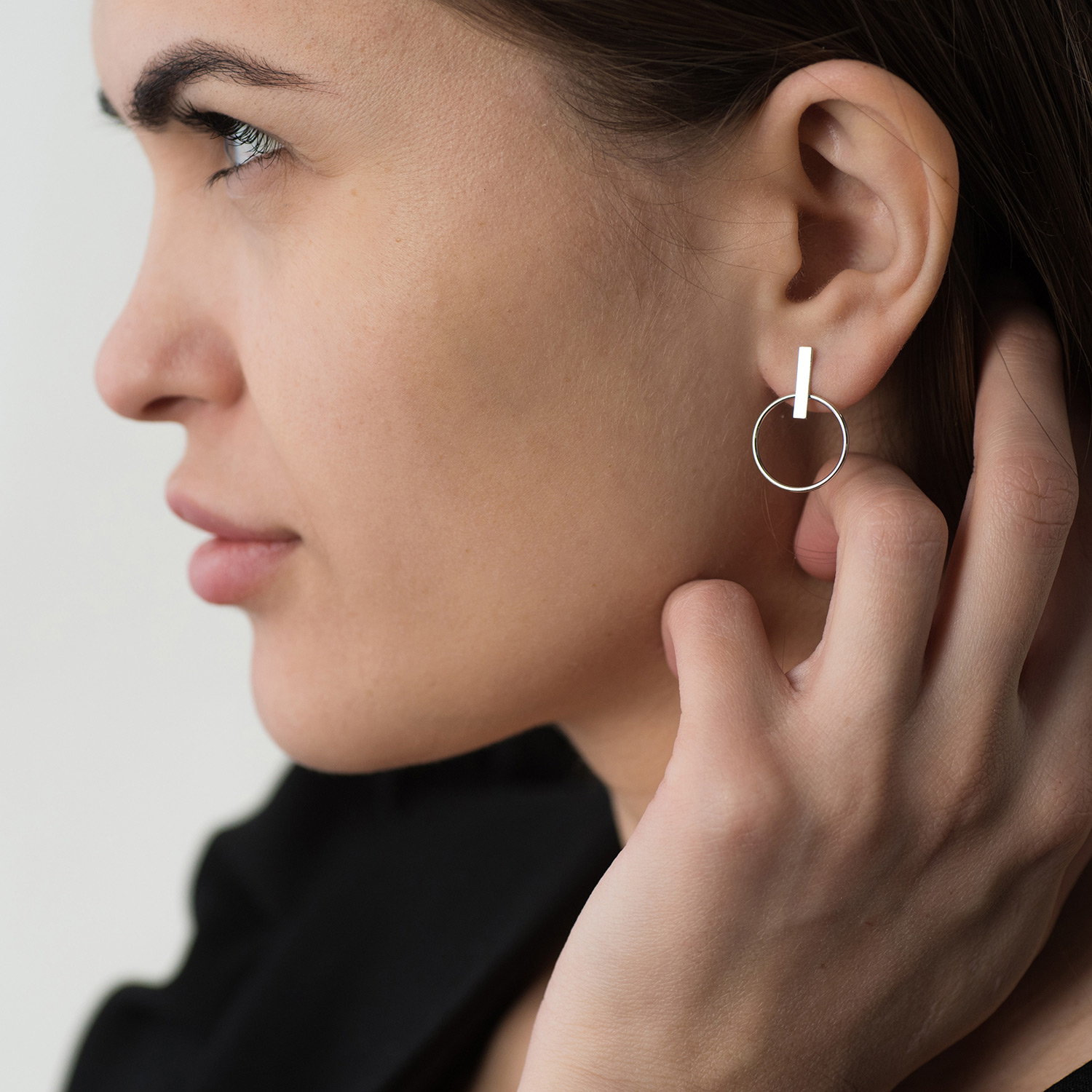 Серьги - пусеты "Уверенность" в белом золоте с06685