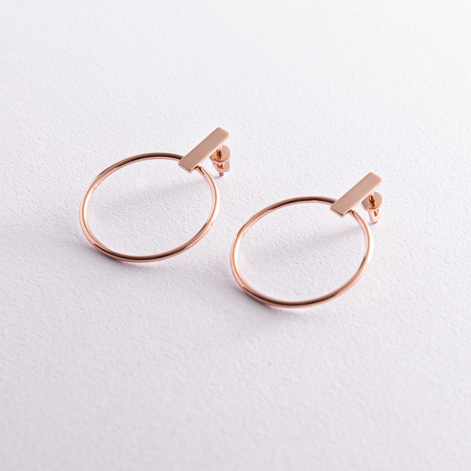 Серьги - пусеты "Уверенность" в красном золоте с07884