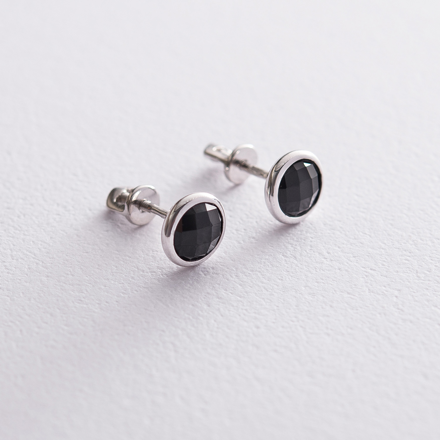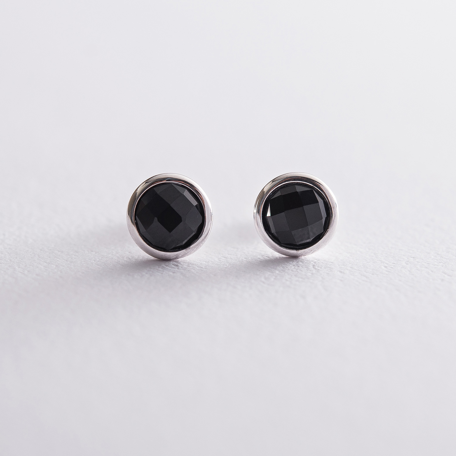 Серьги - пусеты в белом золоте (оникс) с06699