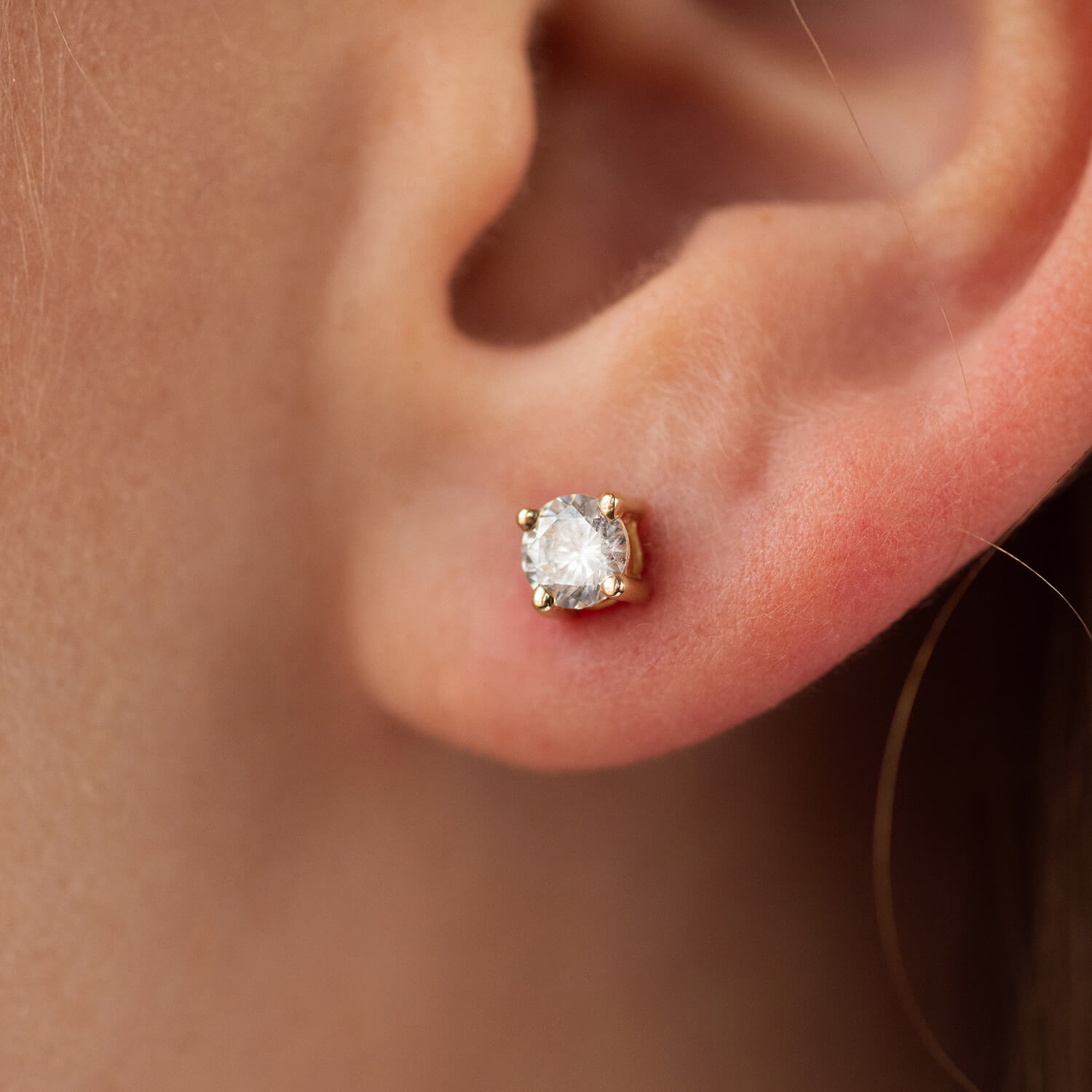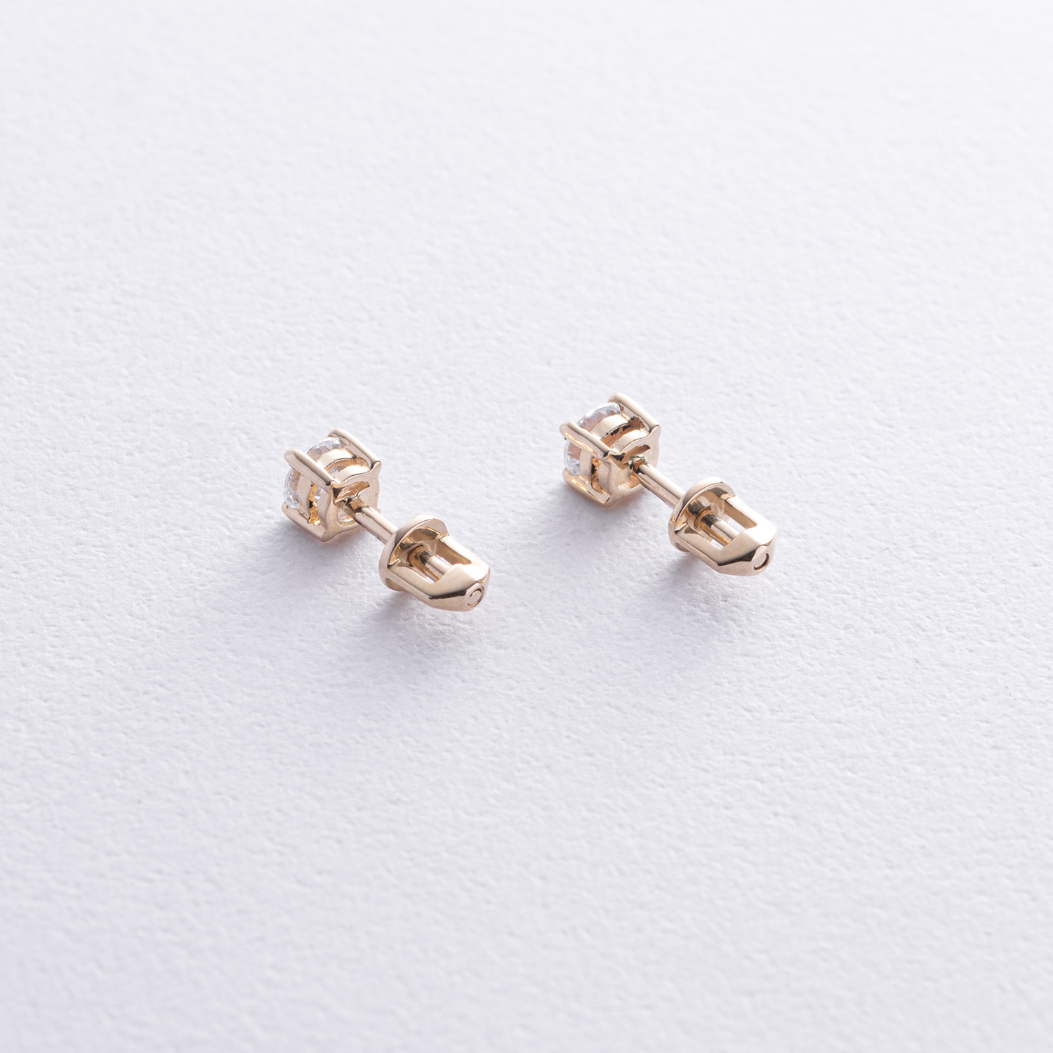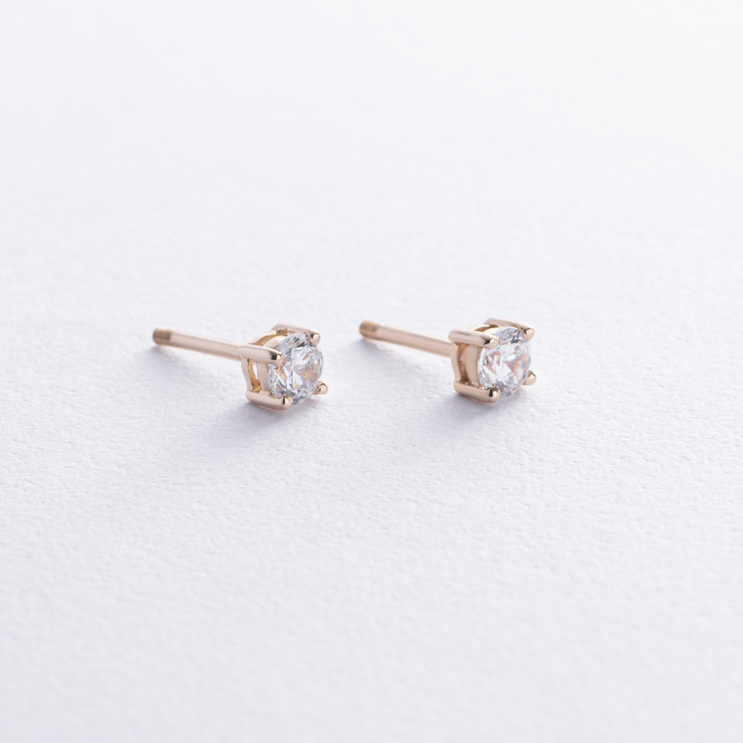 Серьги - пусеты в желтом золоте (фианиты) с08637