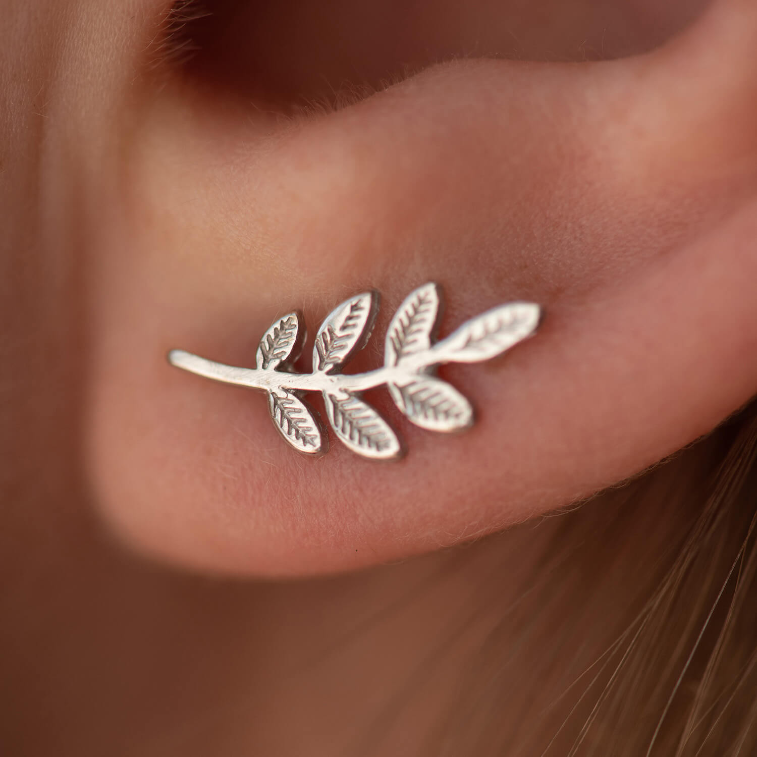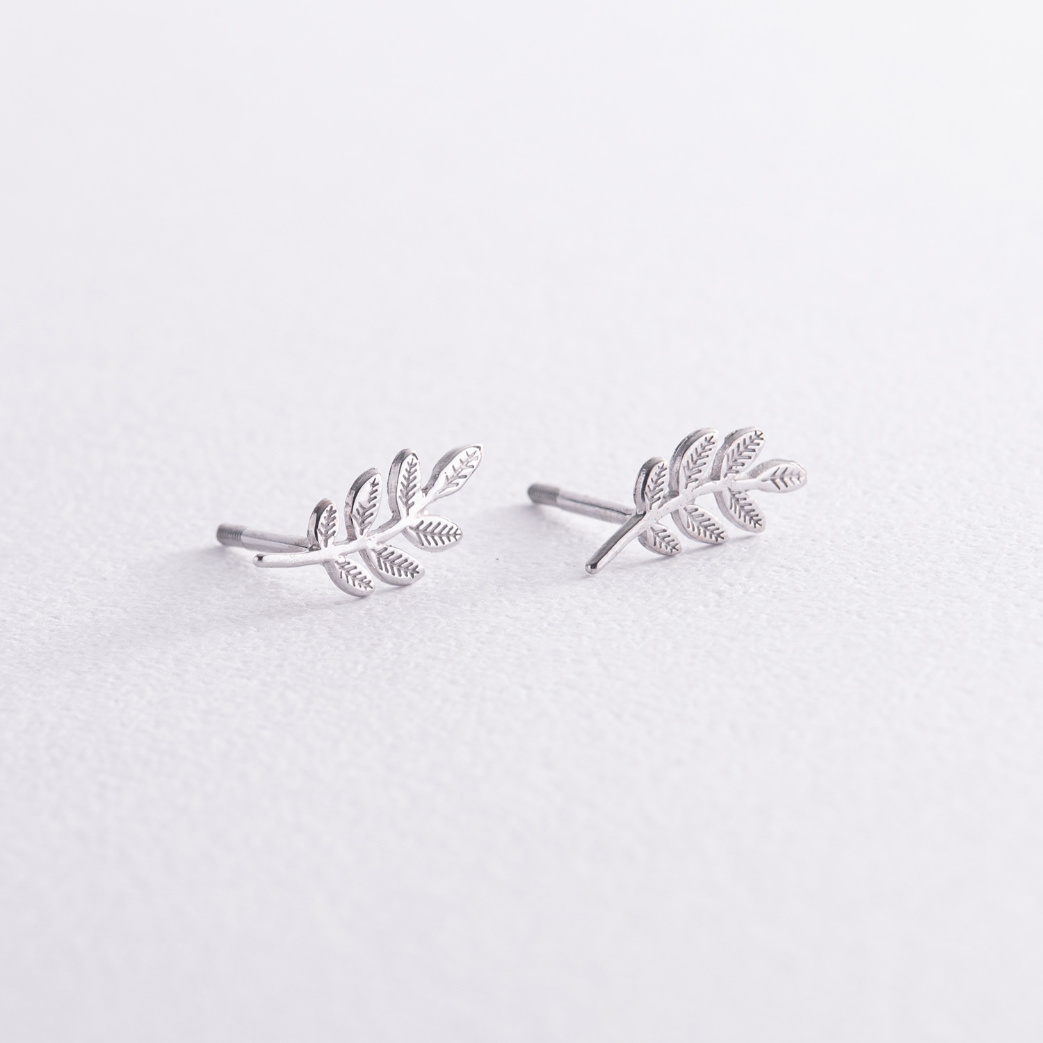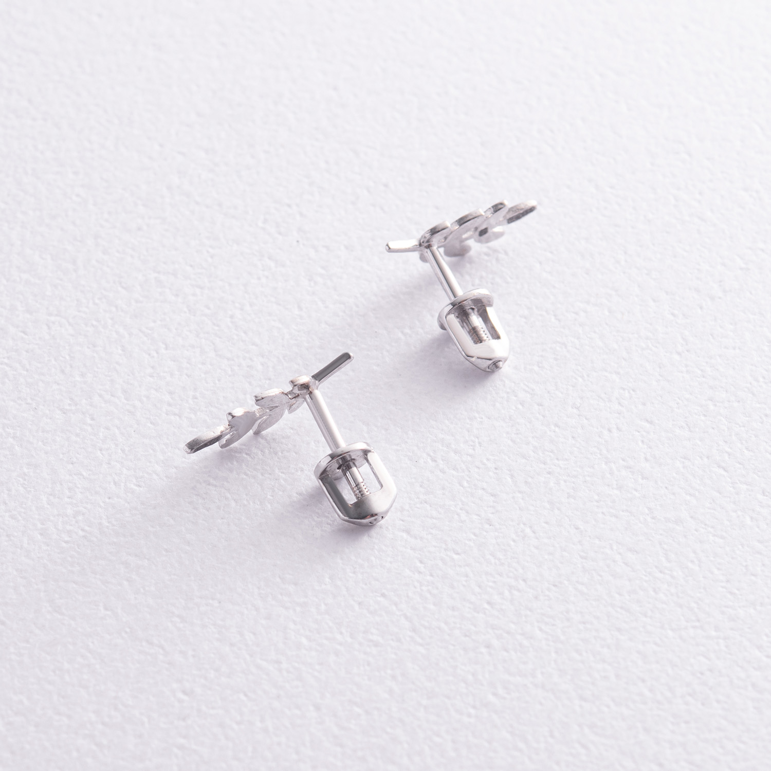 Серьги - пусеты "Веточки" в белом золоте с07014