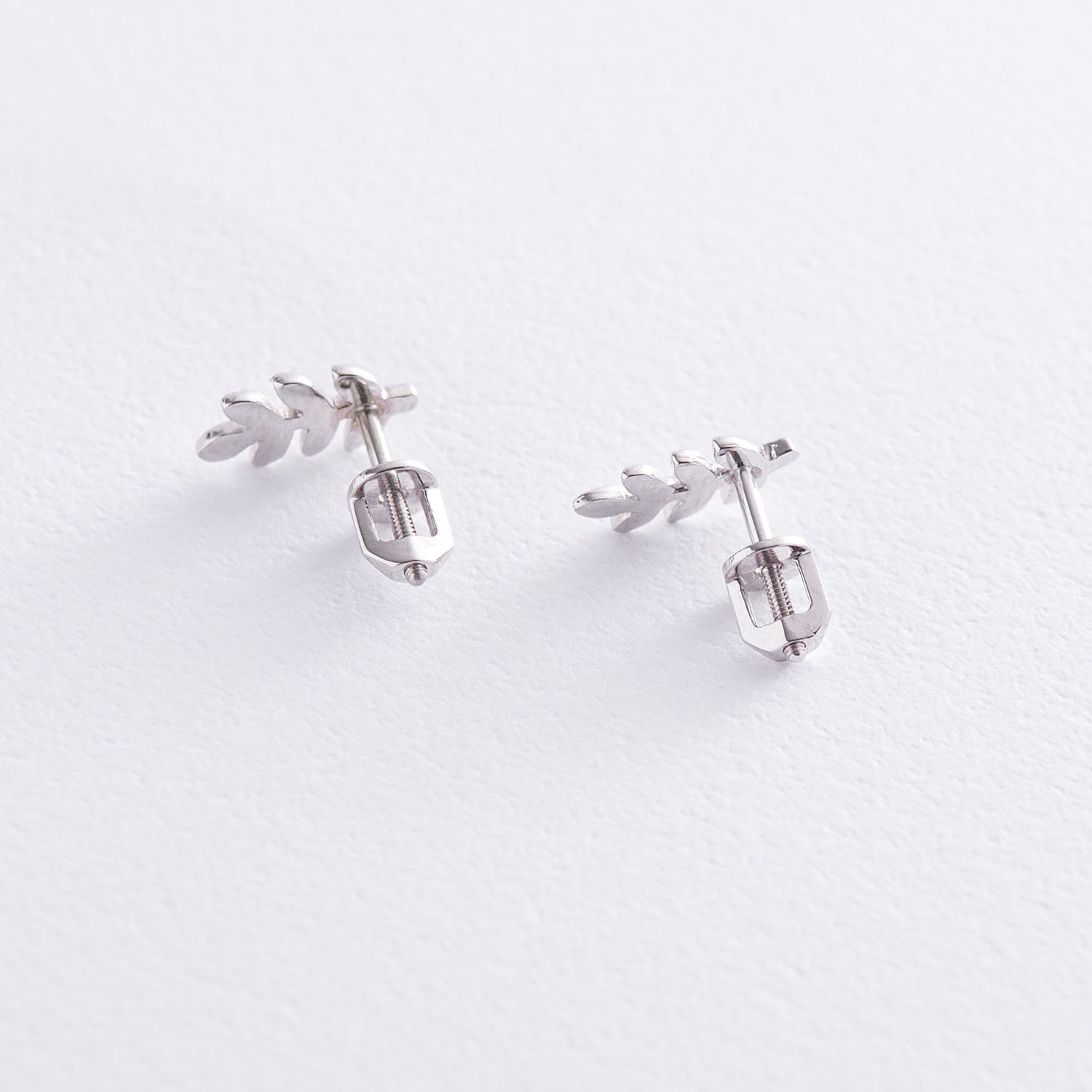 Серьги - пусеты "Веточки" в белом золоте с06913