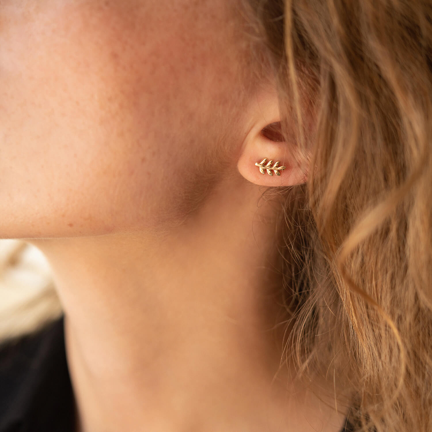 Серьги - пусеты "Веточки" в желтом золоте с08485
