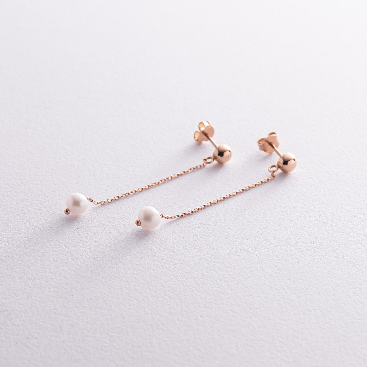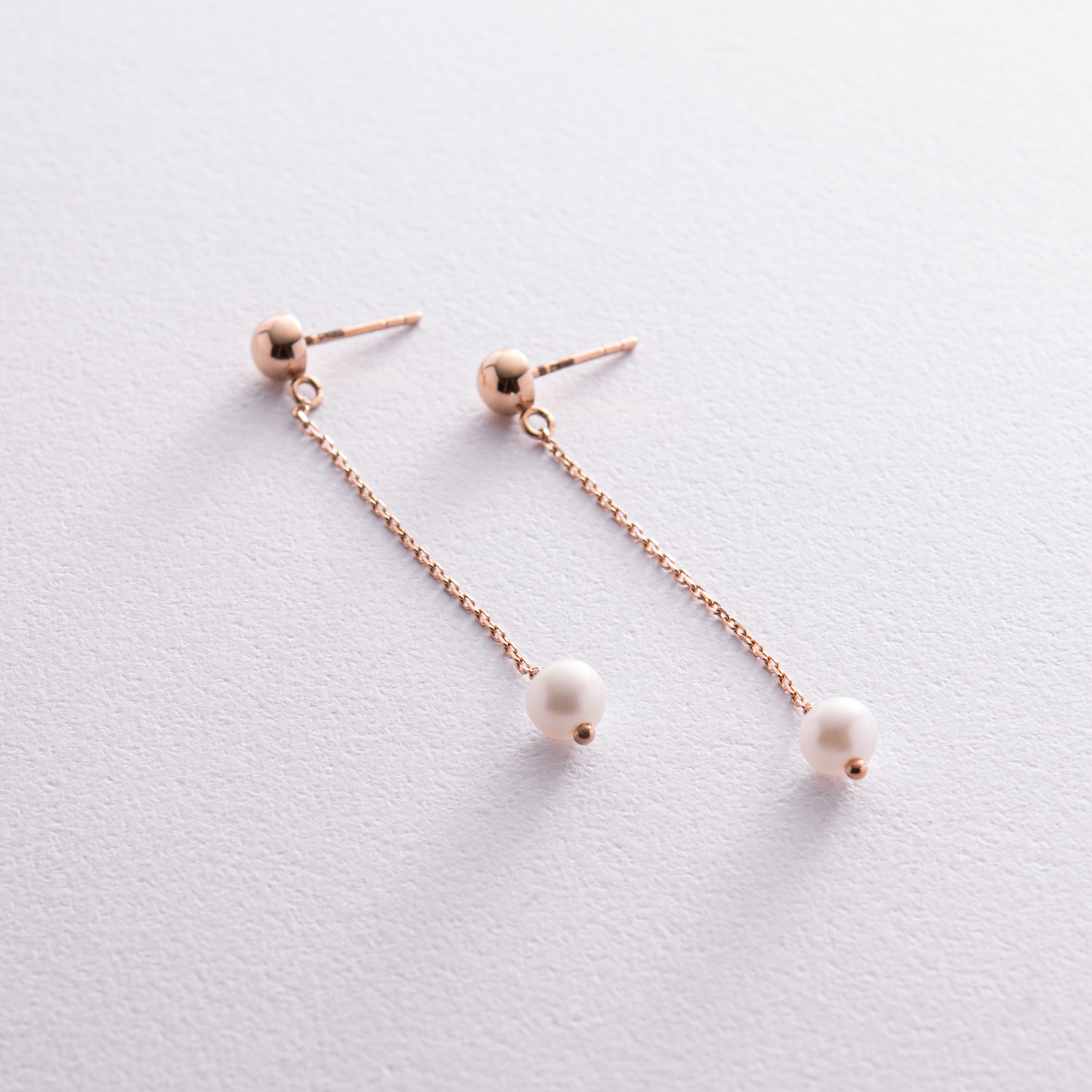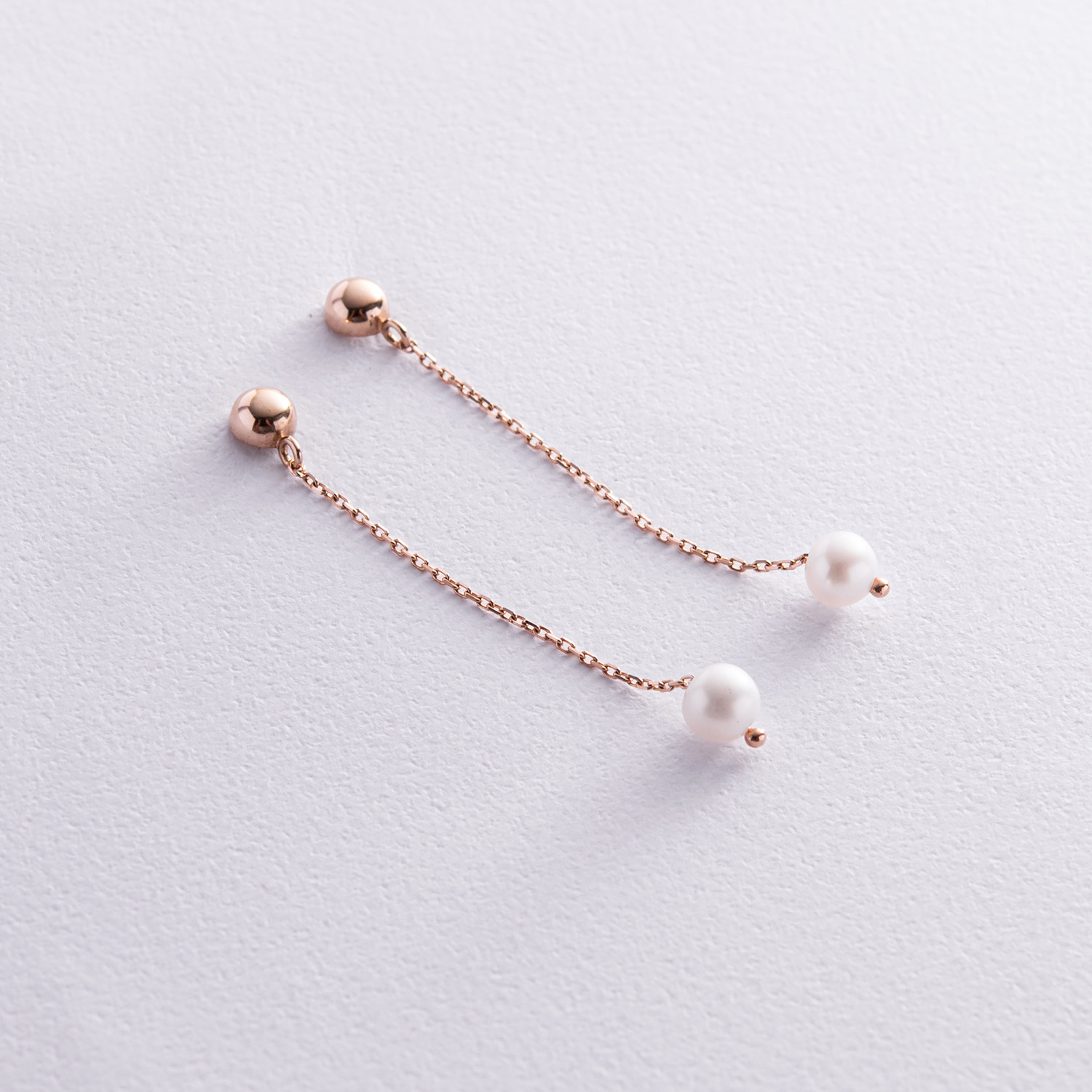 Серьги - пусеты "Жемчужина на цепочке" в красном золоте с08291