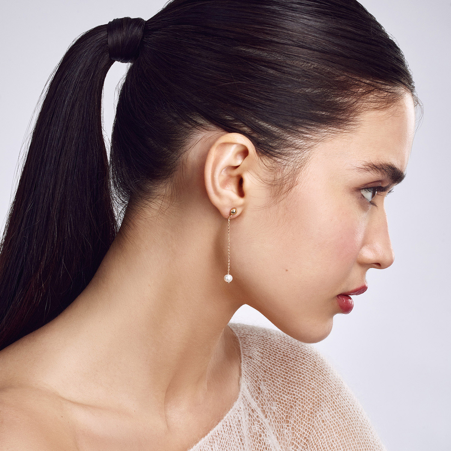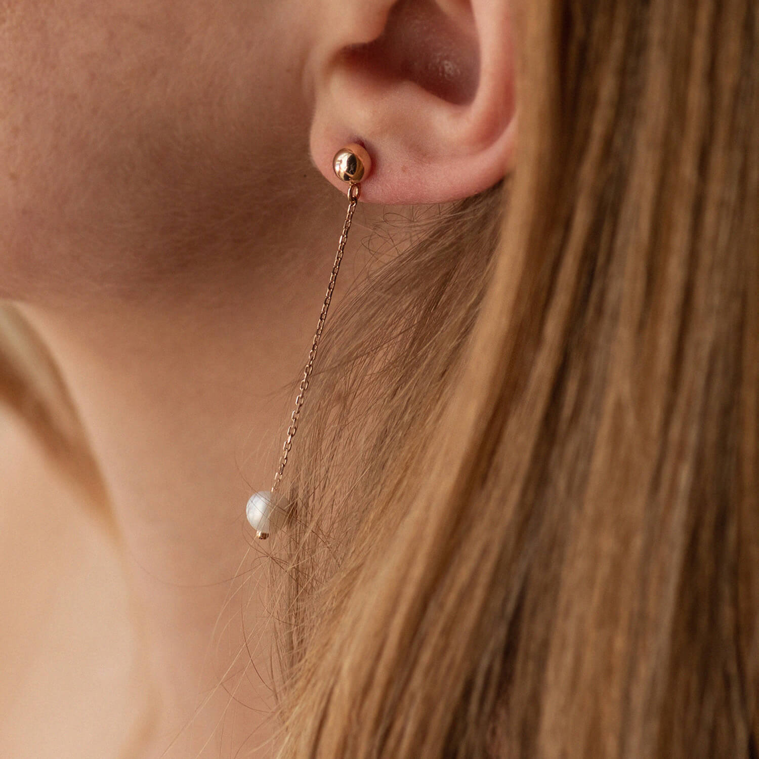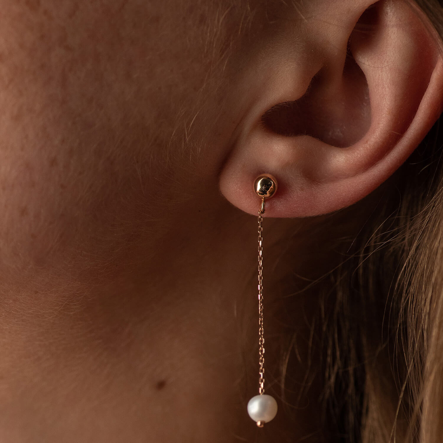 Серьги - пусеты "Жемчужина на цепочке" в красном золоте с08291