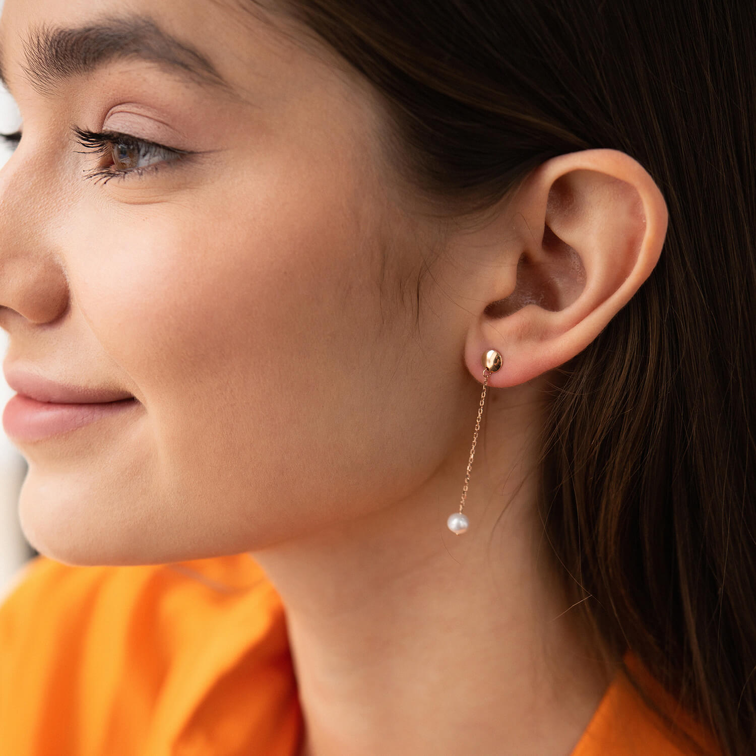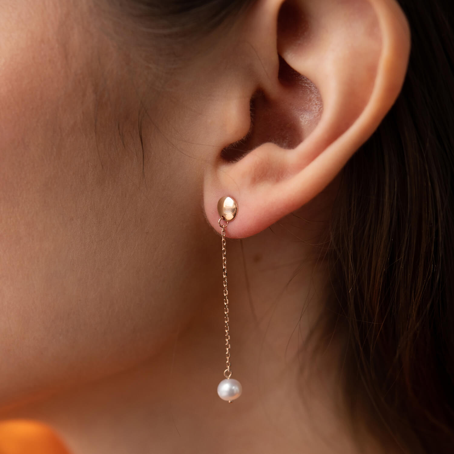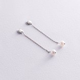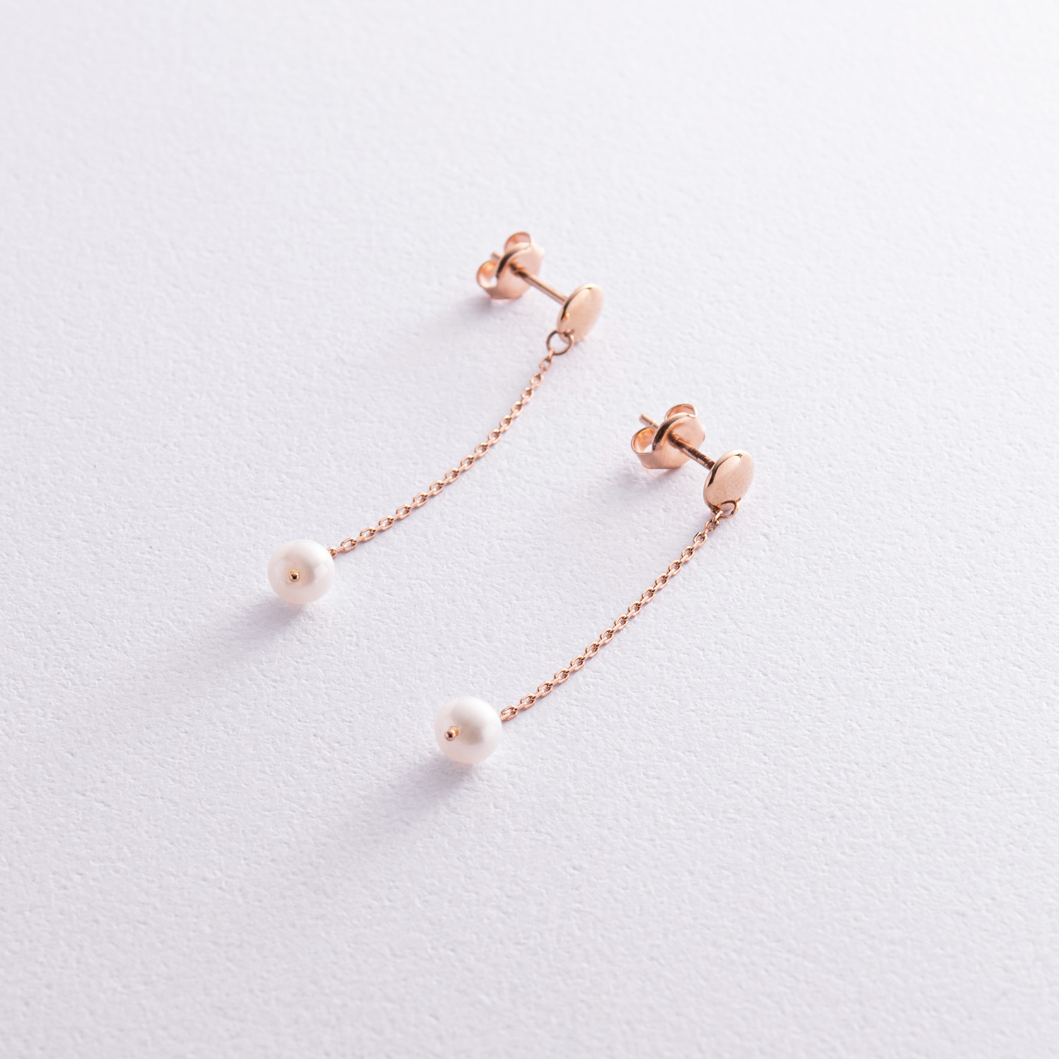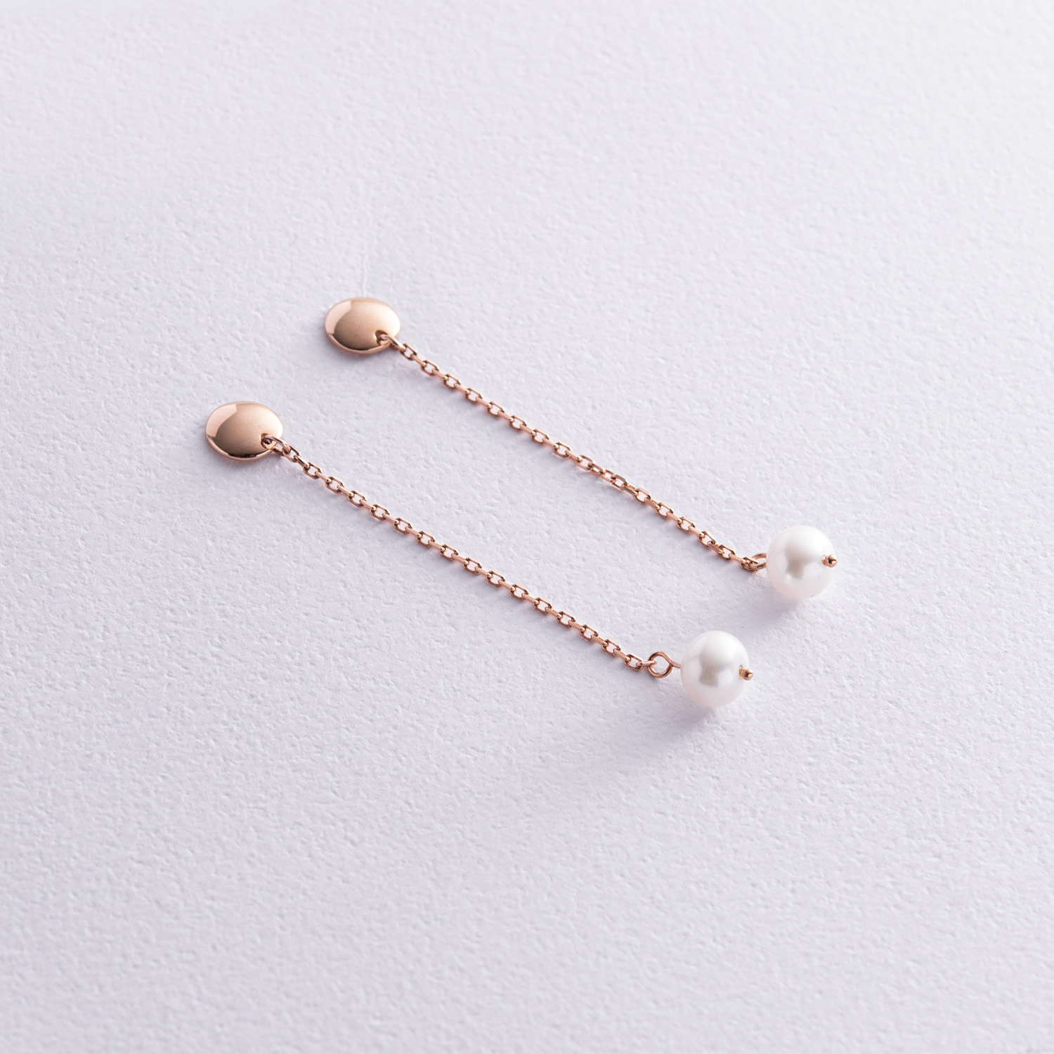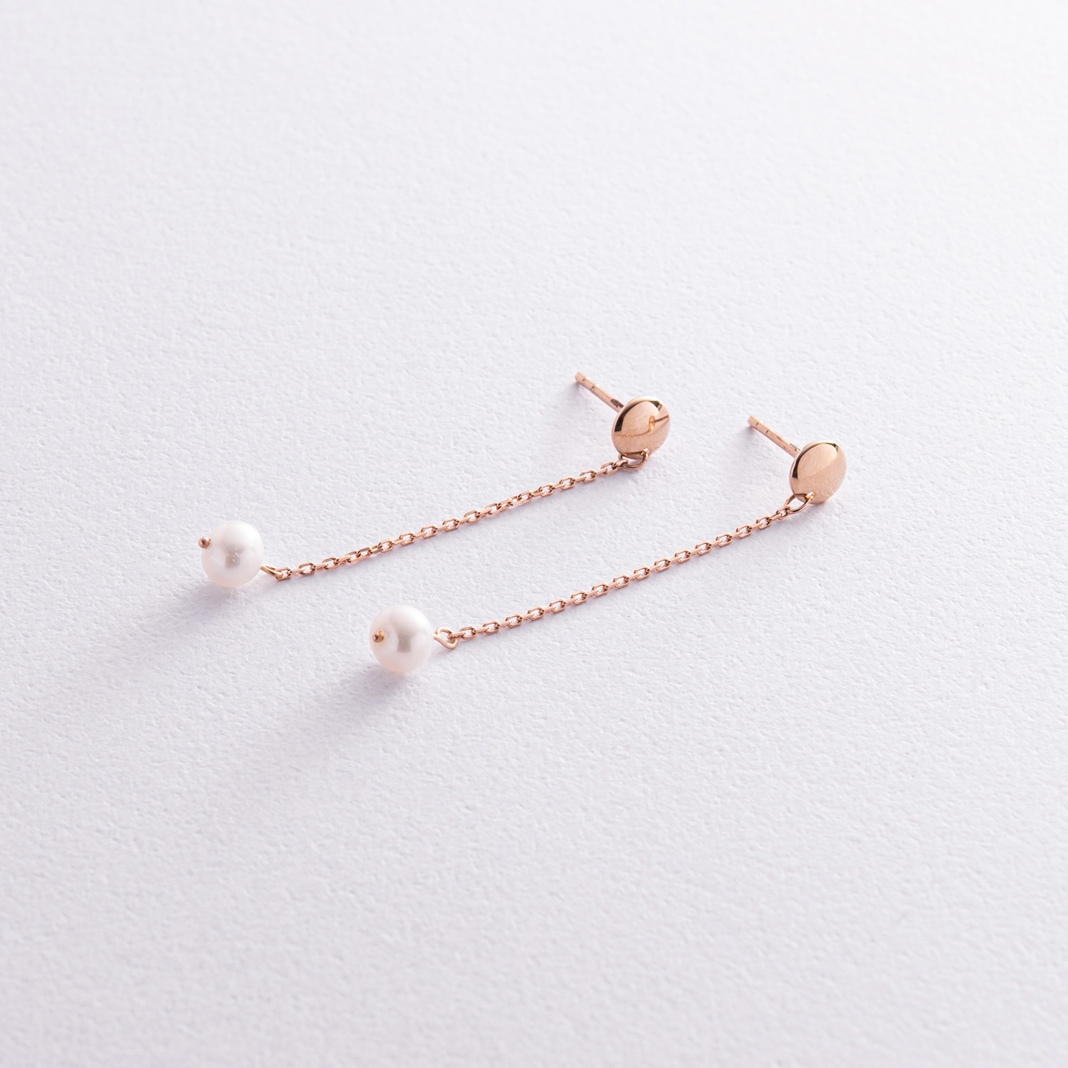 Серьги - пусеты "Жемчужина на цепочке" в красном золоте с08292