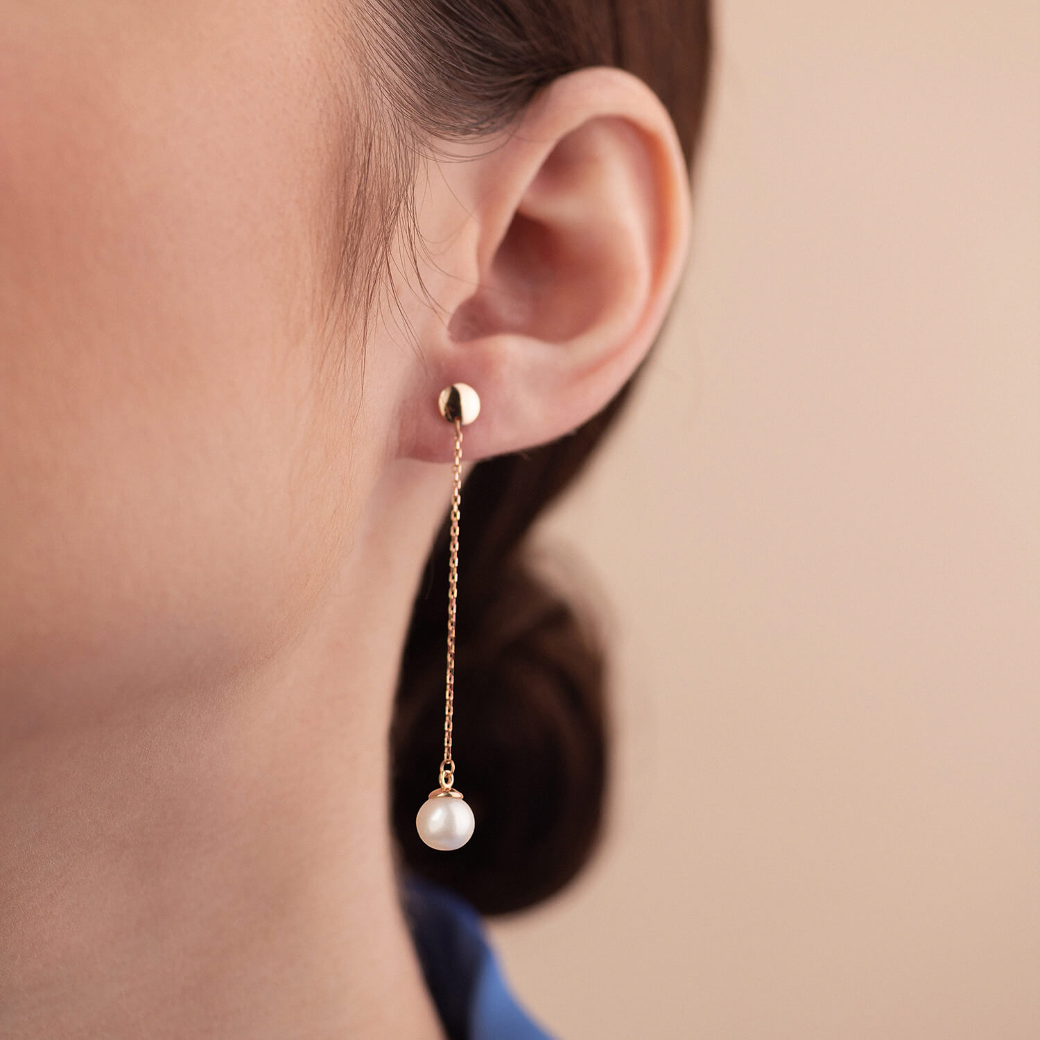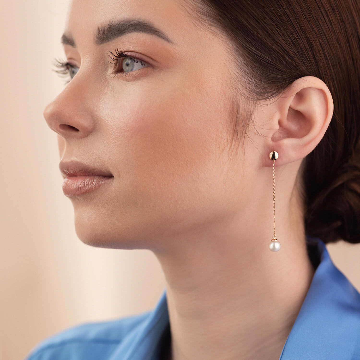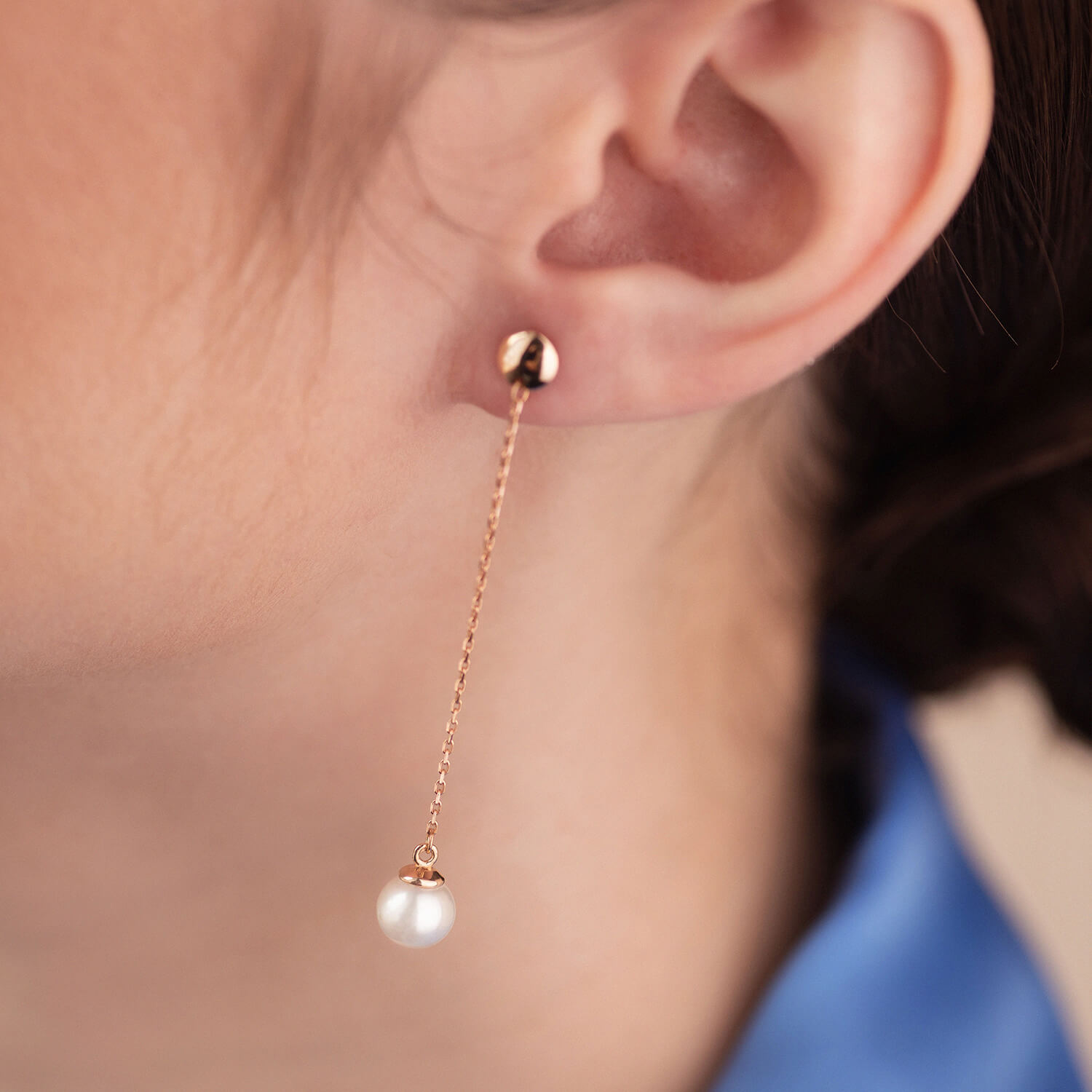 Серьги - пусеты "Жемчужина на цепочке" в красном золоте с08315