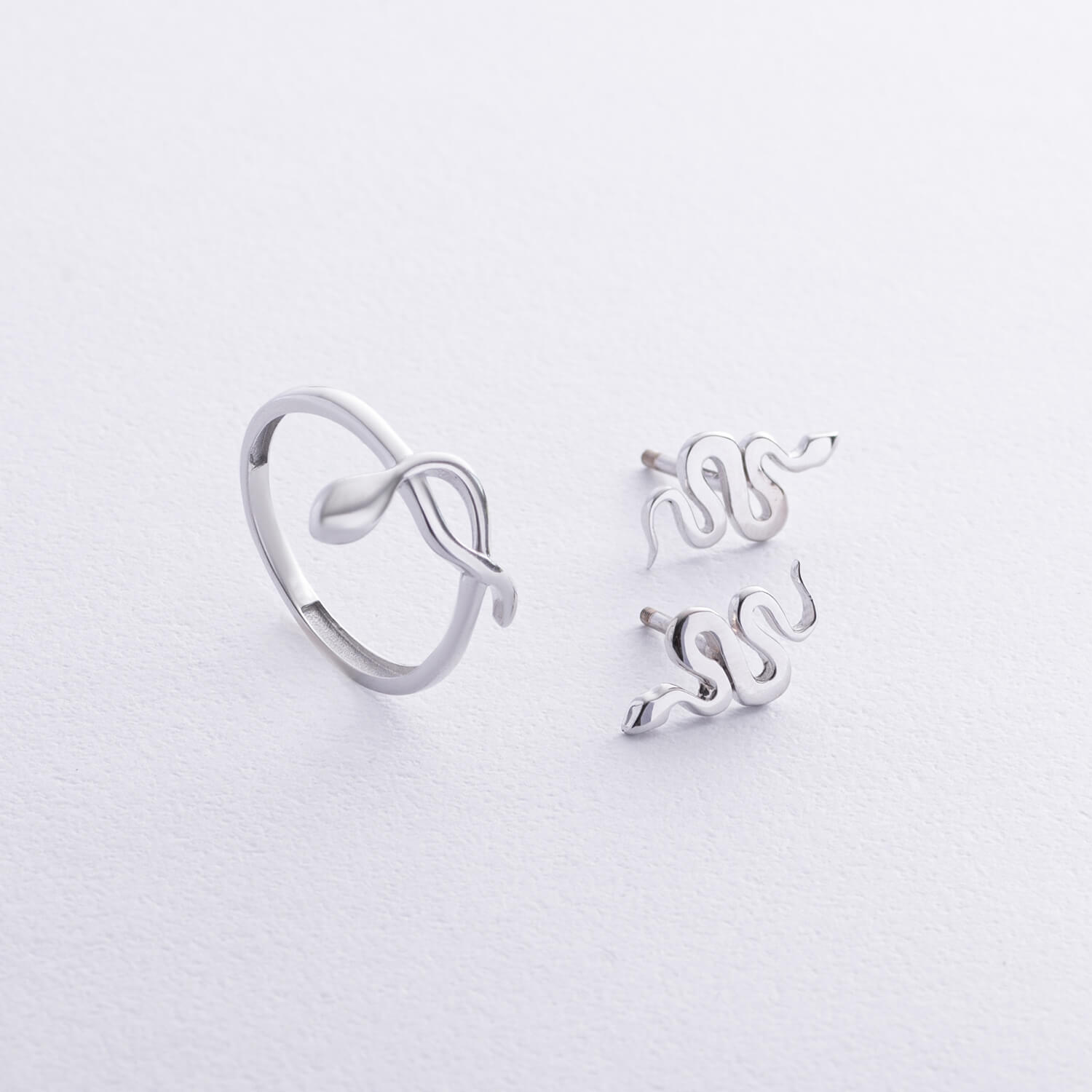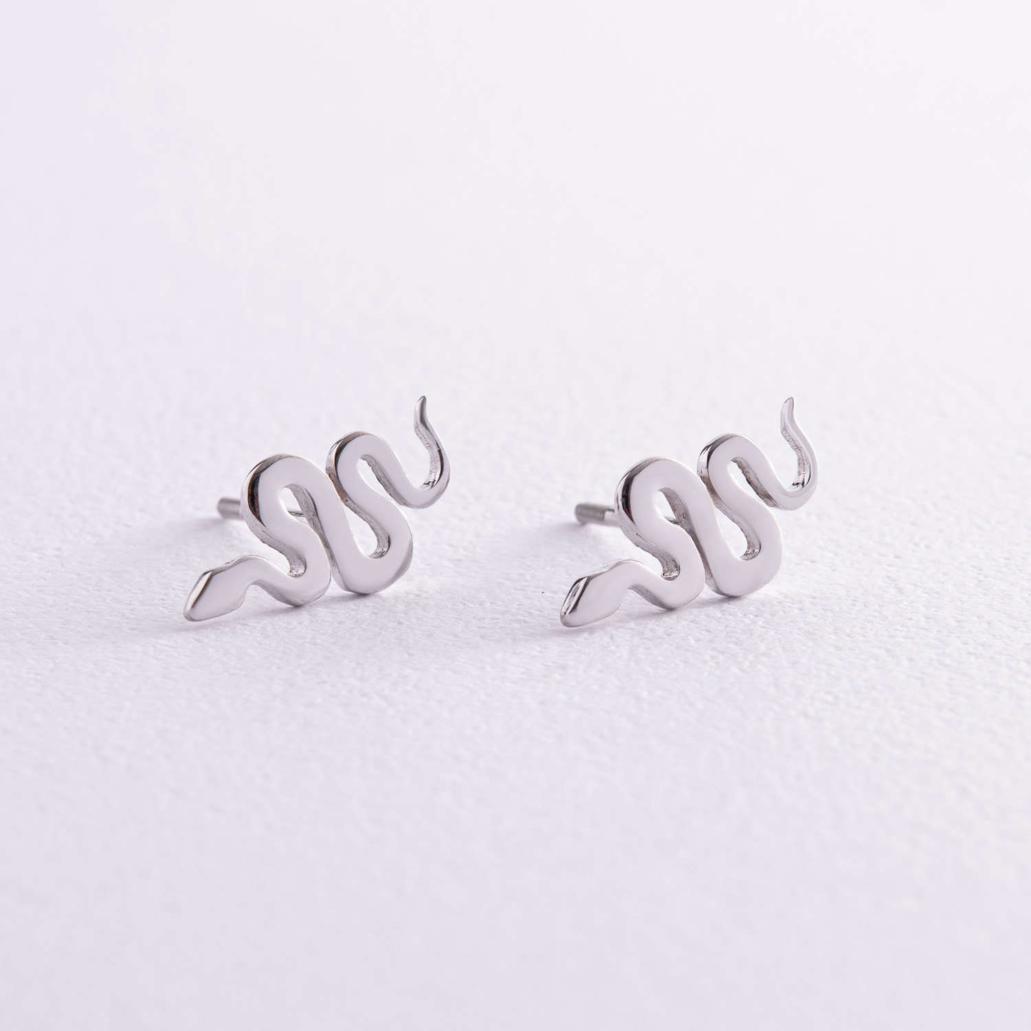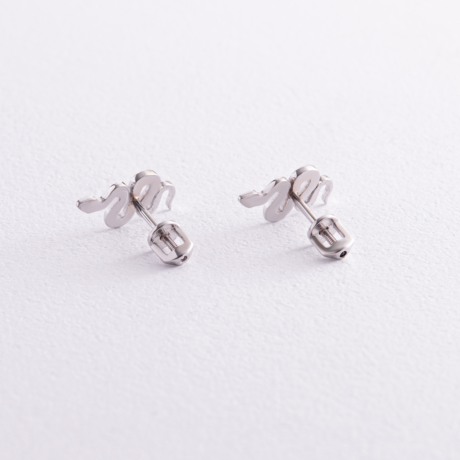 Серьги - пусеты "Змеи" в белом золоте с07998