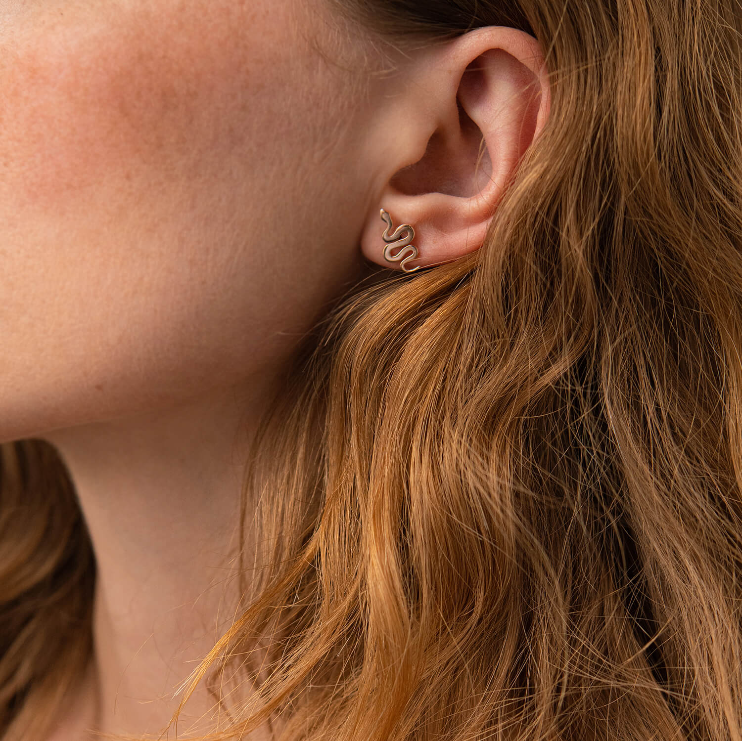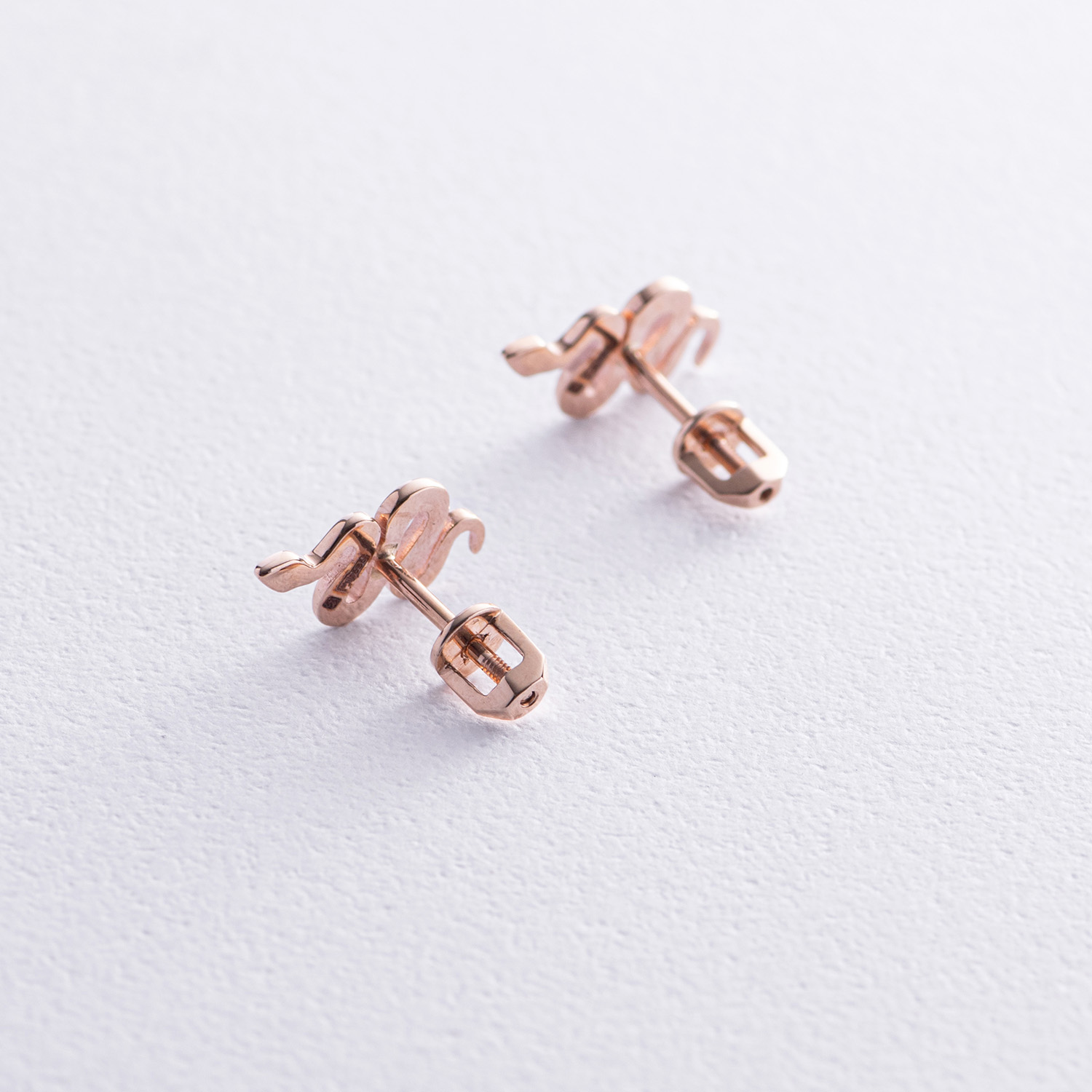 Серьги - пусеты "Змеи" в красном золоте с07925