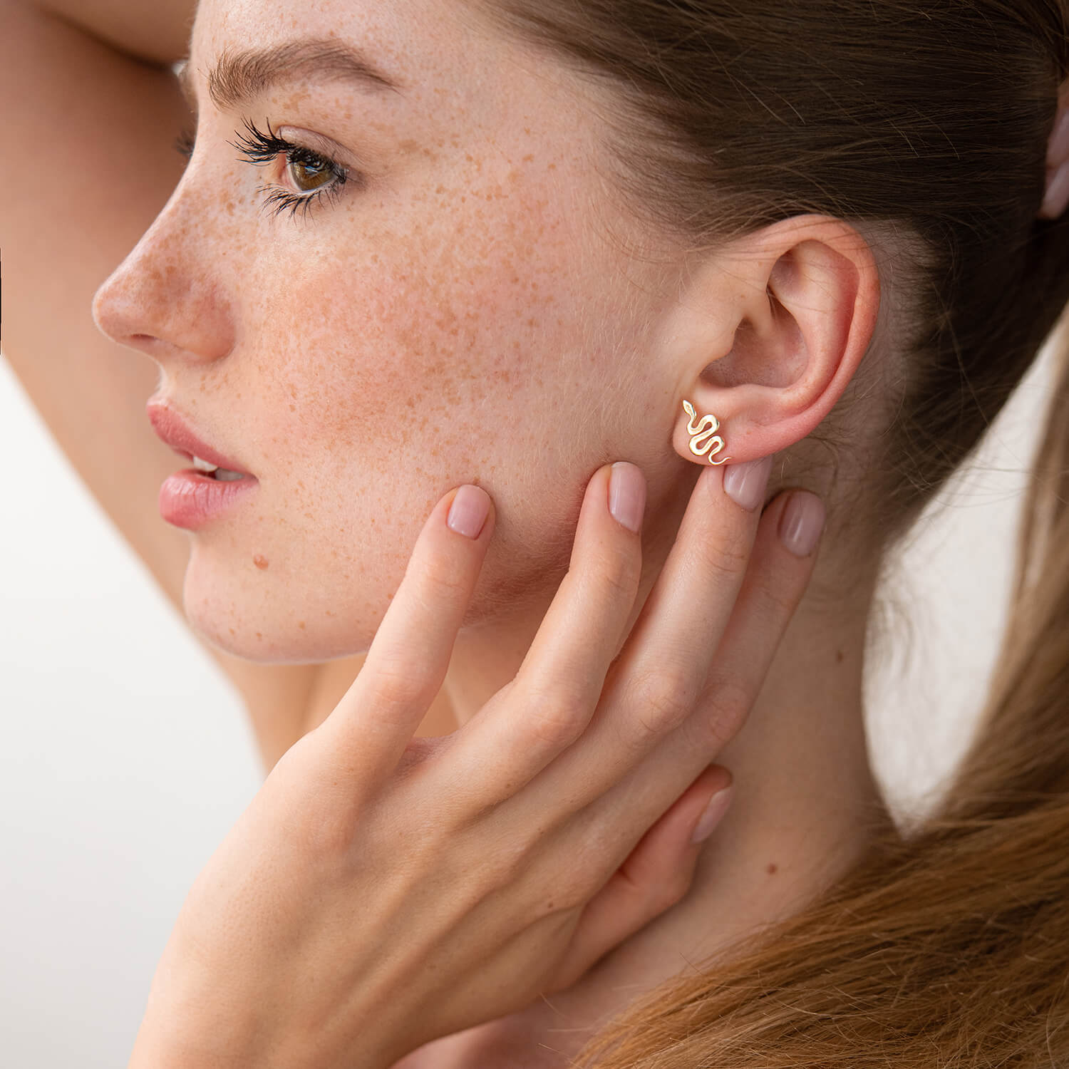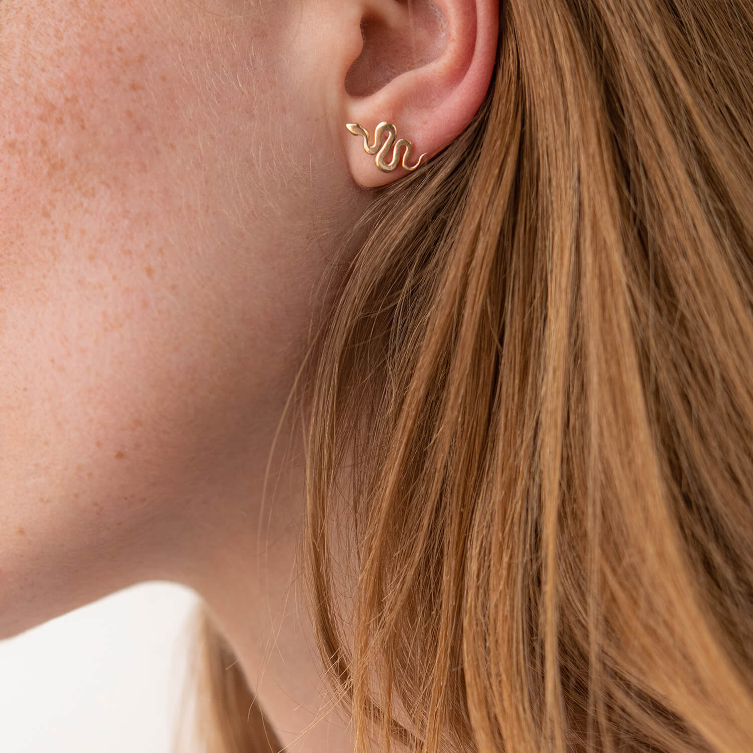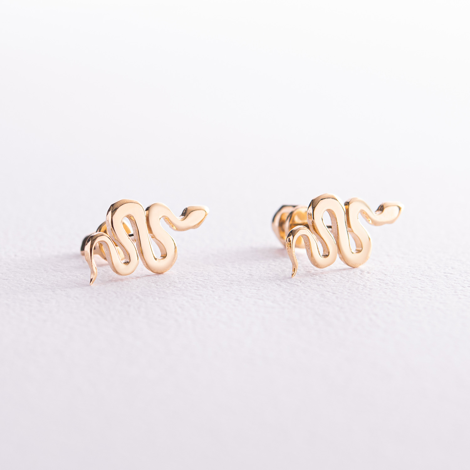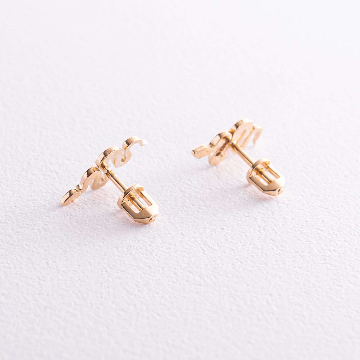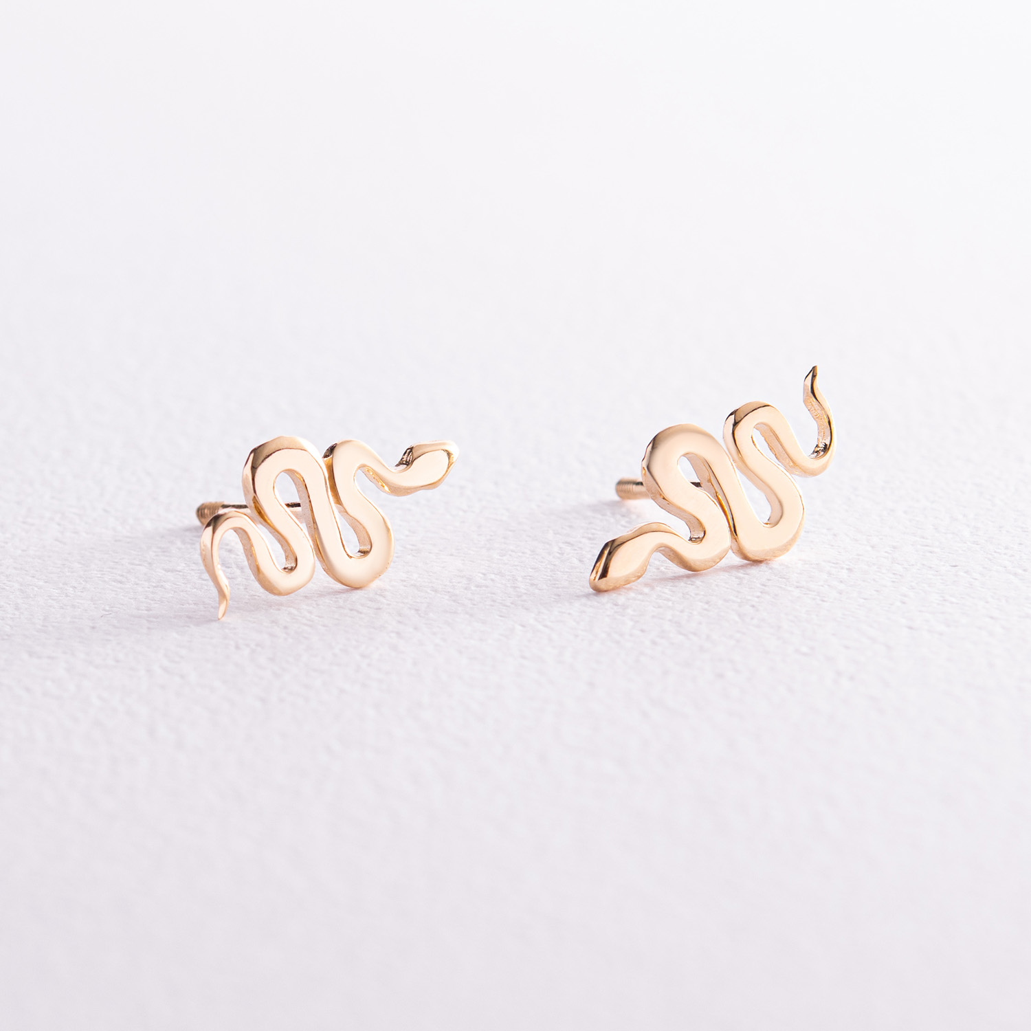 Серьги - пусеты "Змеи" в желтом золоте с07975
