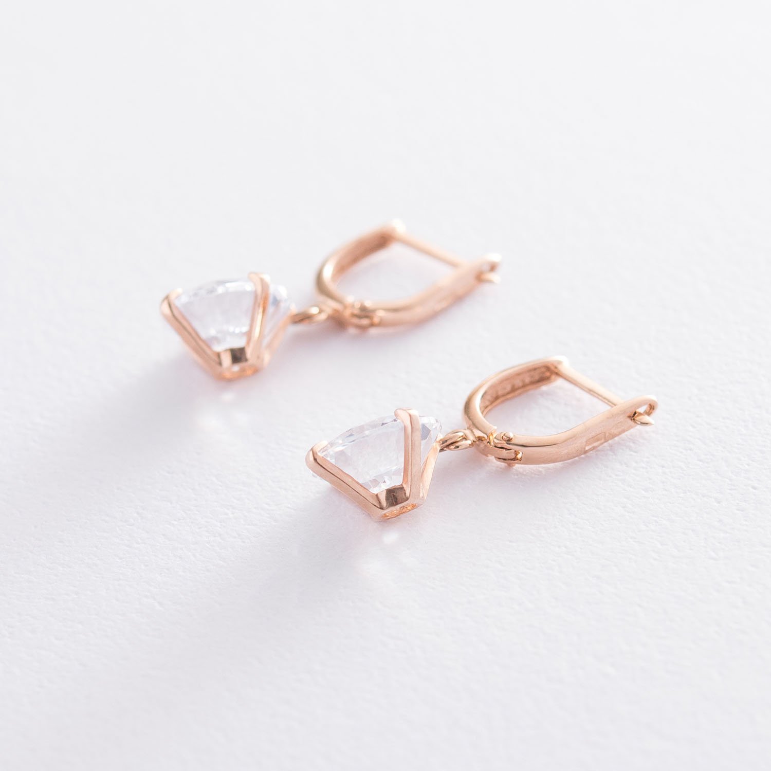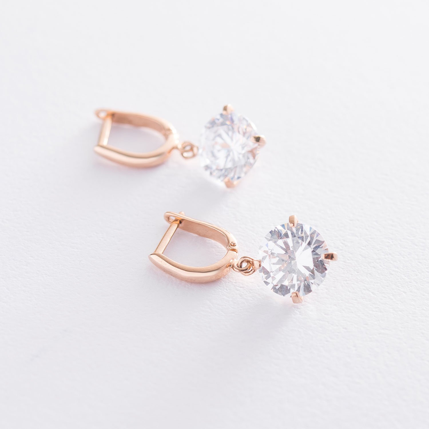 Серьги "Влечение" с фианитами в красном золоте с04245