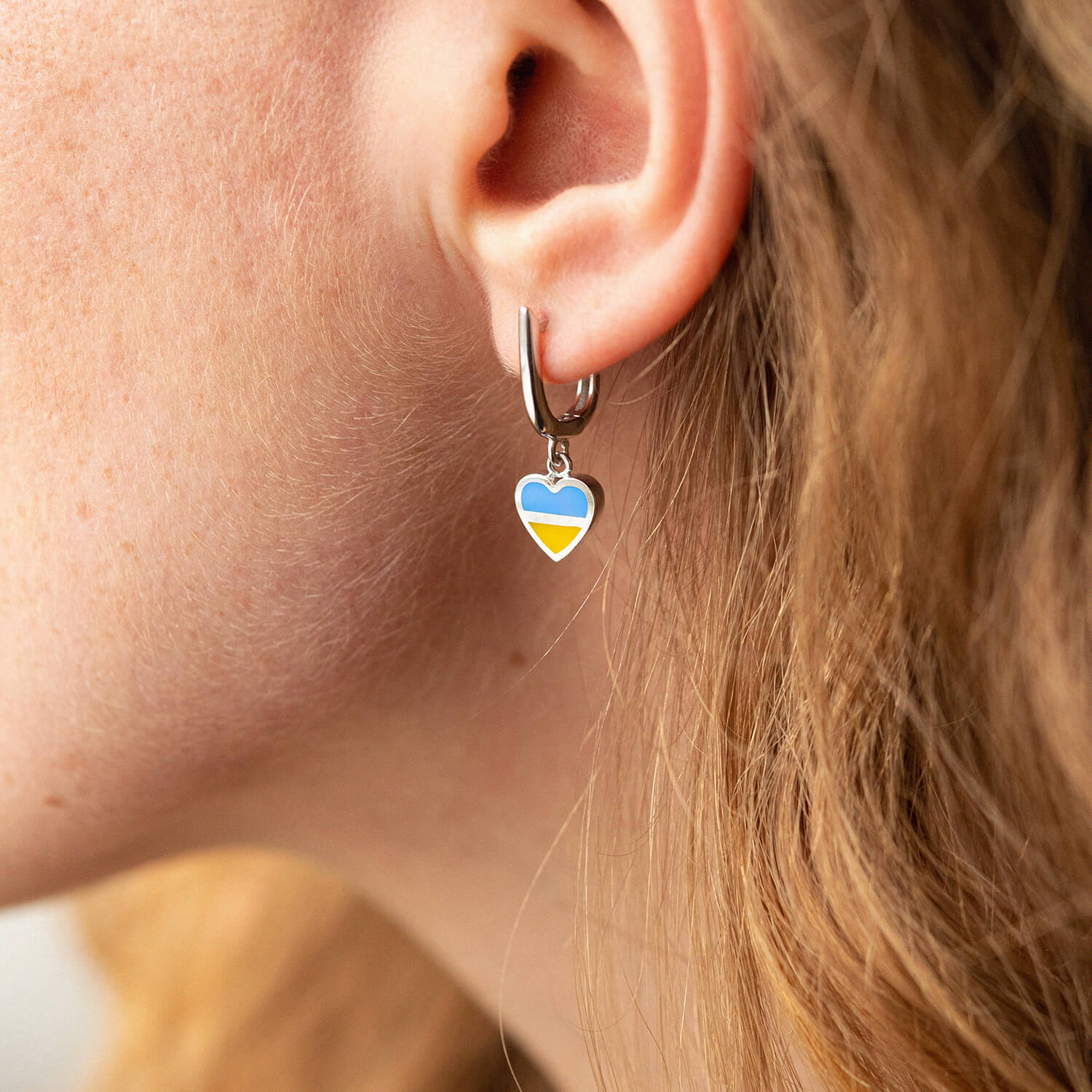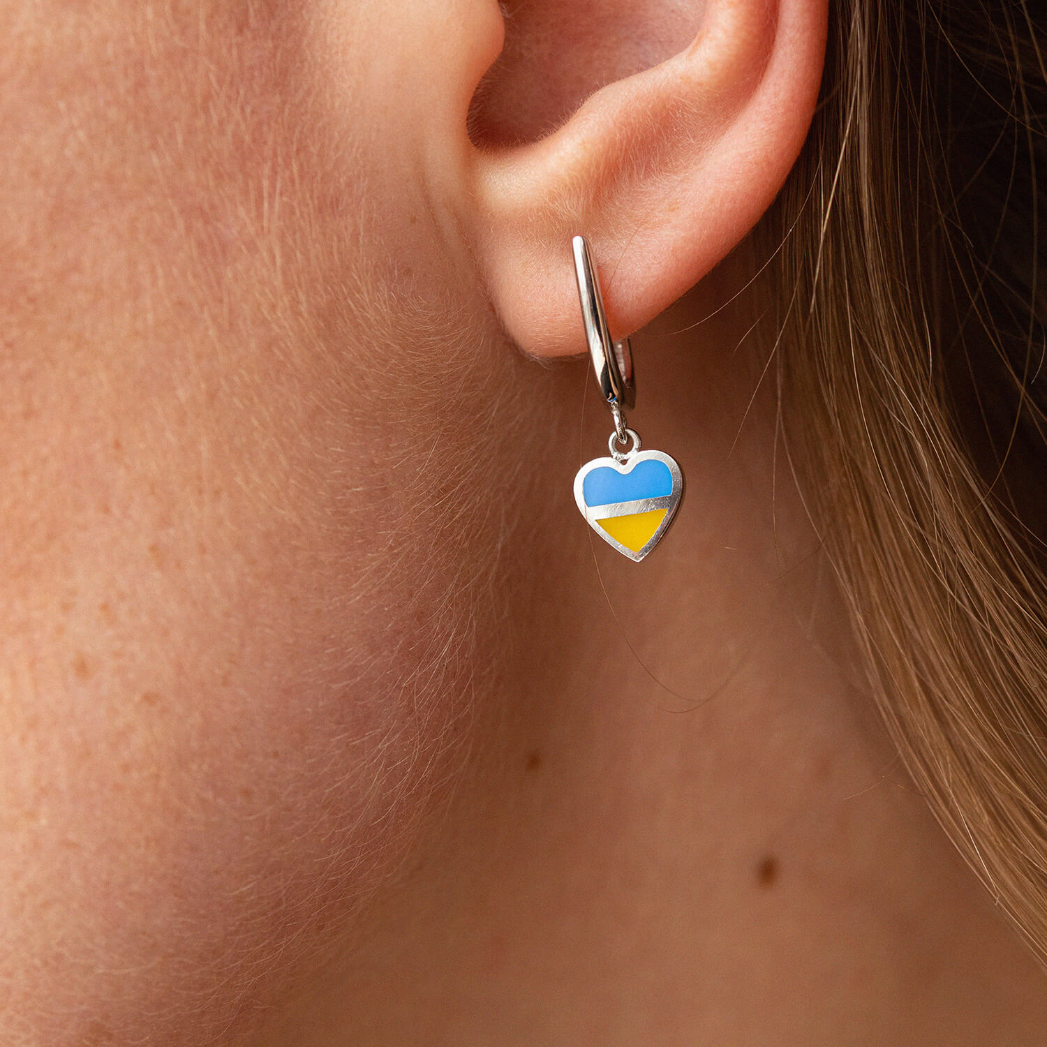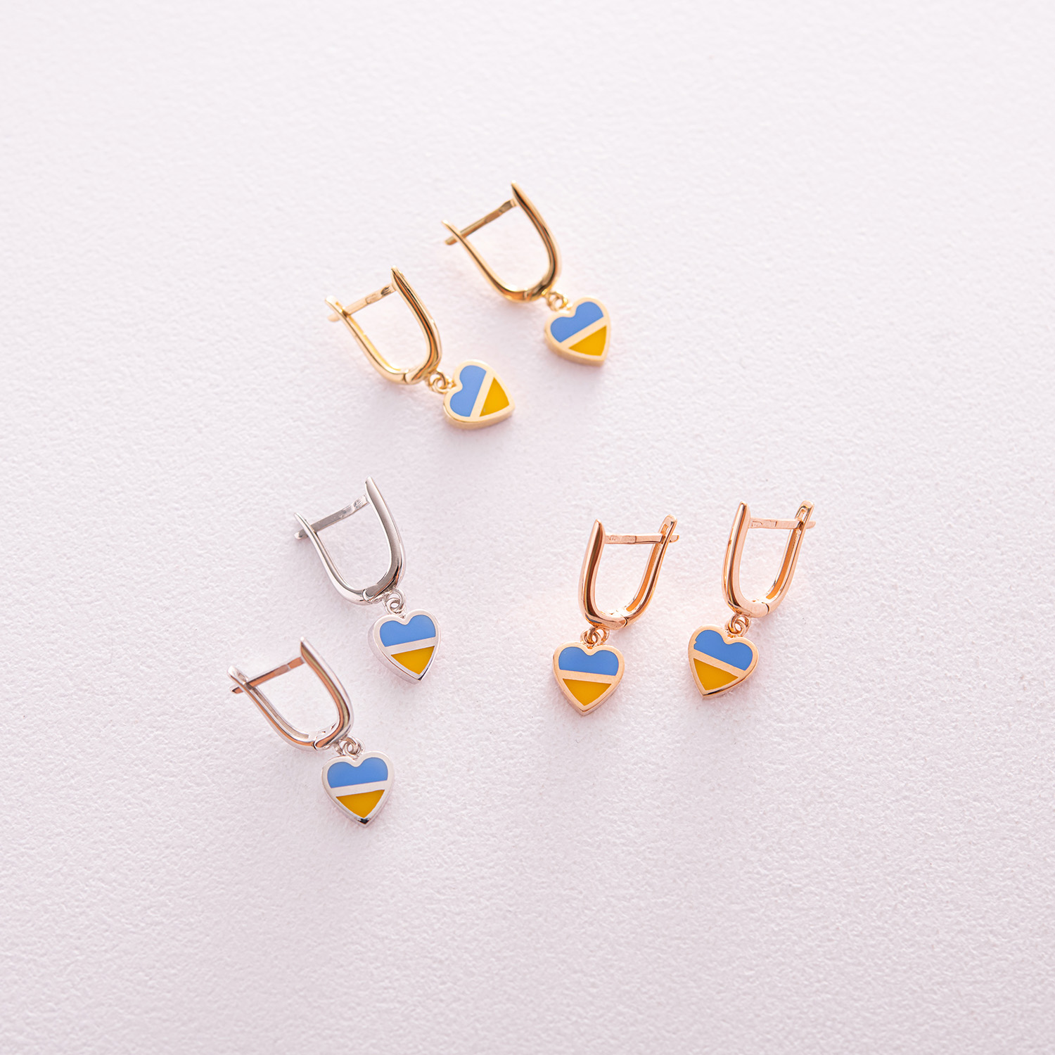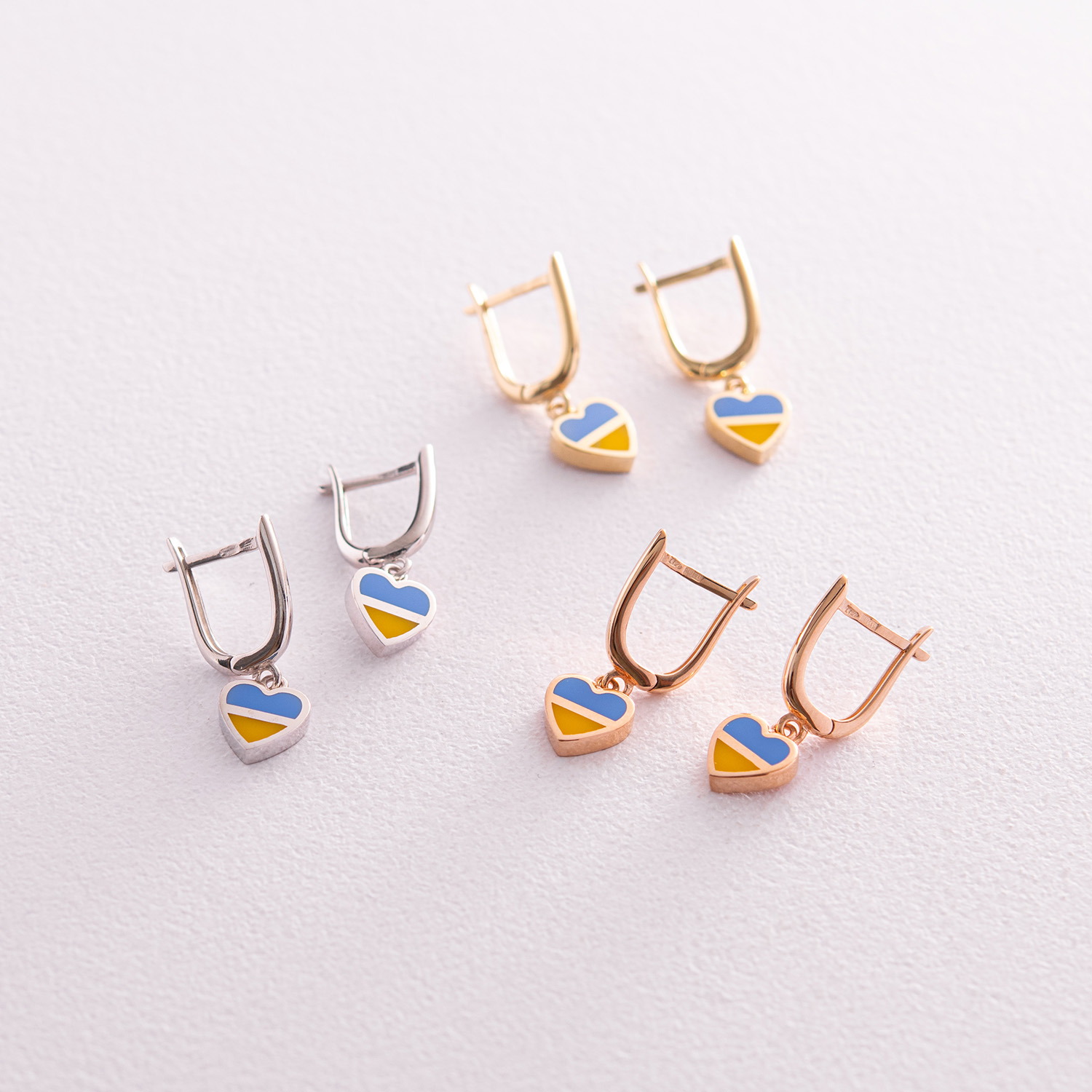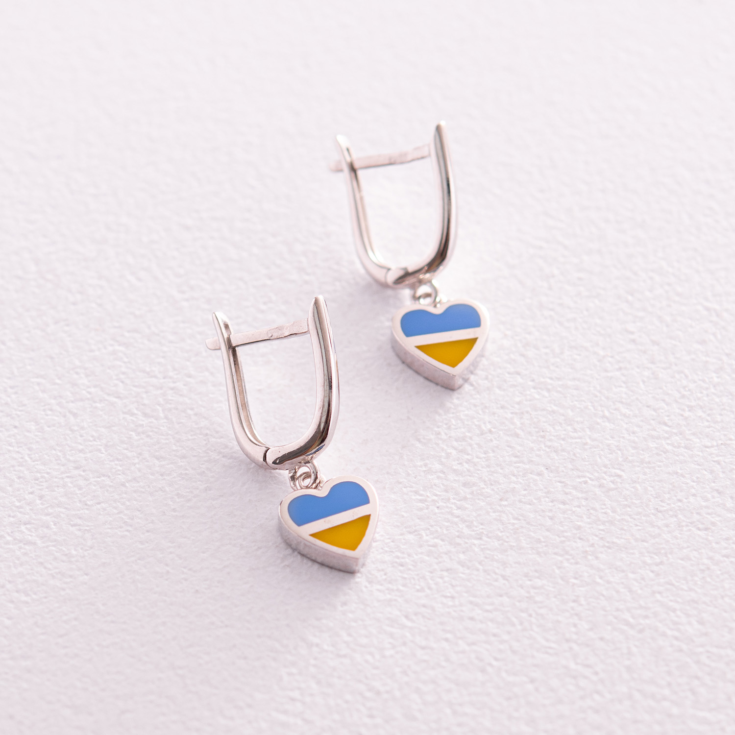 Серьги "С Украиной в сердце" в белом золоте (голубая и желтая эмаль) с08096