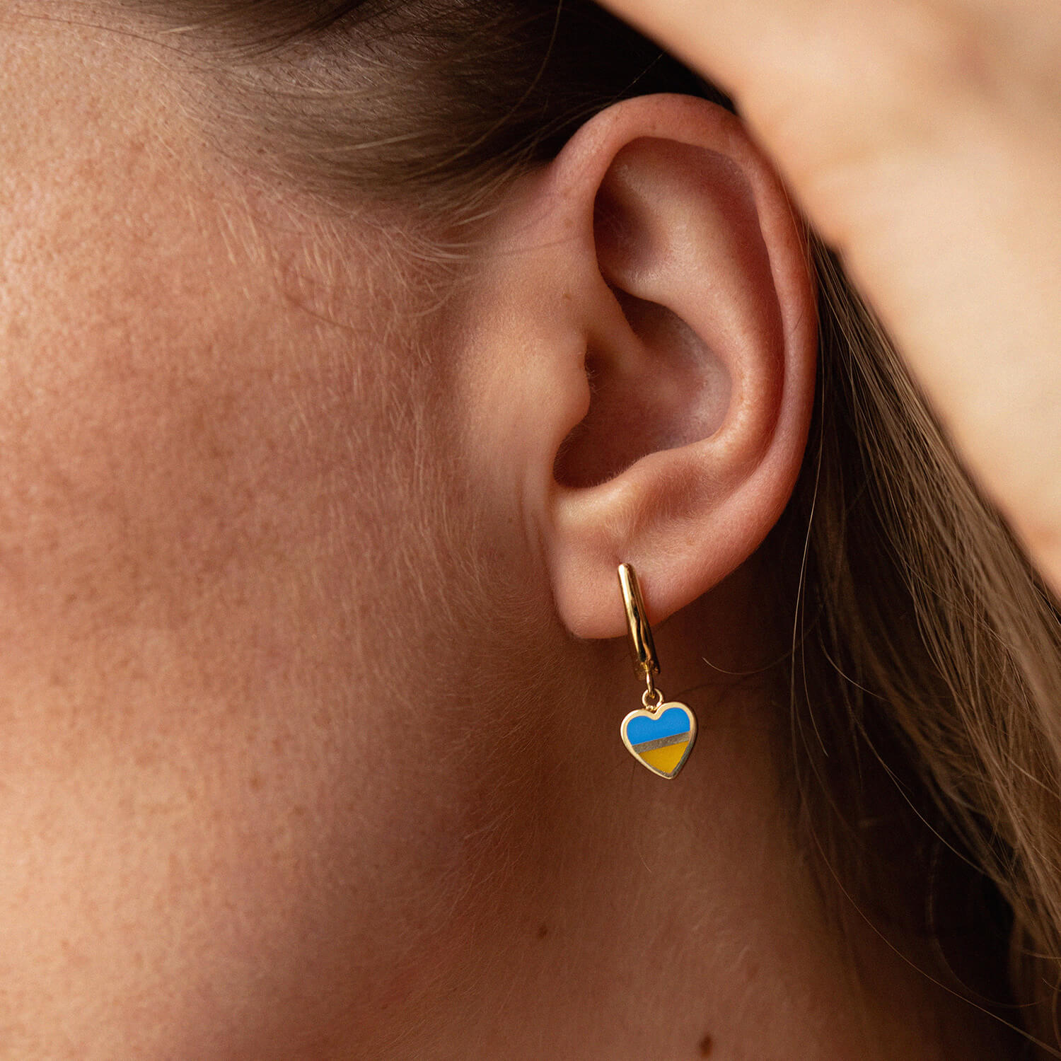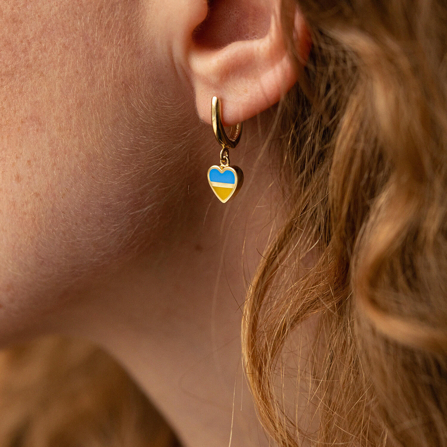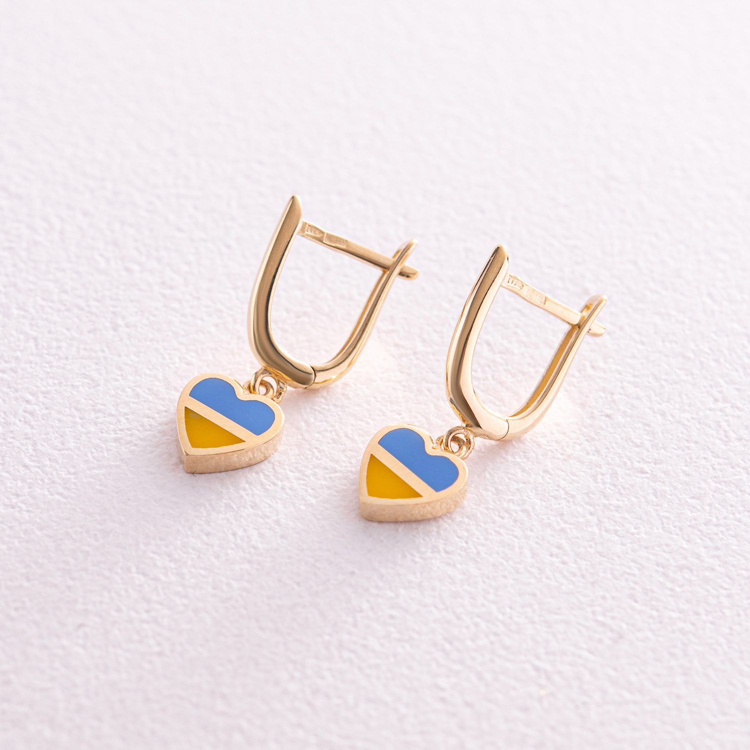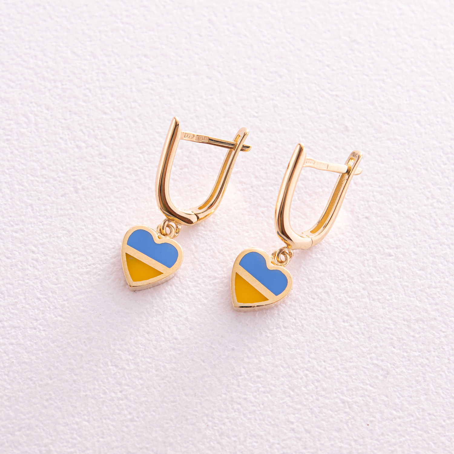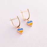 Серьги "С Украиной в сердце" в желтом золоте (голубая и желтая эмаль) с08097
