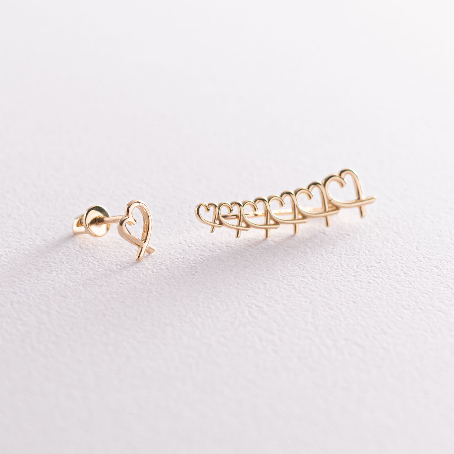 Серьги - клаймберы "Сердечки" в желтом золоте с07155