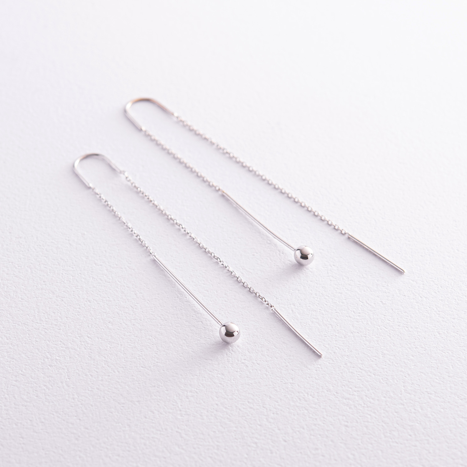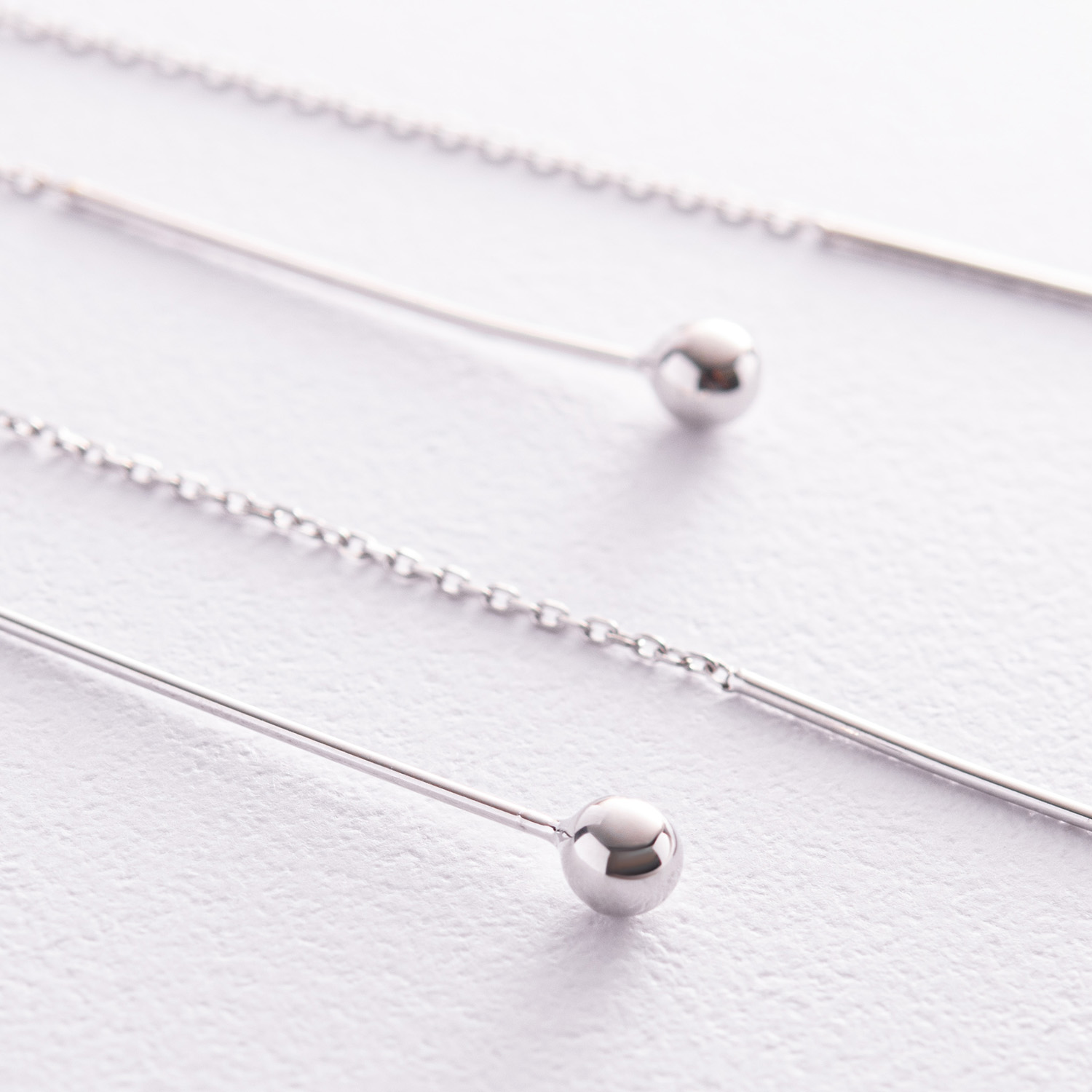 Серьги "Шарики" в белом золоте на цепочке с07985