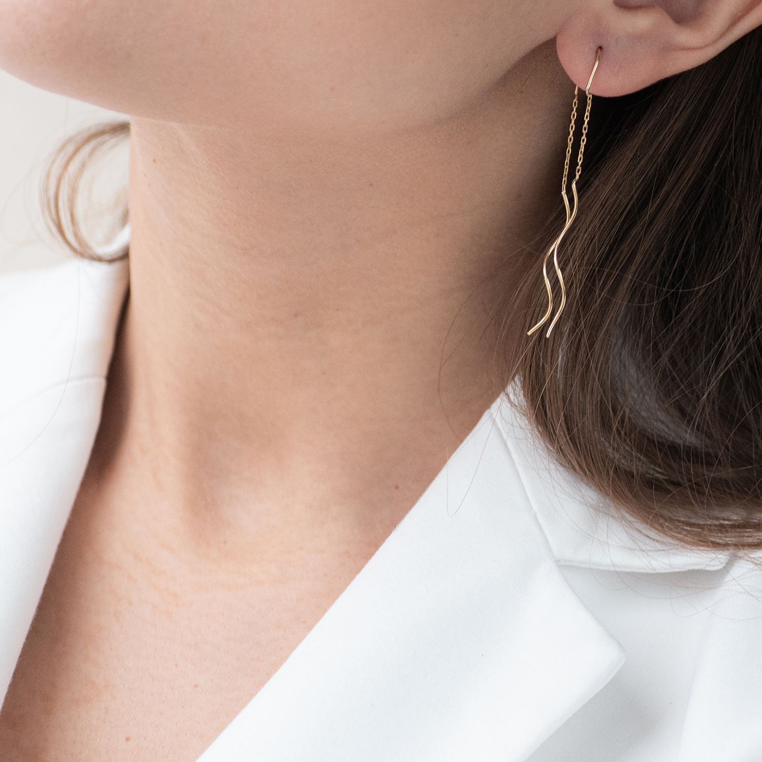 Серьги - протяжки "Завиток" из желтого золота с07200