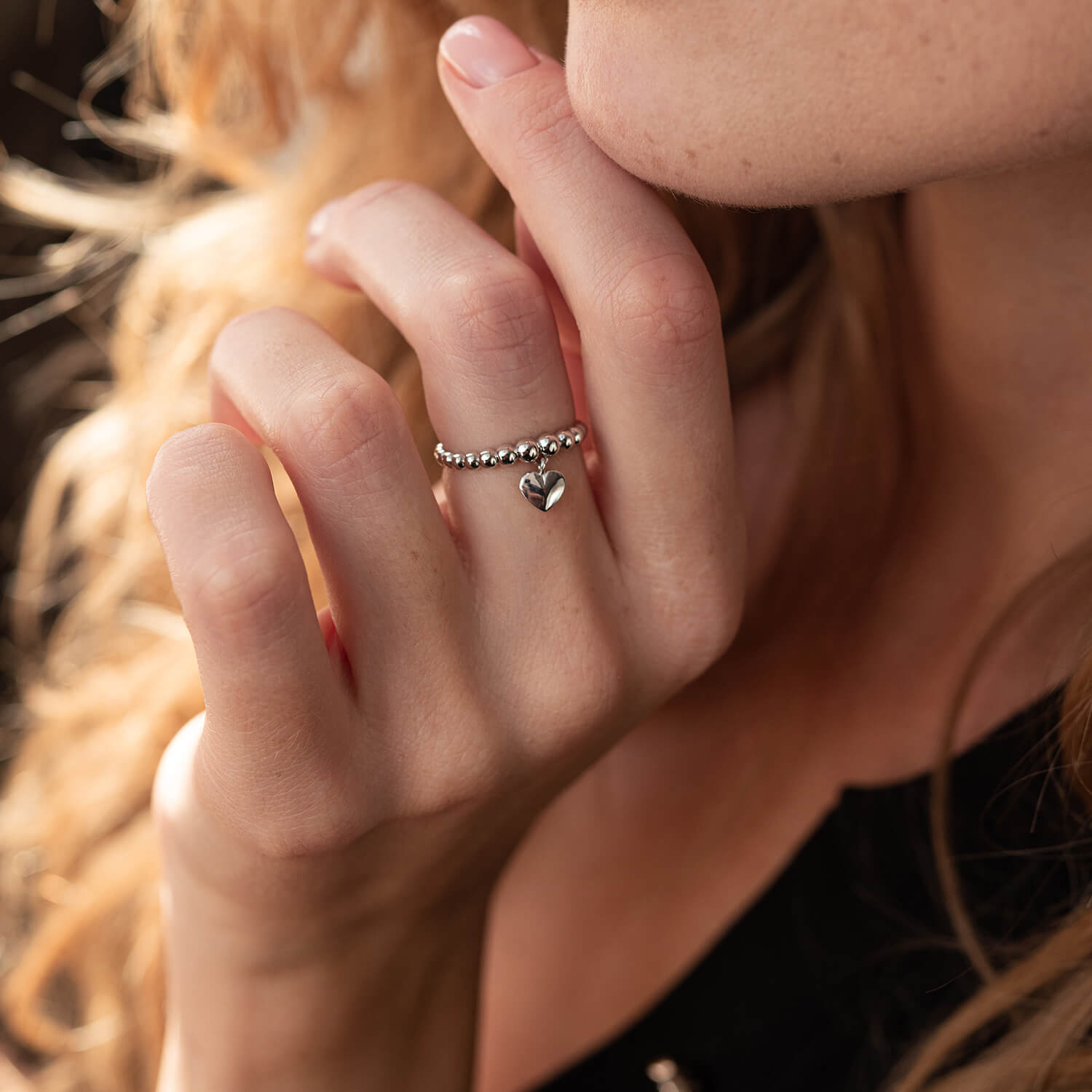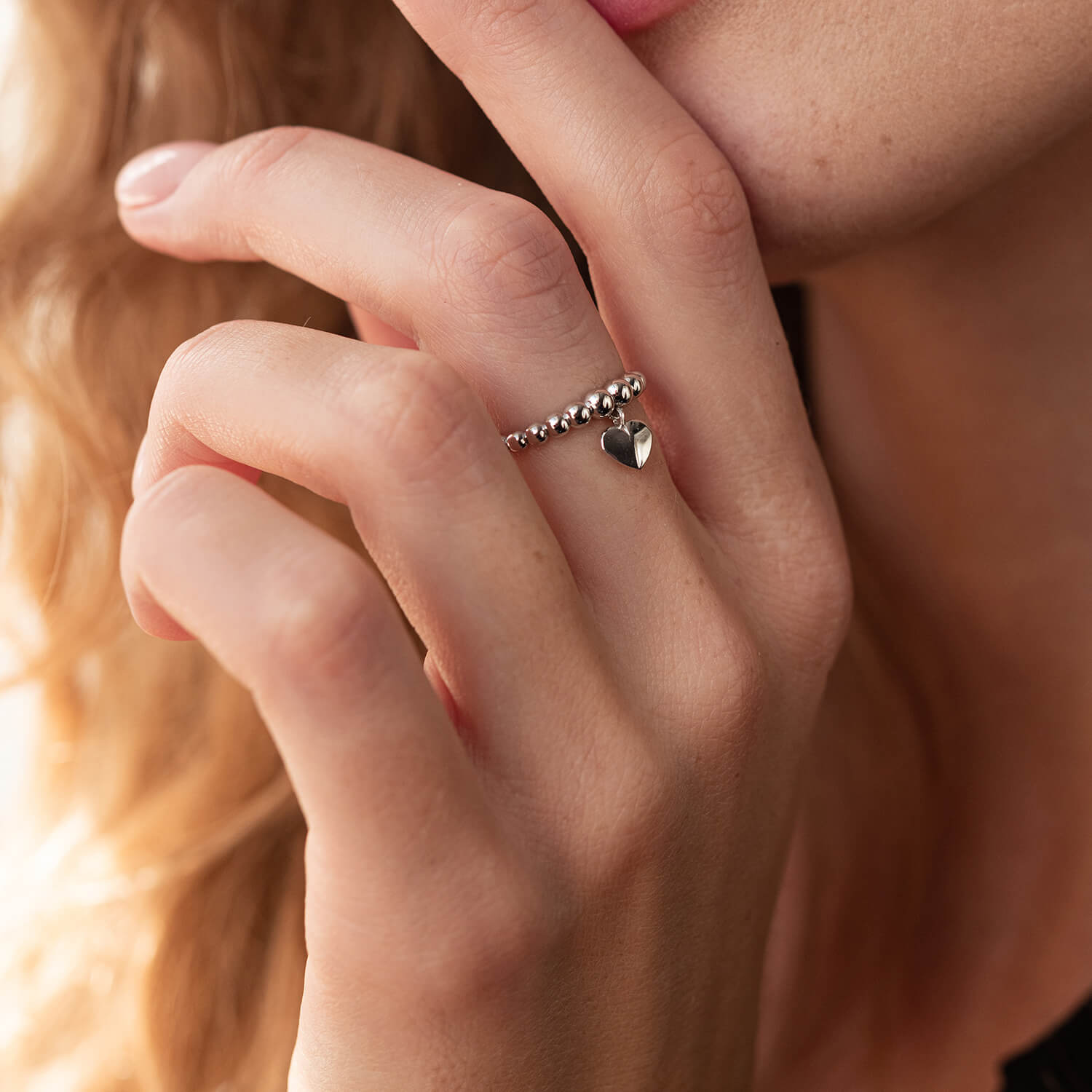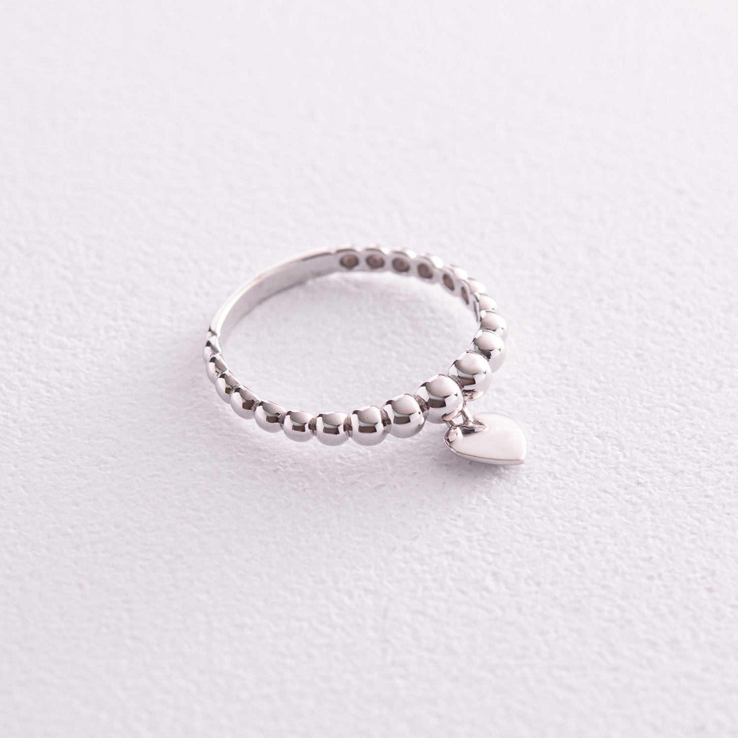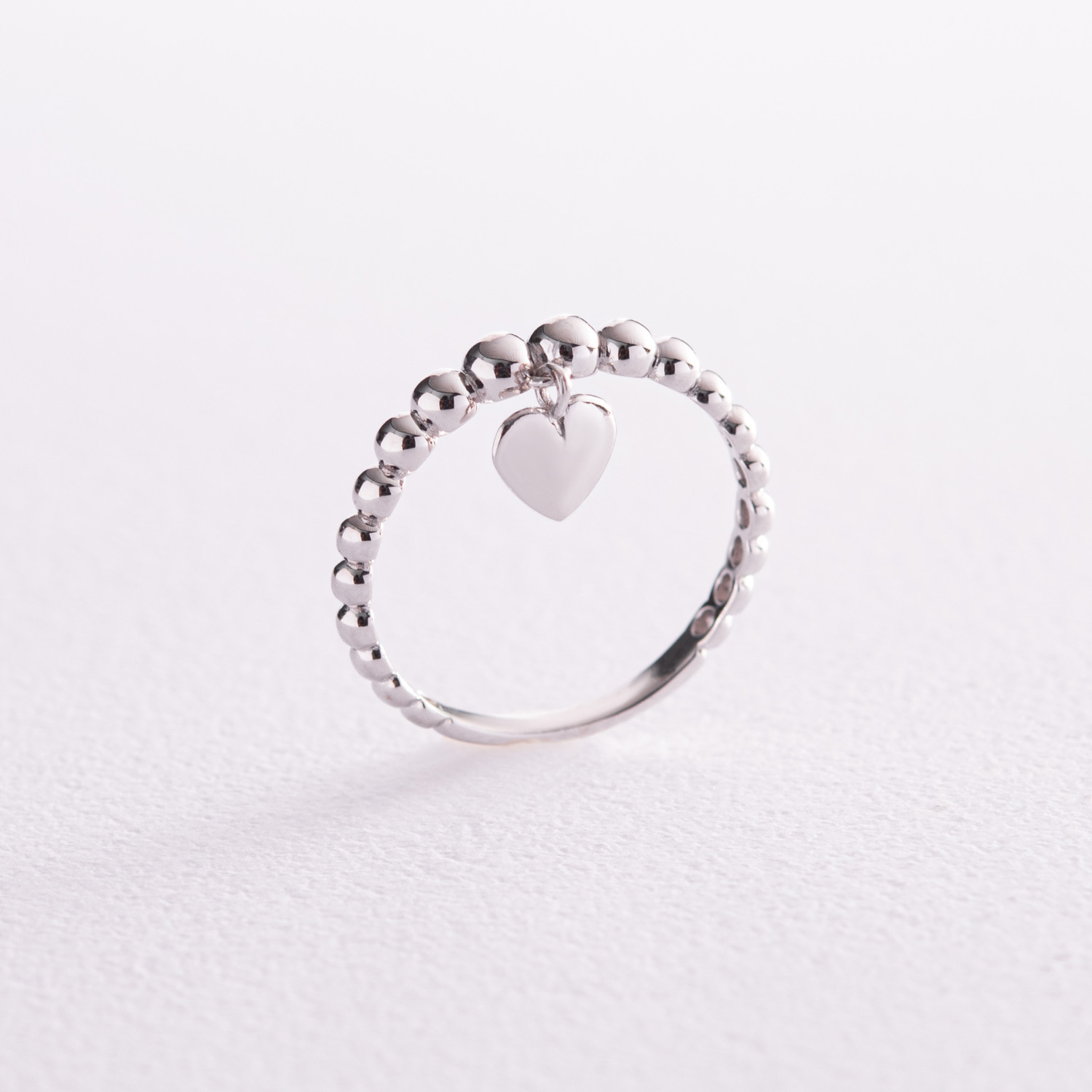 Шариковое кольцо "Сердечко" в белом золоте к07101