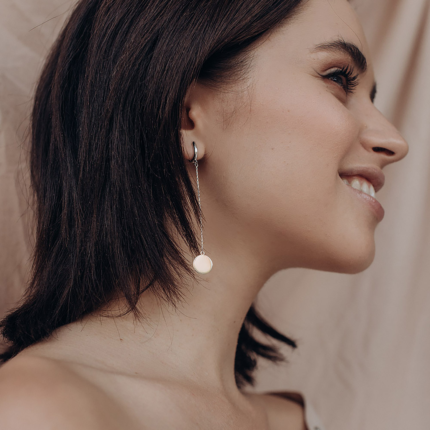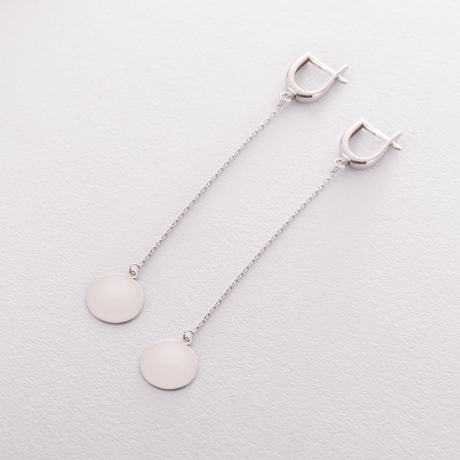 Висячие серьги "Монетки" из белого золота с06392
