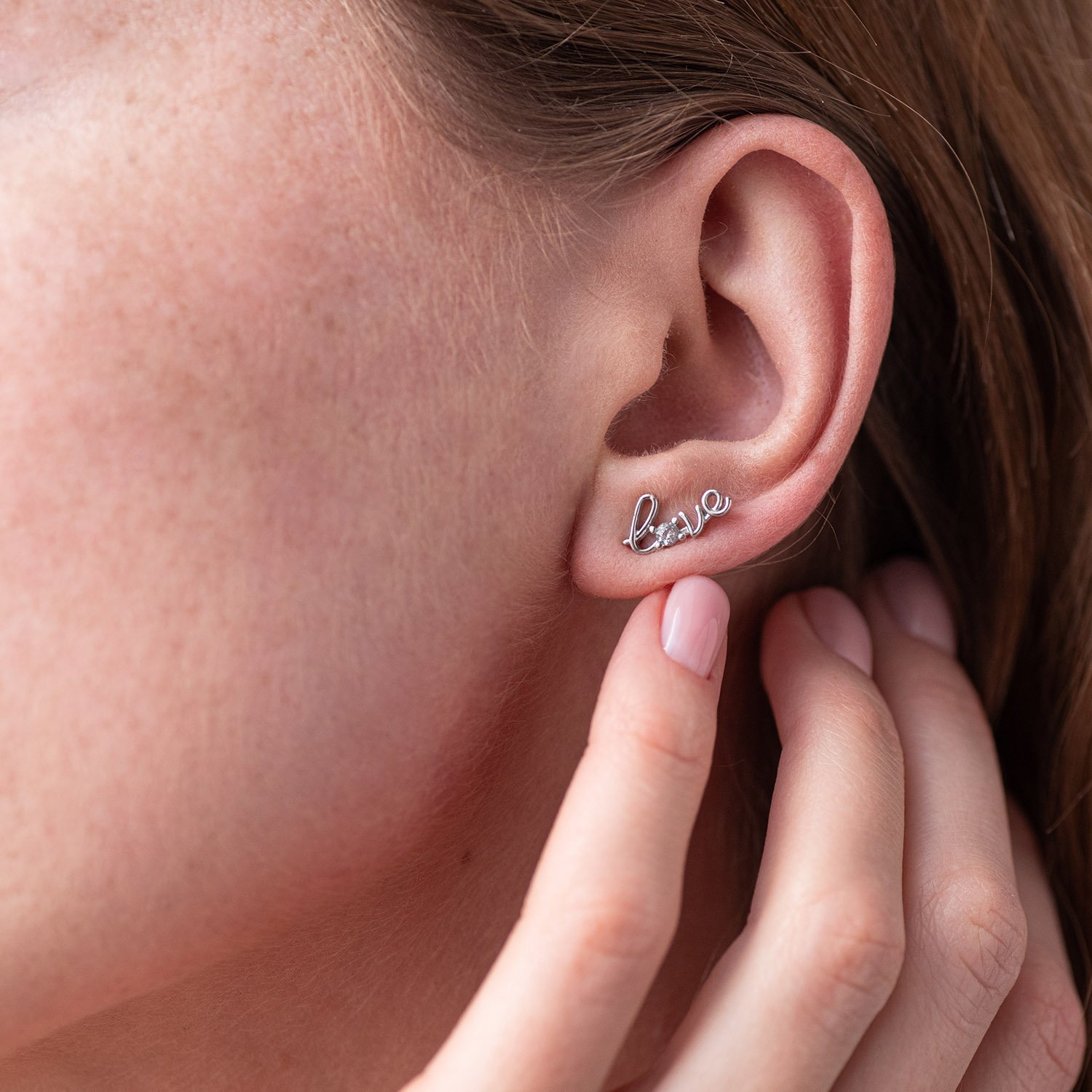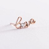 Золотая моносерьга "Love" с фианитом с07491
