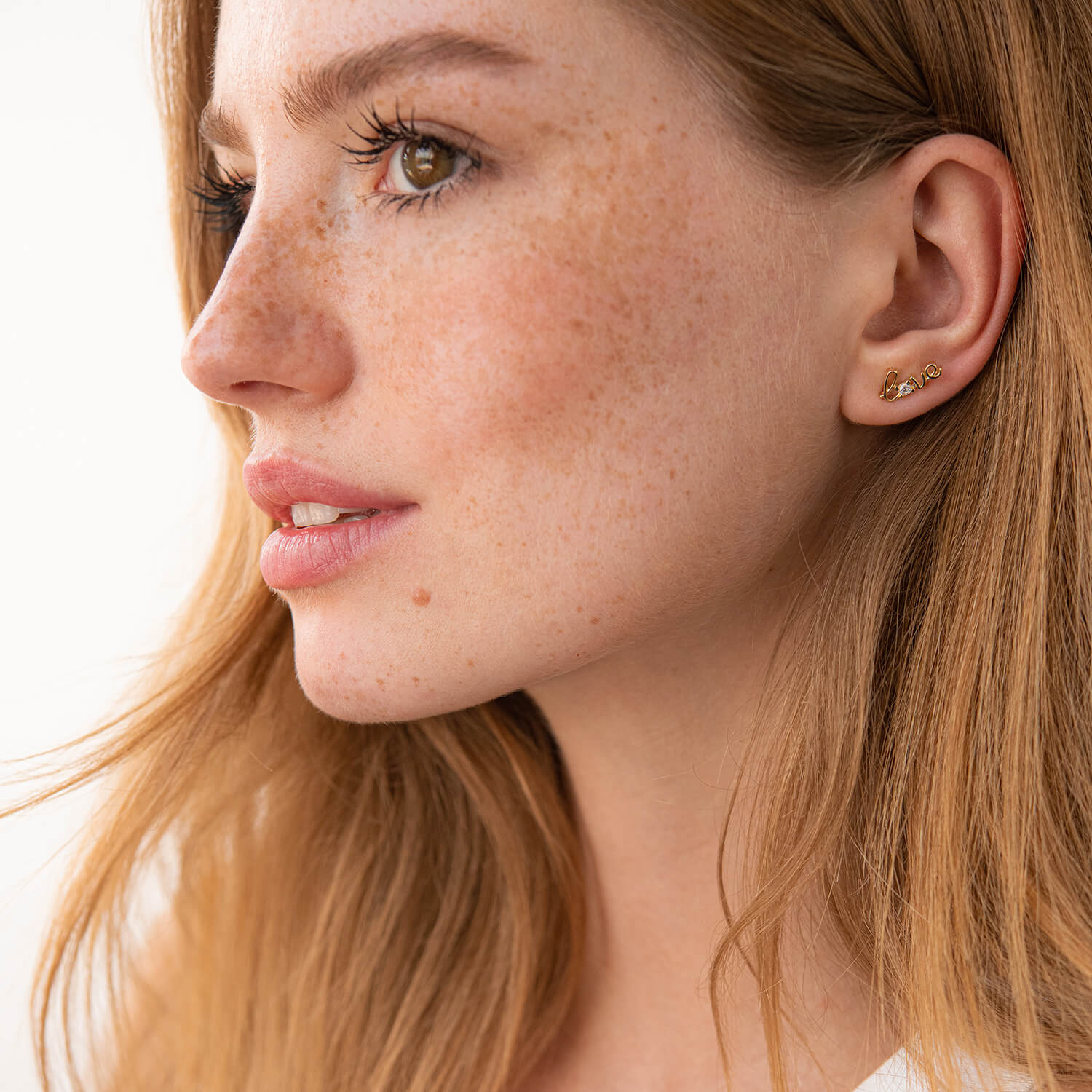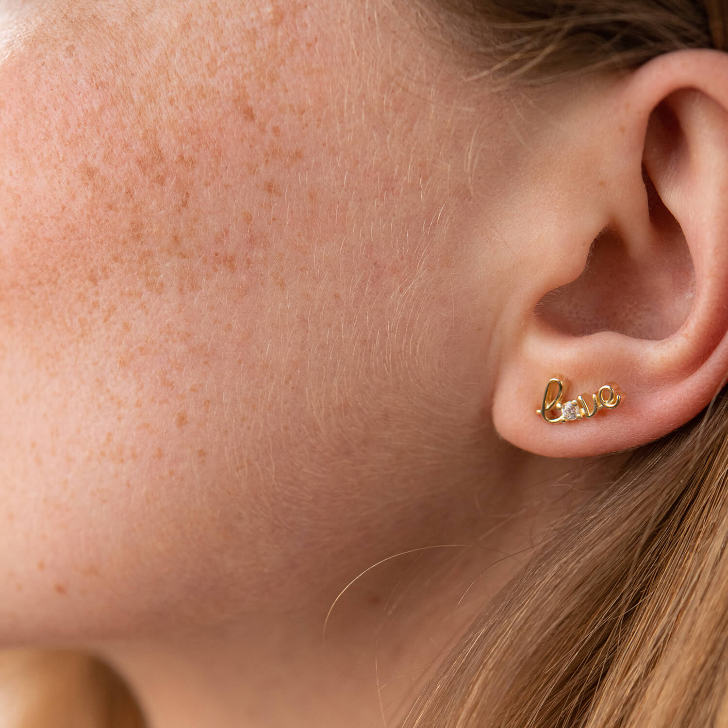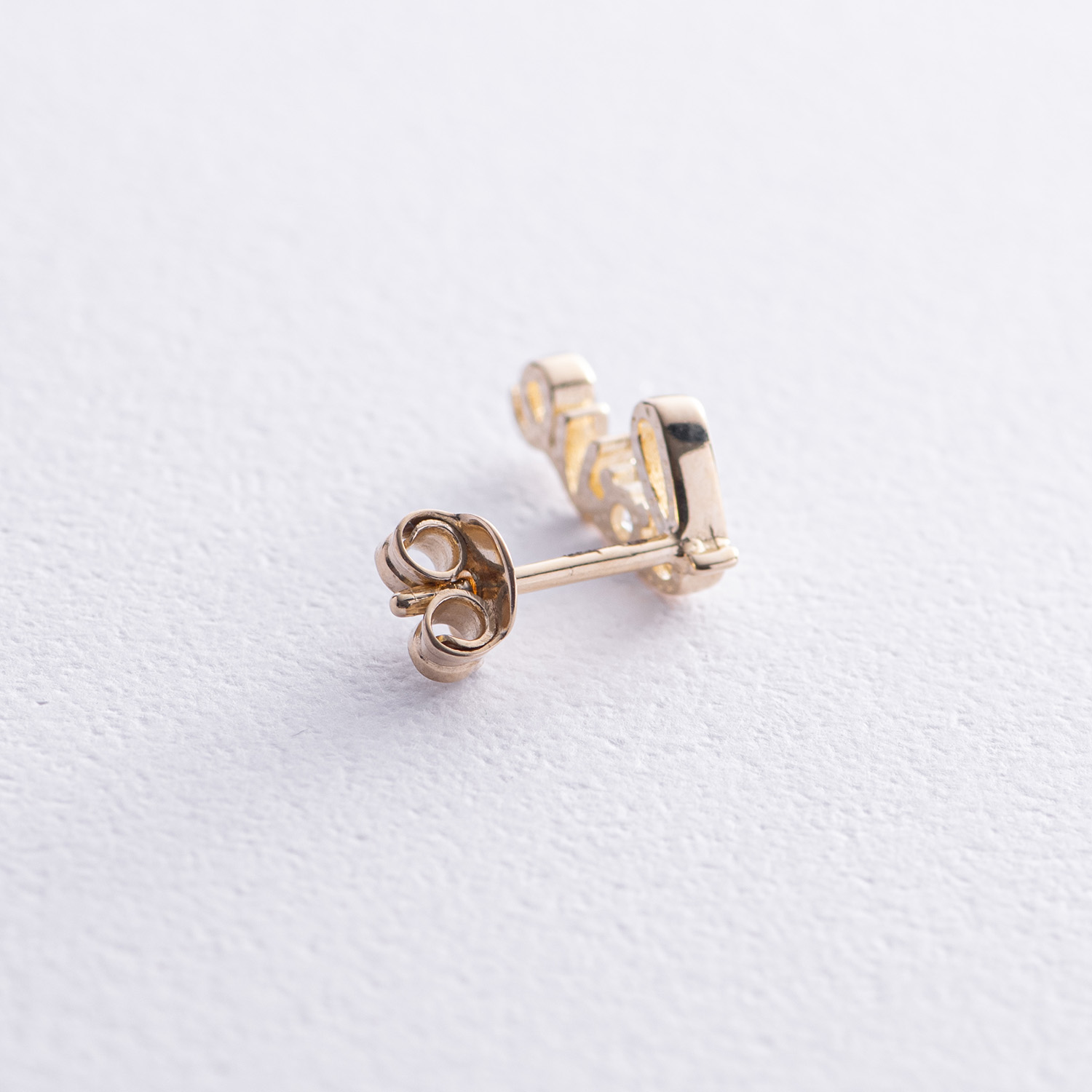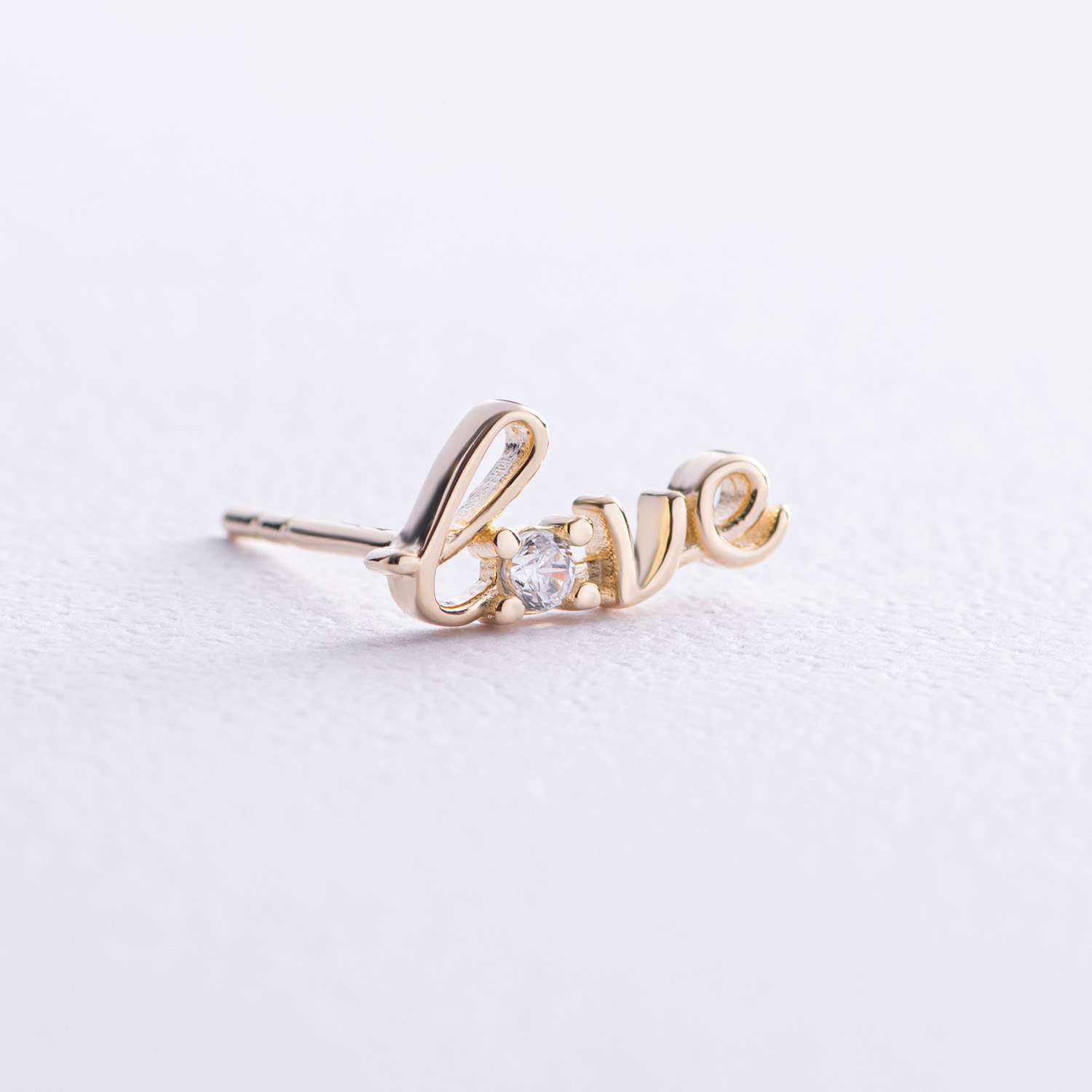 Золотая моносерьга "Love" с фианитом с07922