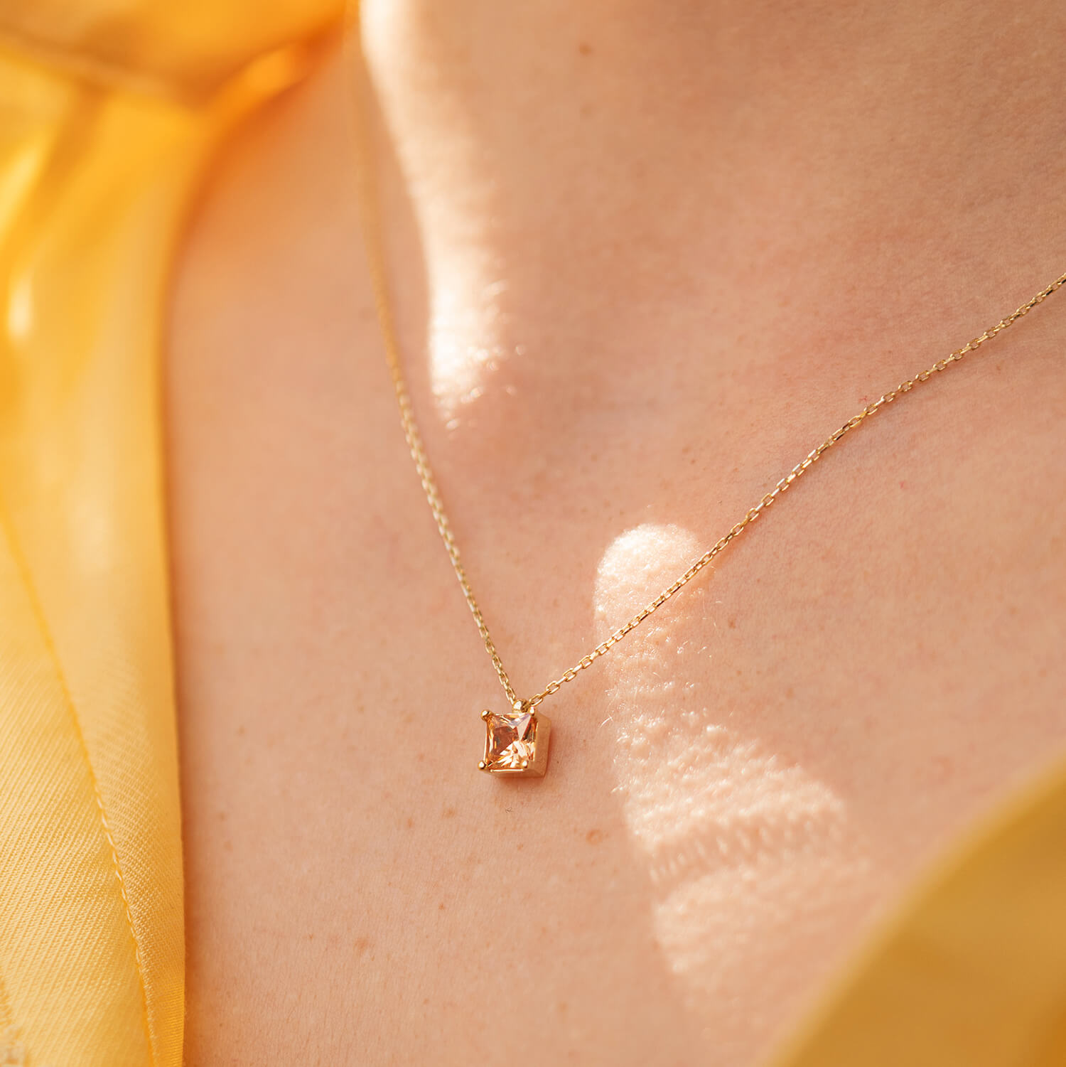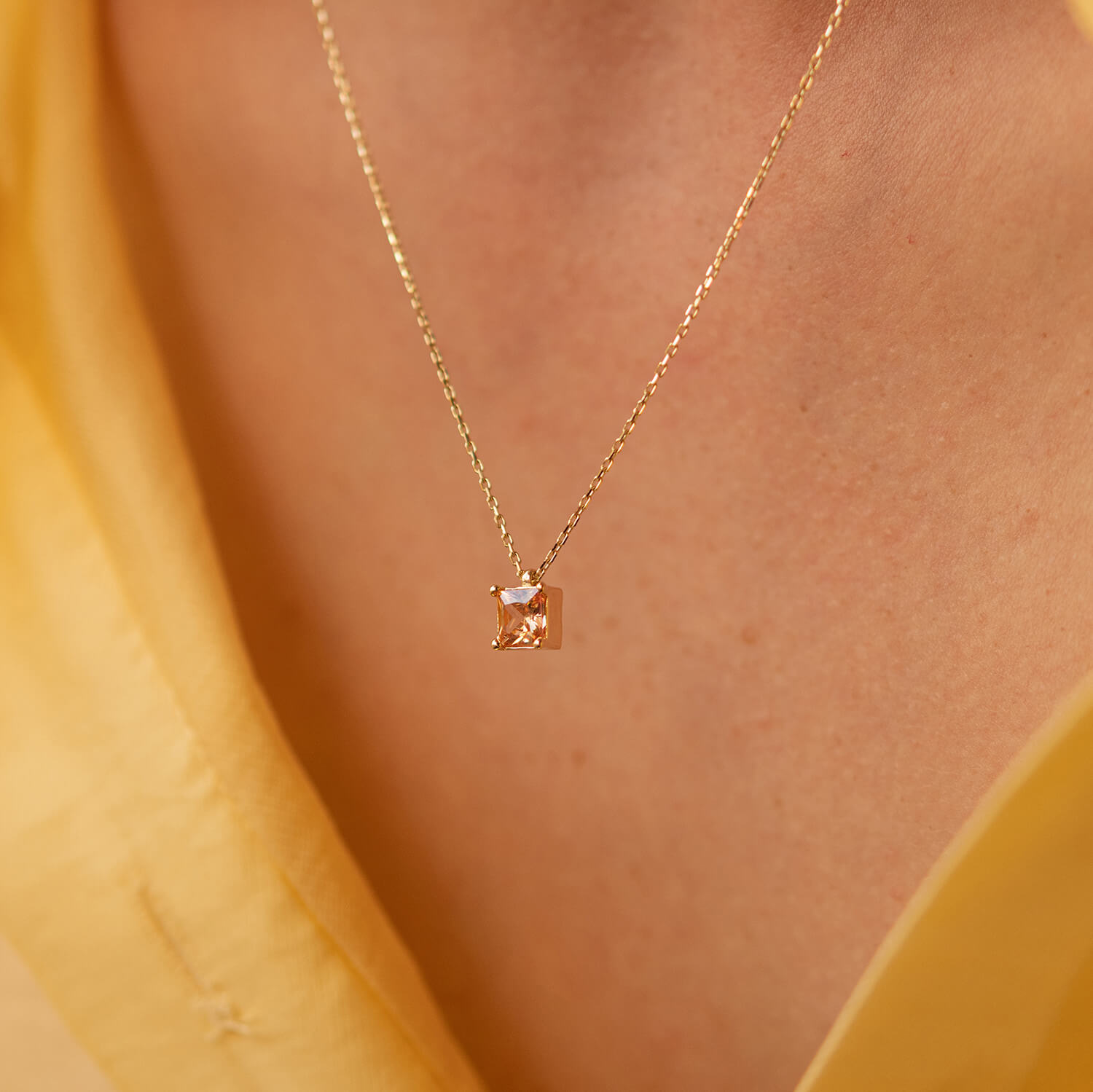 Золотое колье "Альма" (оранжевый фианит) кол02366
