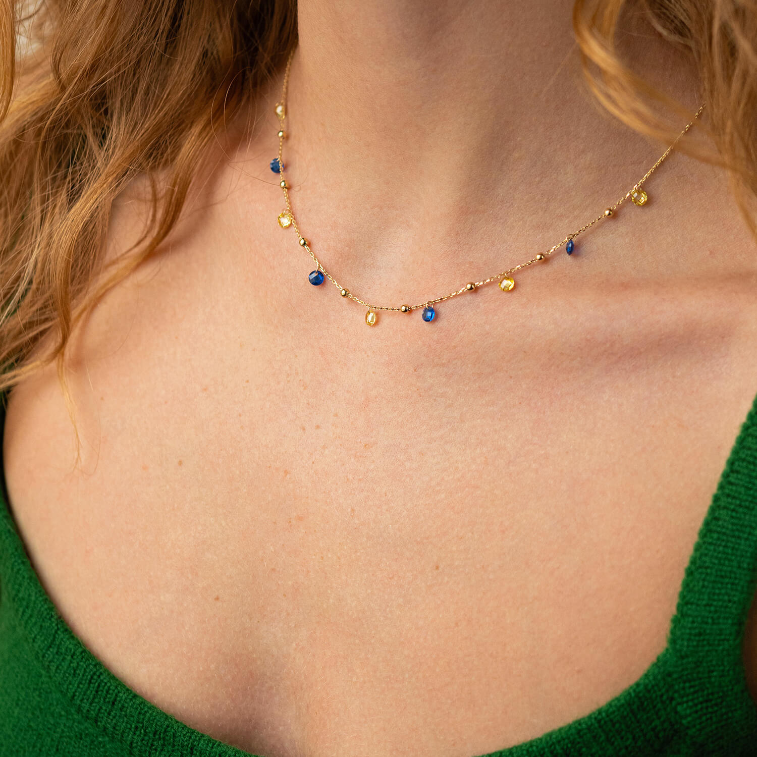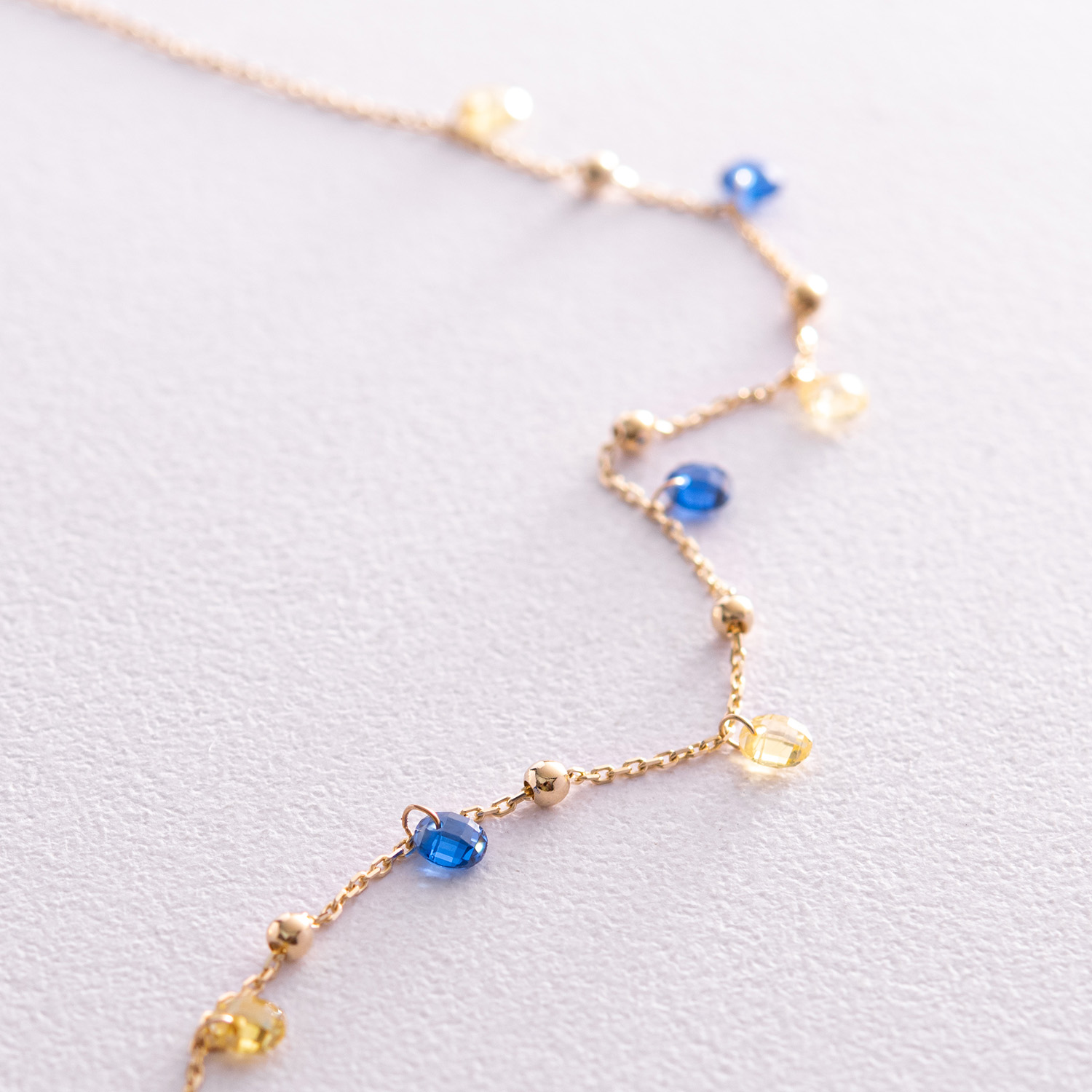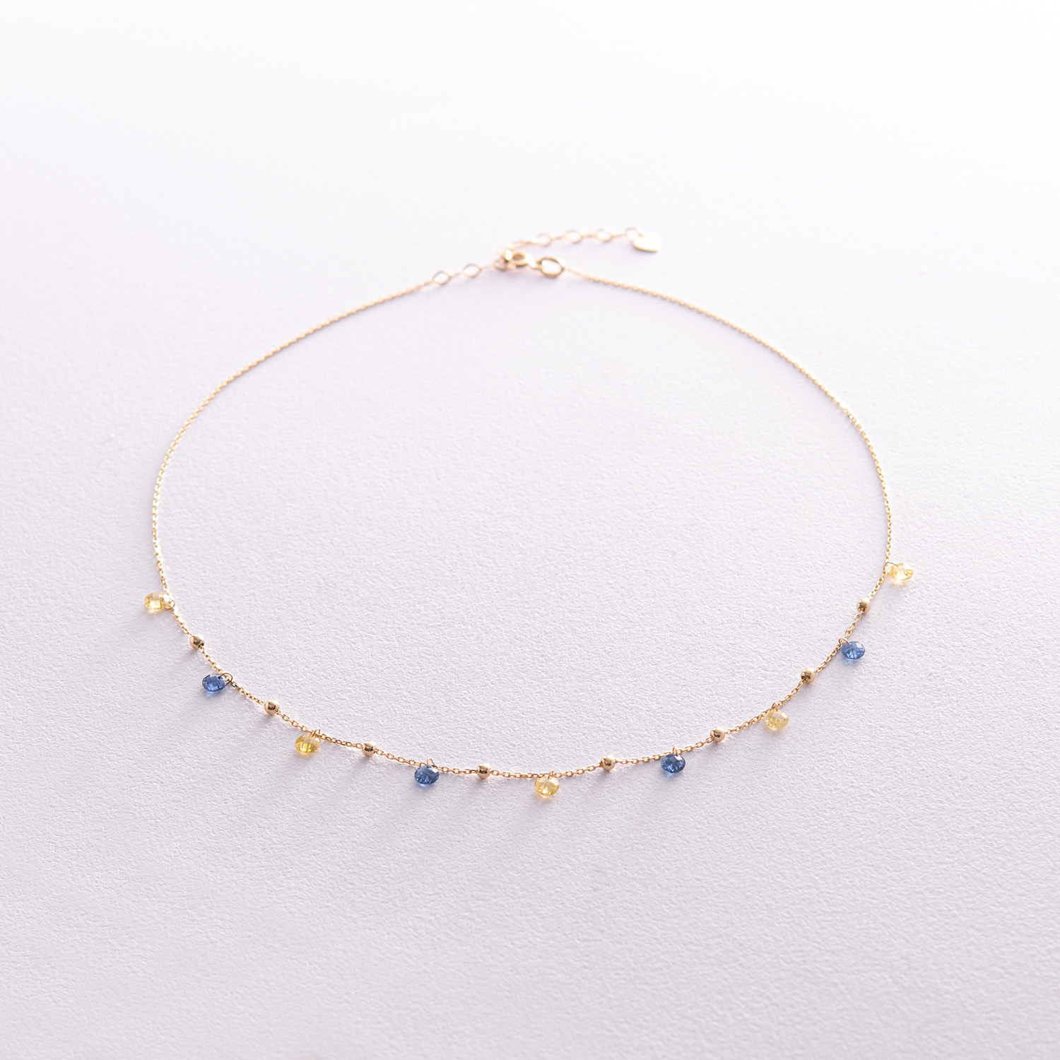 Золотое колье "Независимая" с шариками (синие и желтые фианиты) кол02321