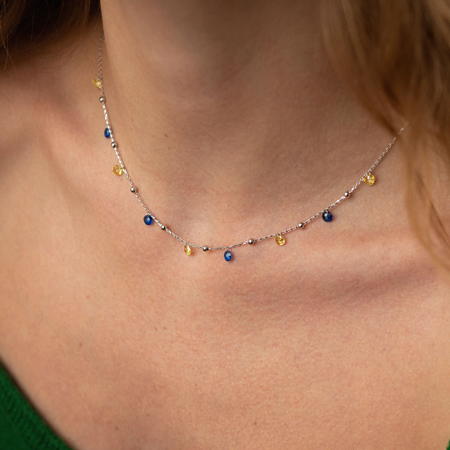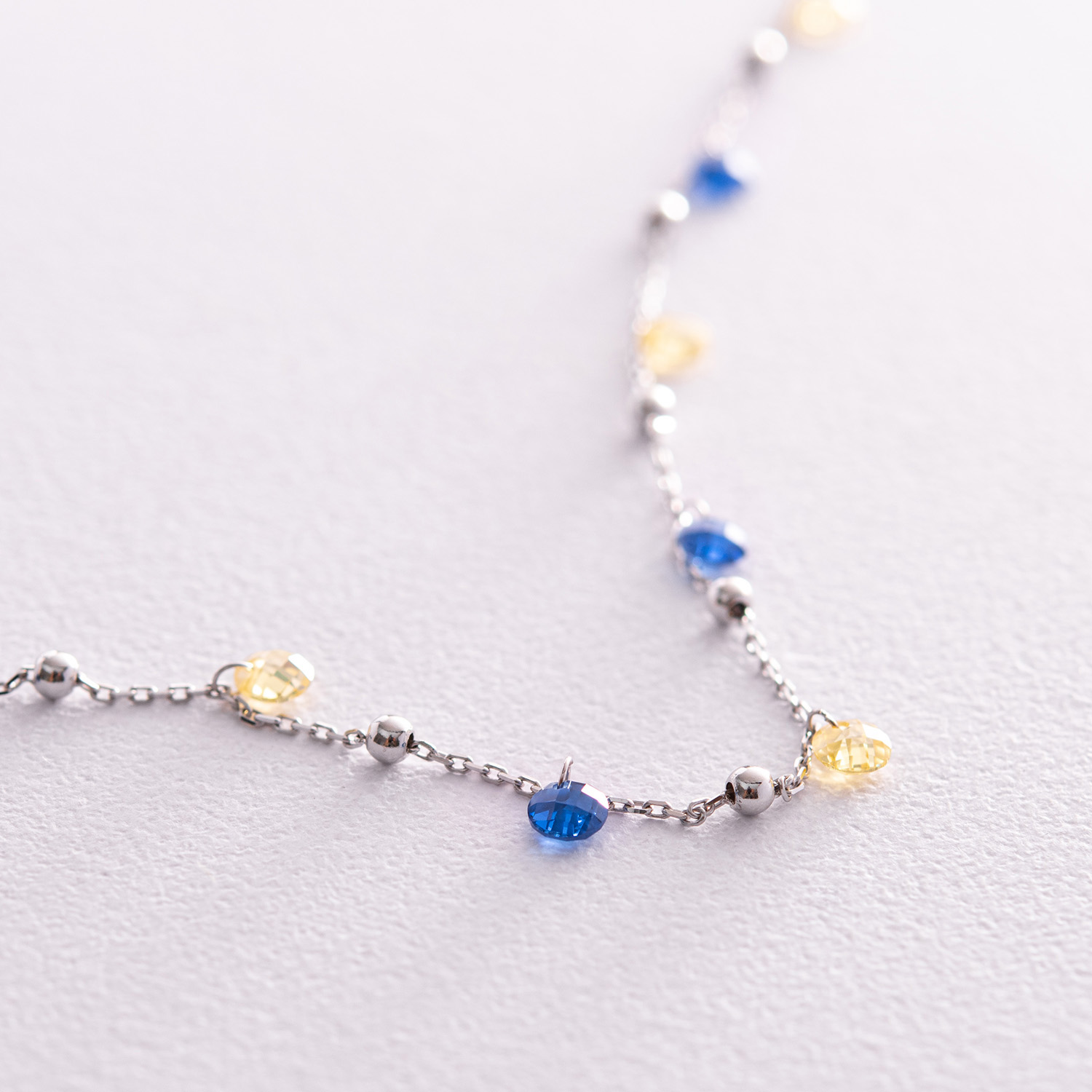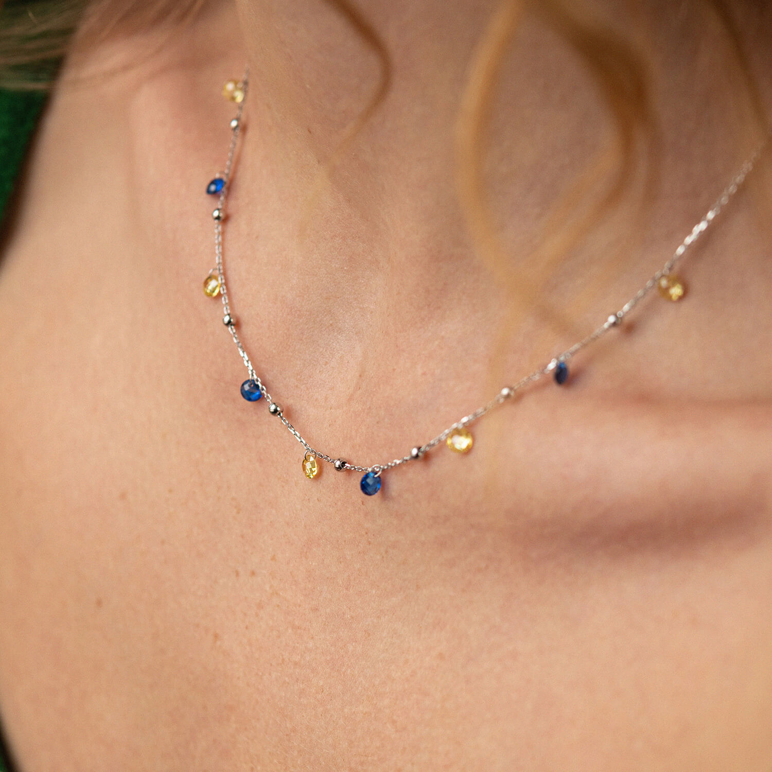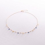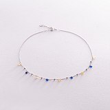 Золотое колье "Независимая" с шариками (синие и желтые фианиты) кол02337