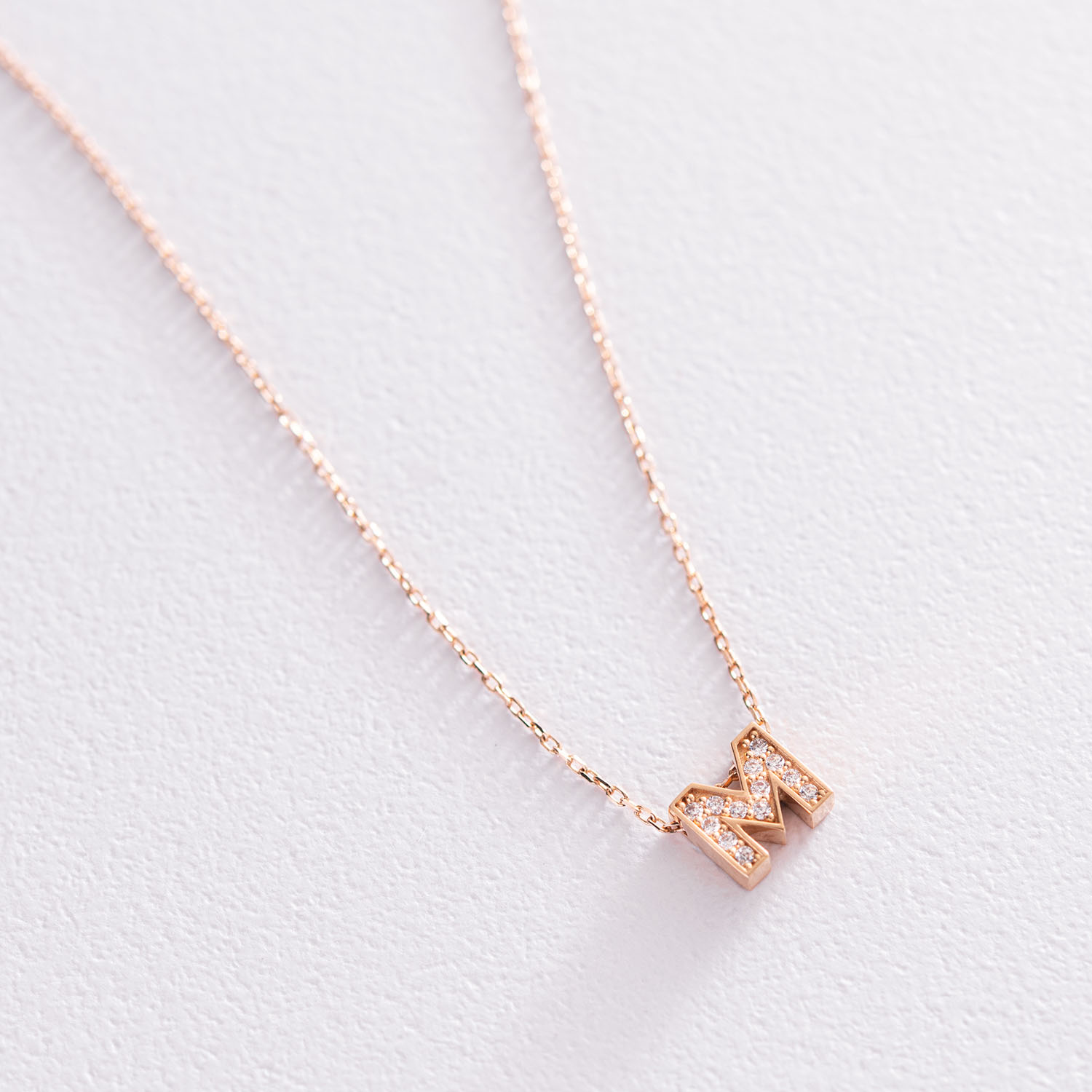 Колье с буквой "М" в красном золоте (фианиты) кол01255М