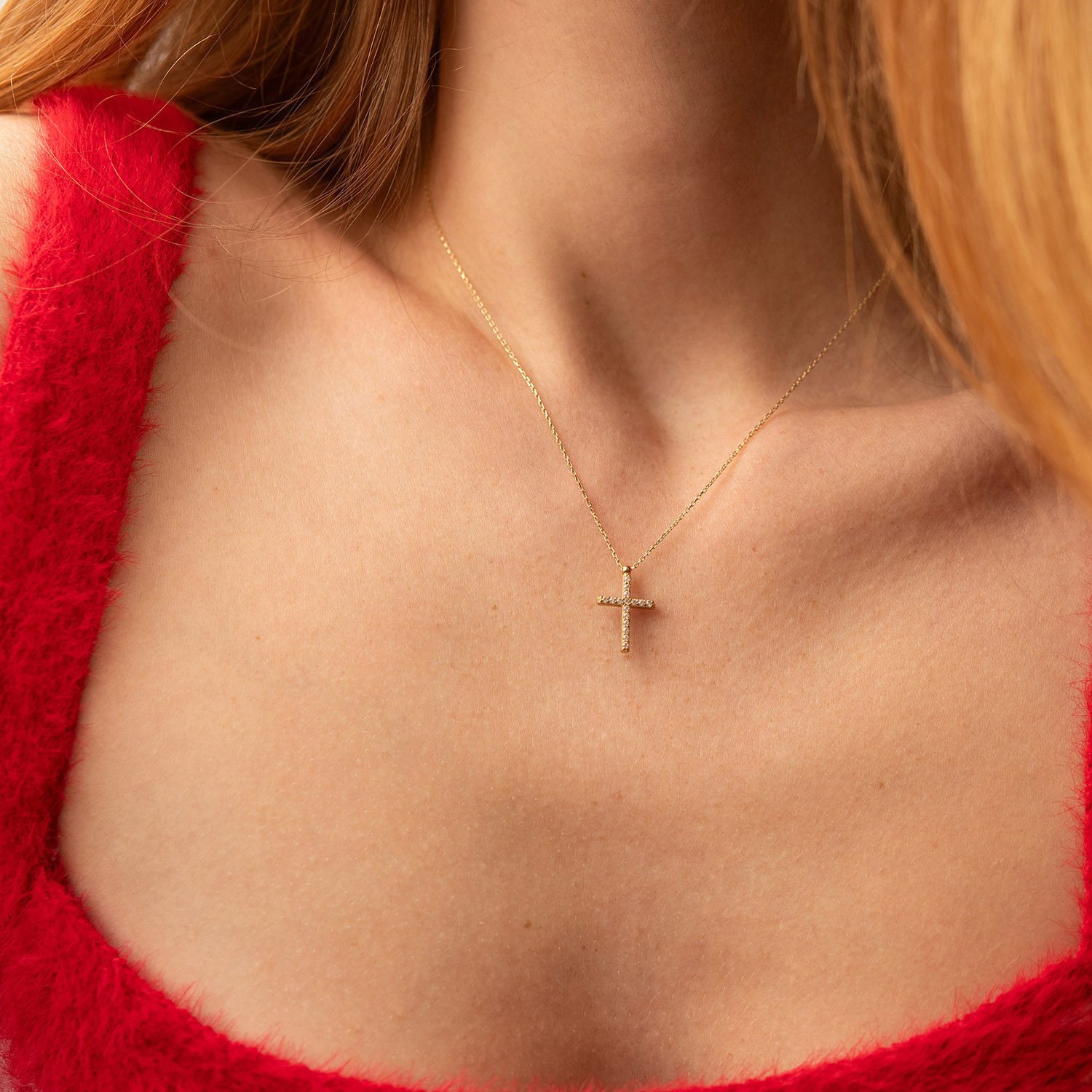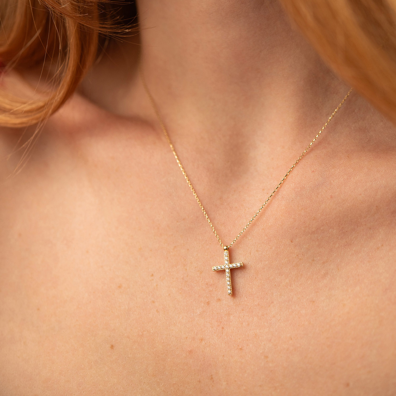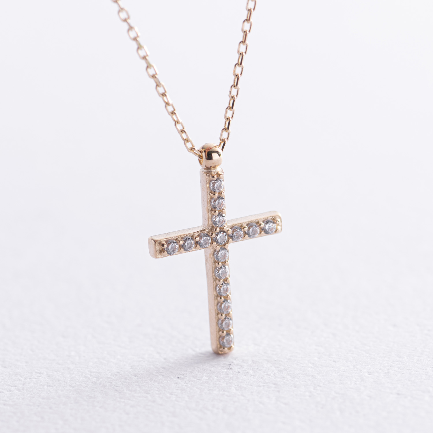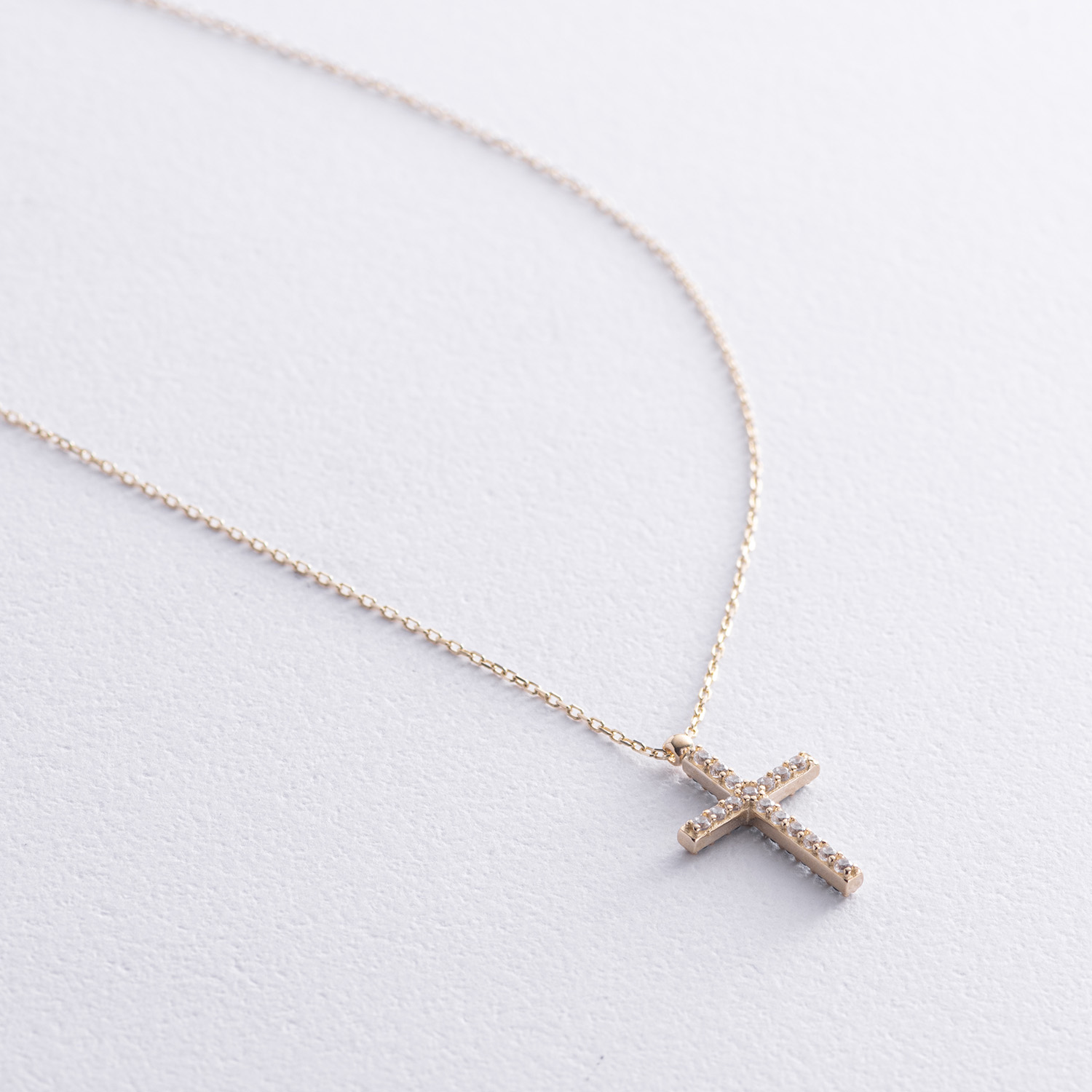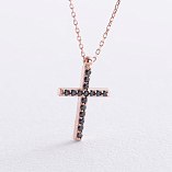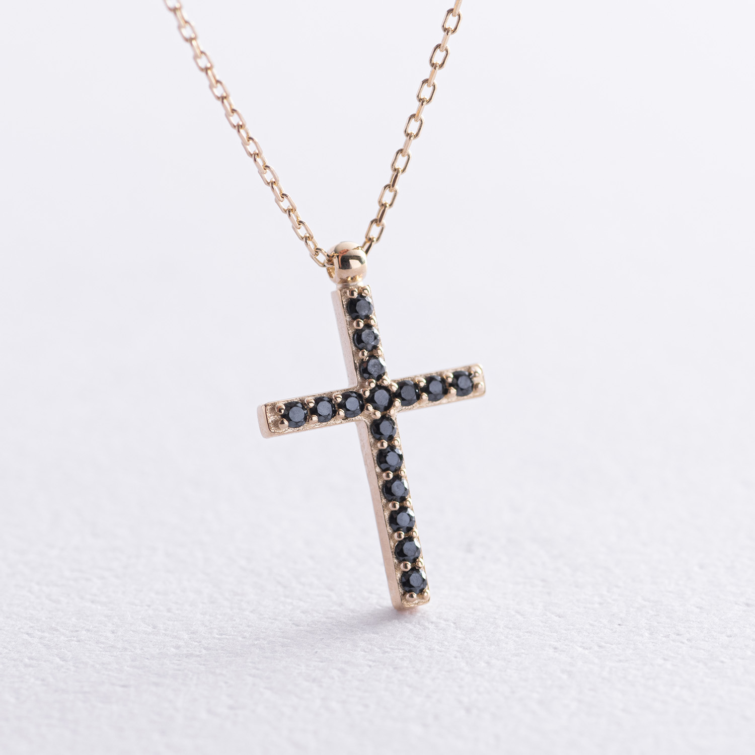 Золотое колье с крестиком (черные и белые фианиты) кол00811