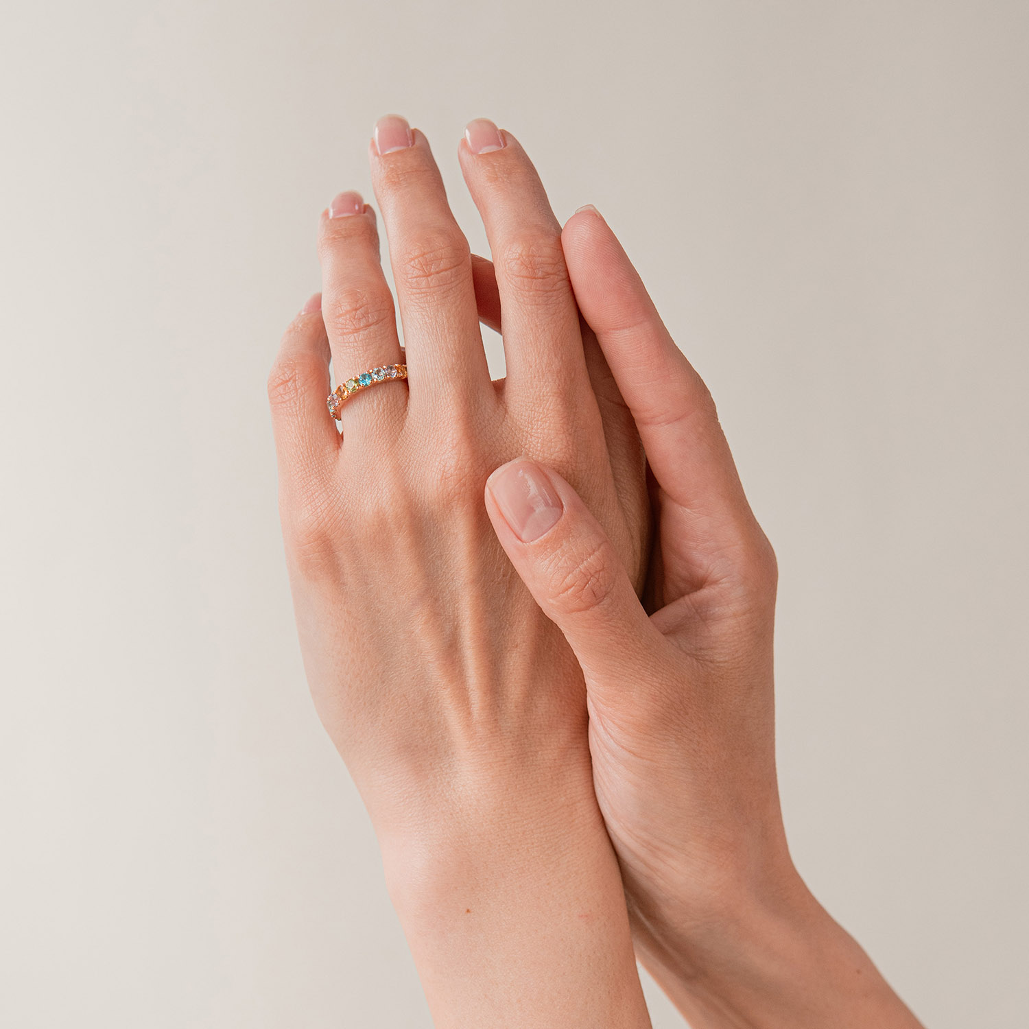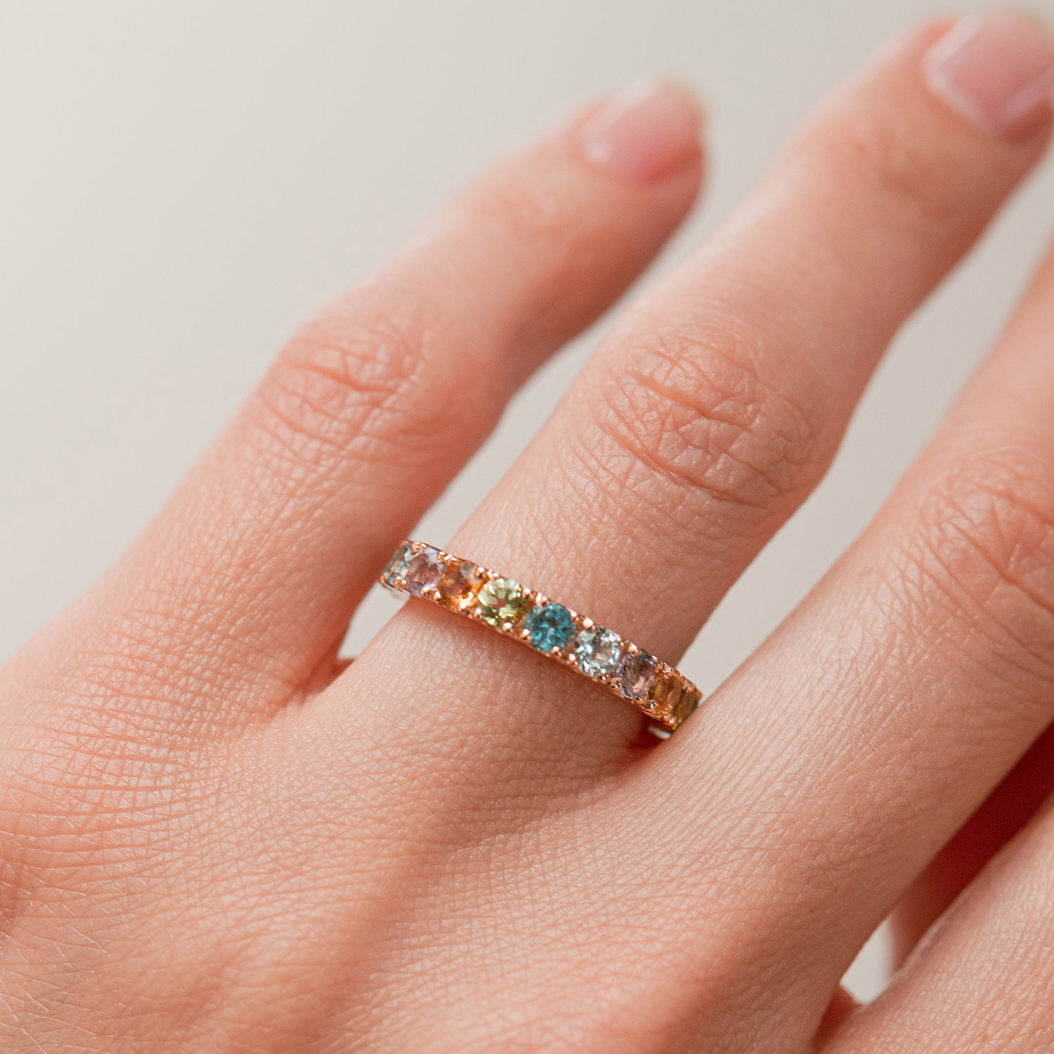Золотое кольцо с дорожкой разноцветных натуральных камней к07526