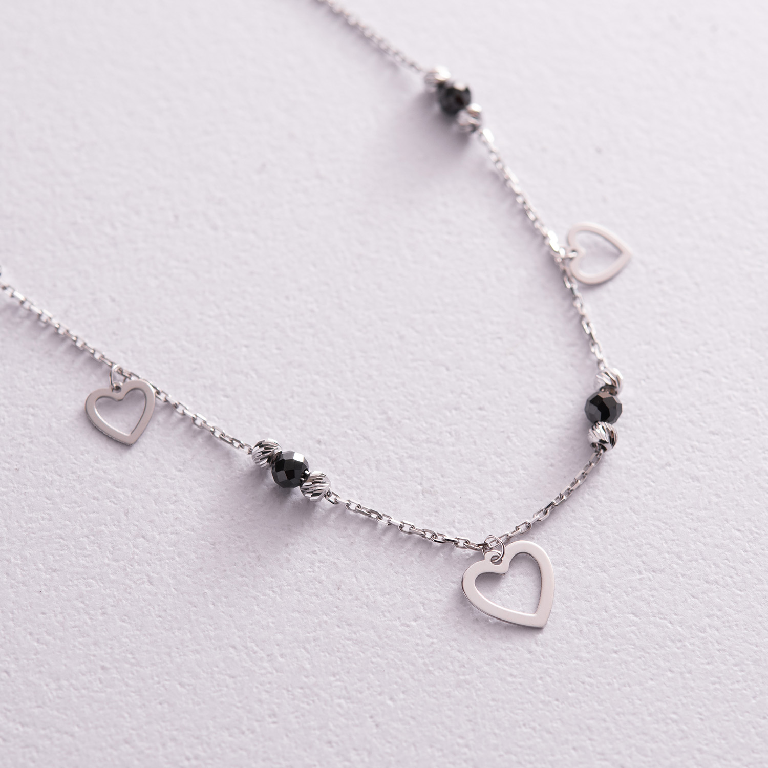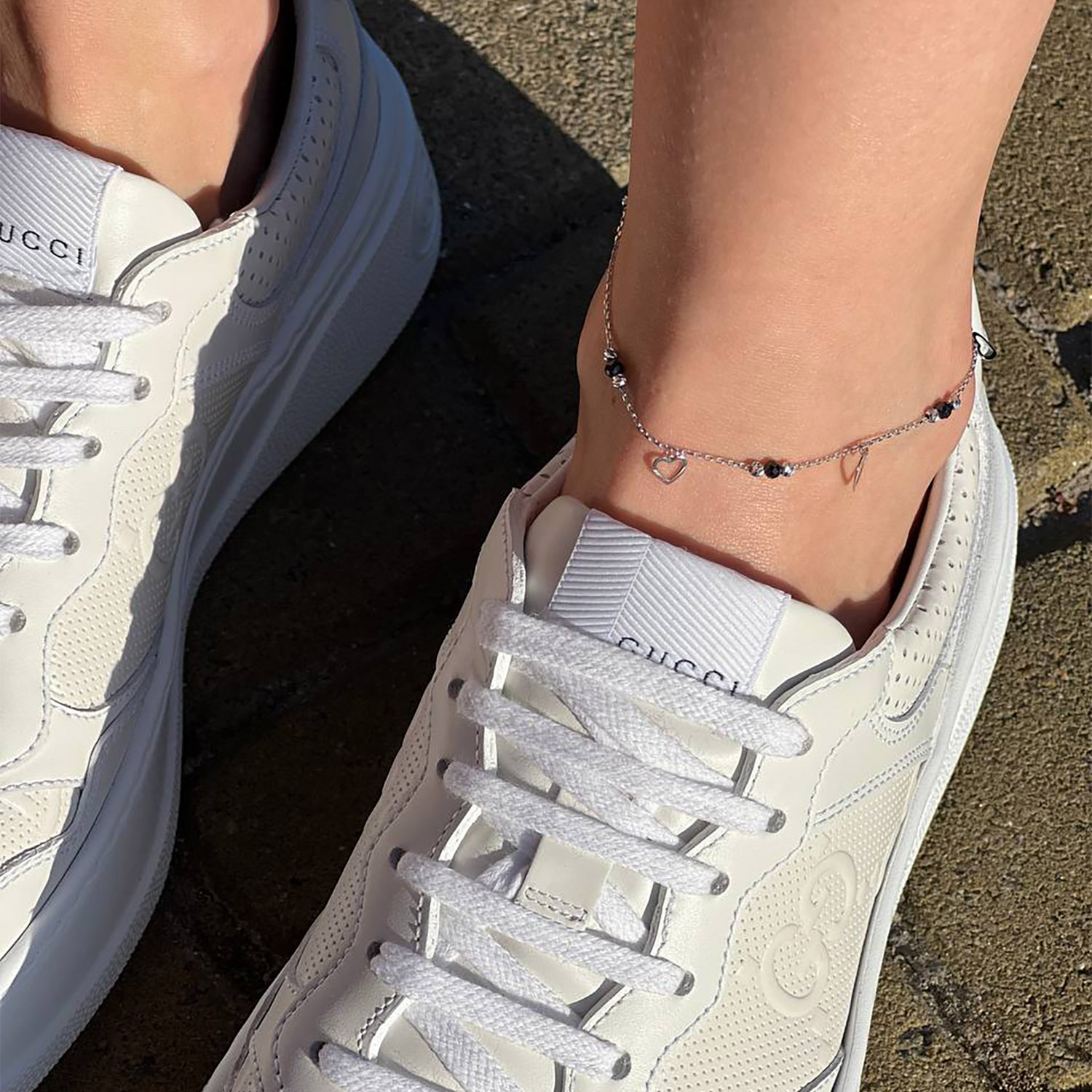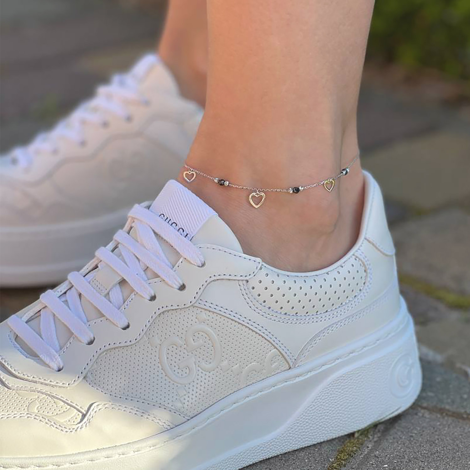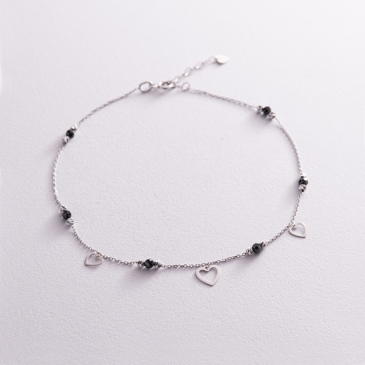 Золотой браслет "Сердечки" (фианиты) на ногу б04900