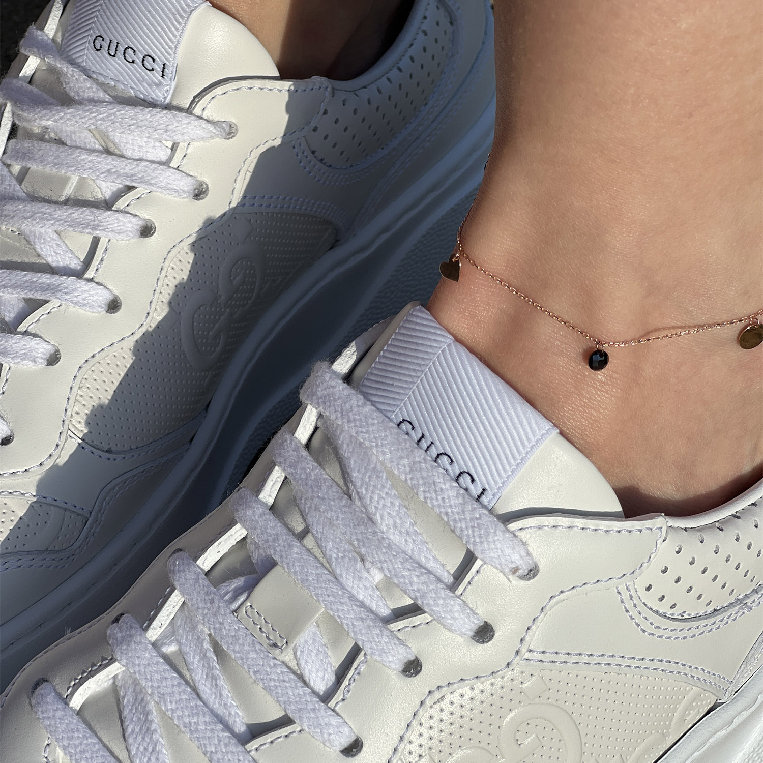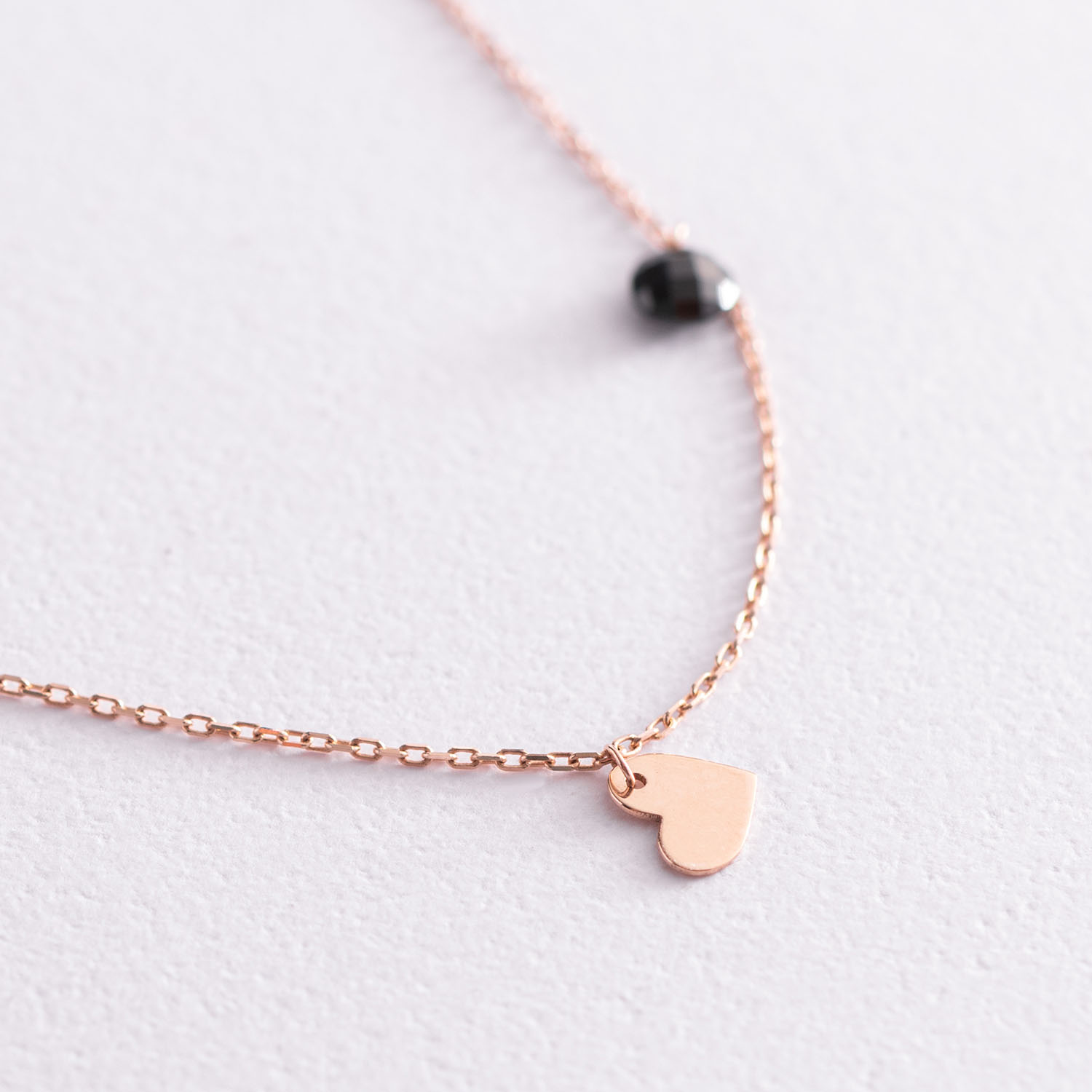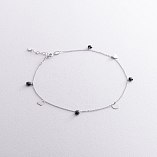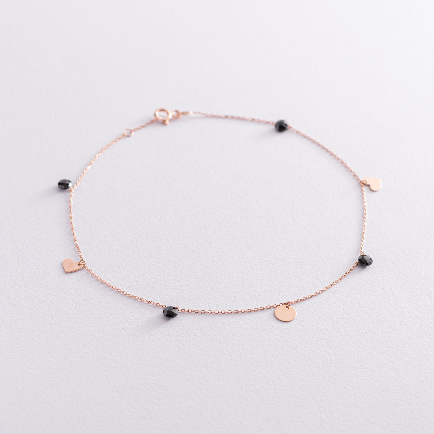 Золотой браслет "Сердечки и монетка" на ногу (черные фианиты) б04794