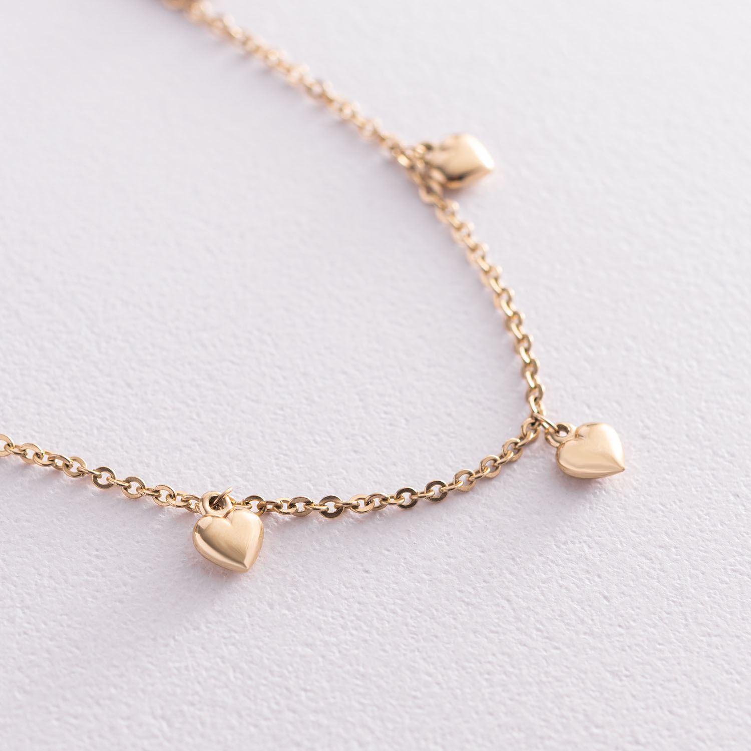 Золотой браслет "Сердечки" на ногу б04700