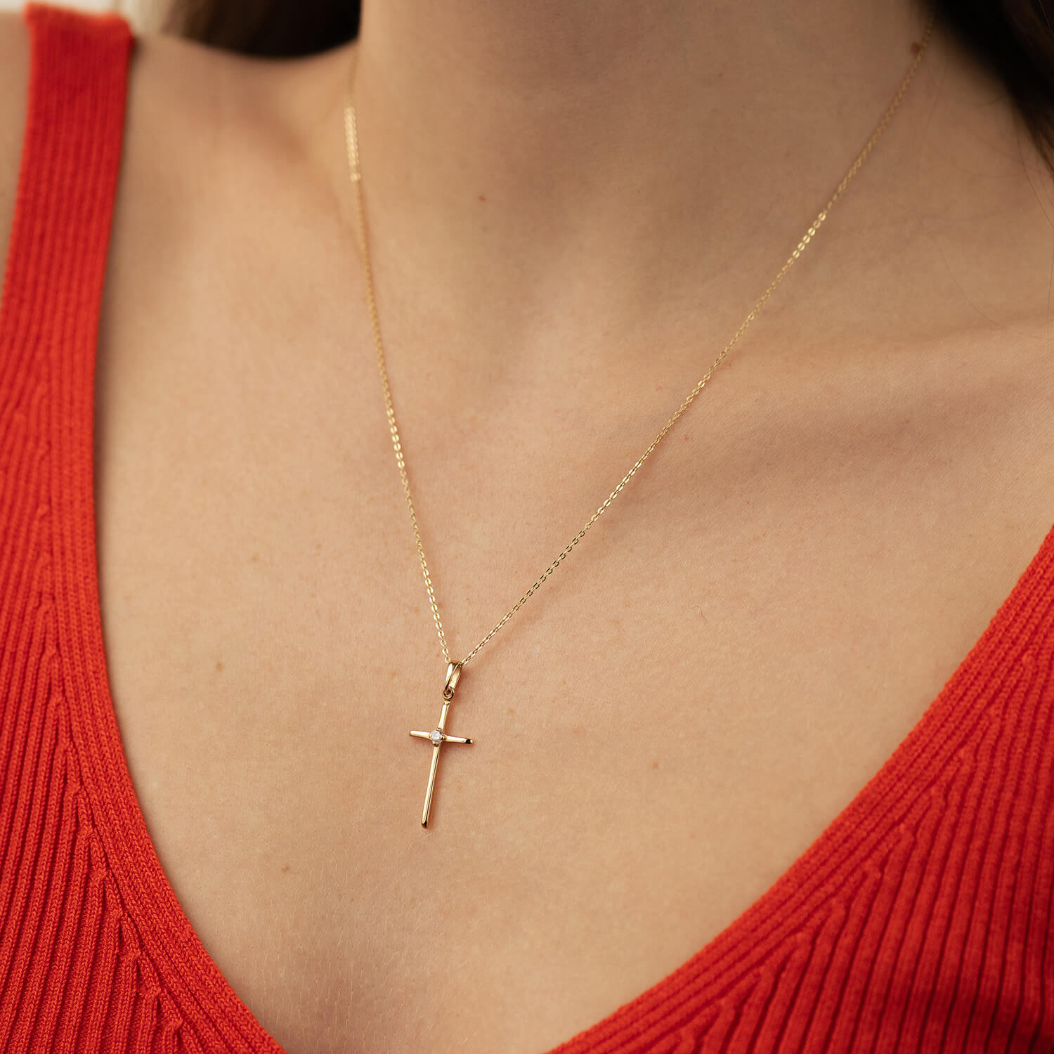 Золотой крестик с фианитом п03798