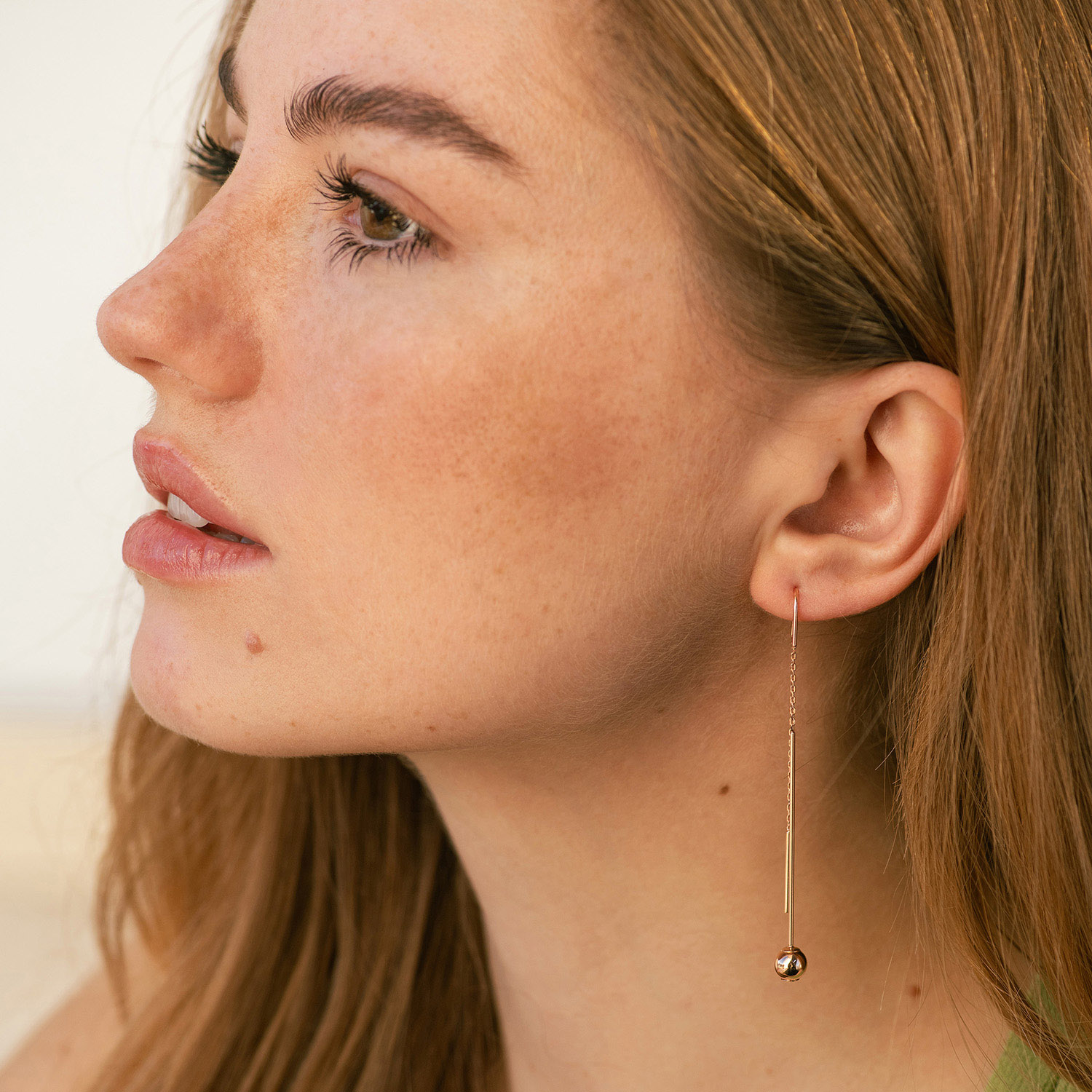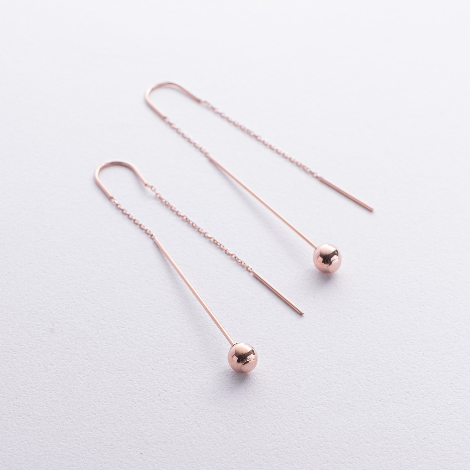 Золотые серьги "Шарики" на цепочке с08825