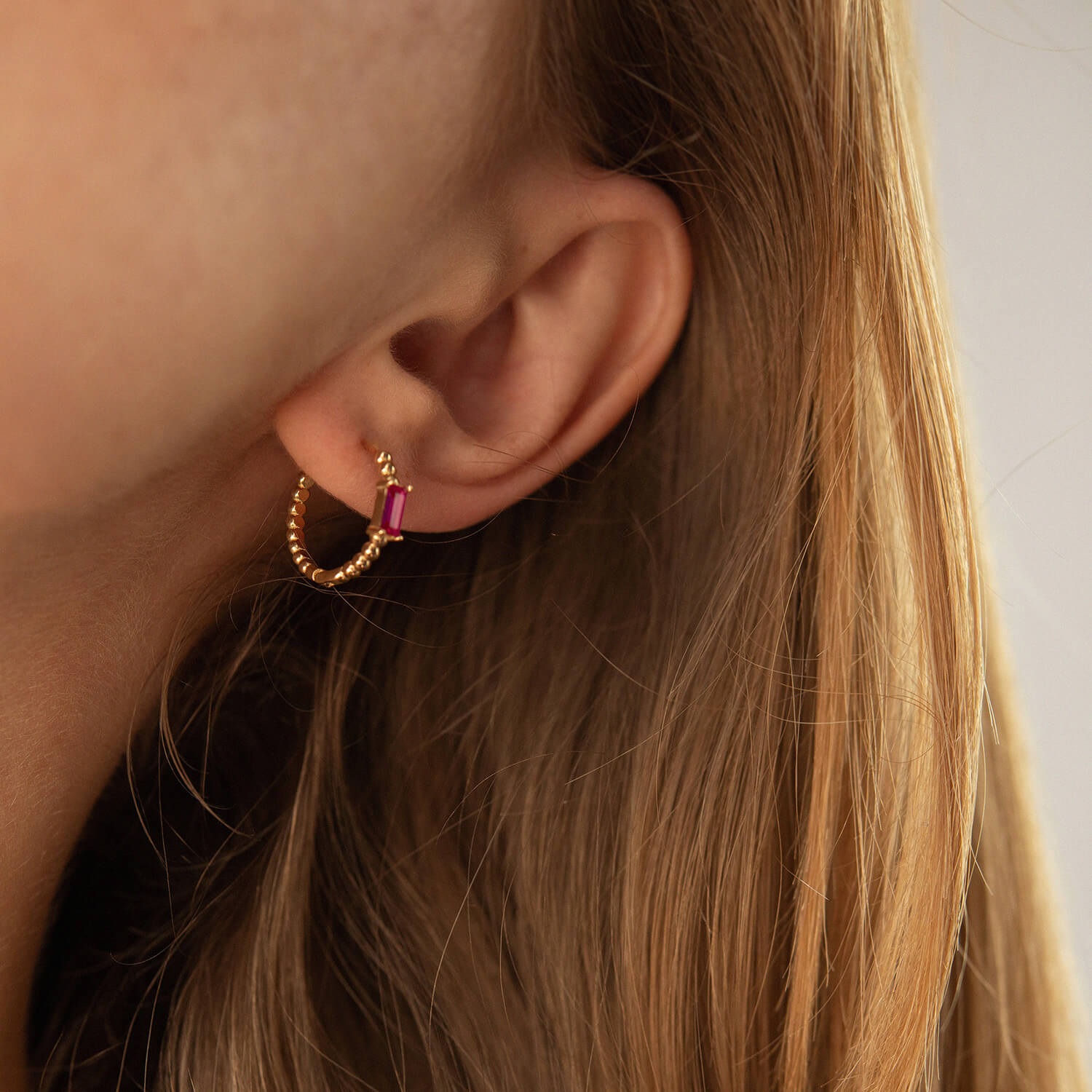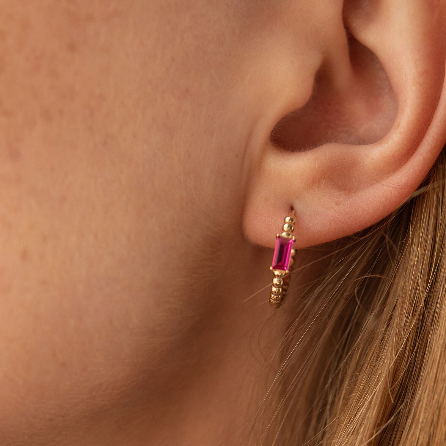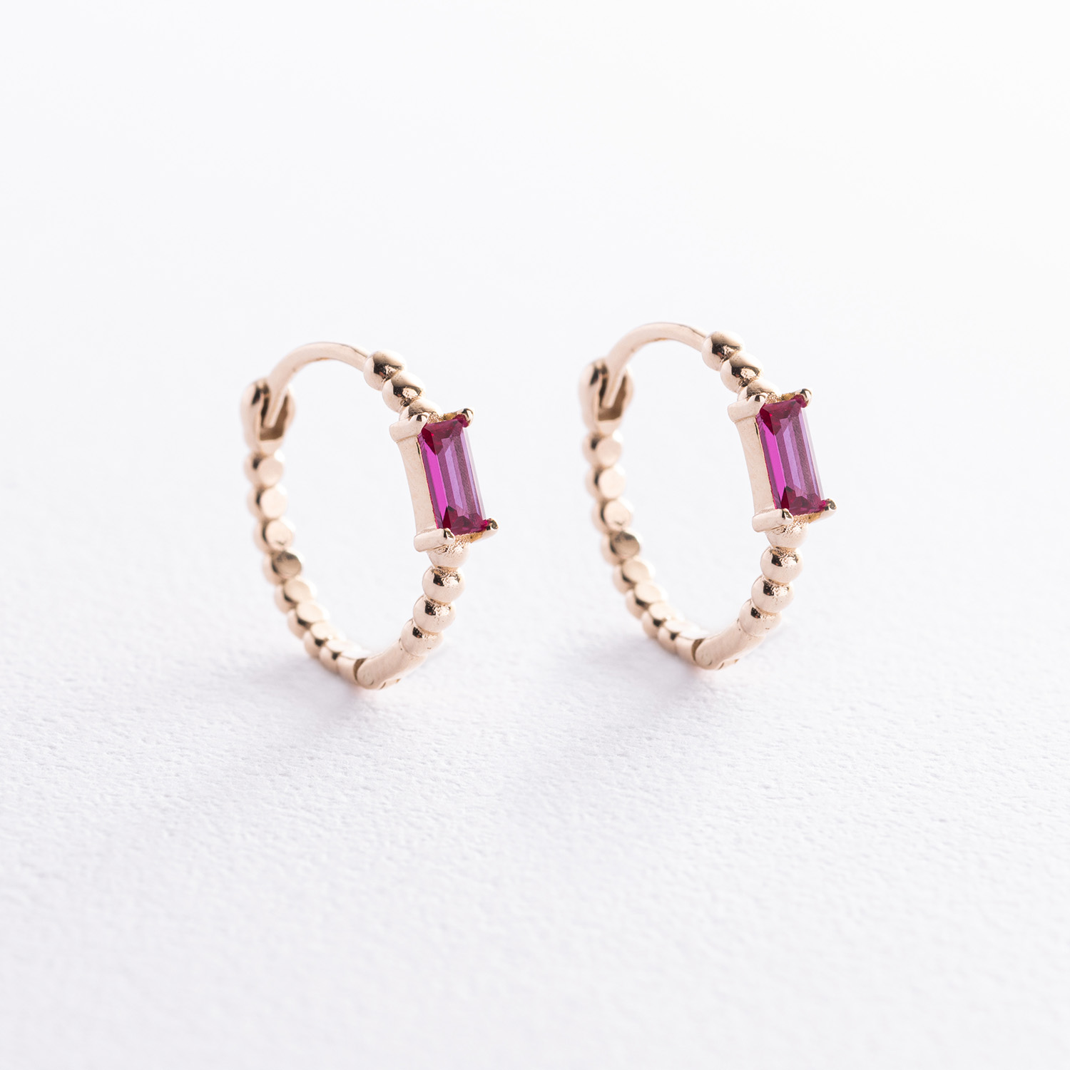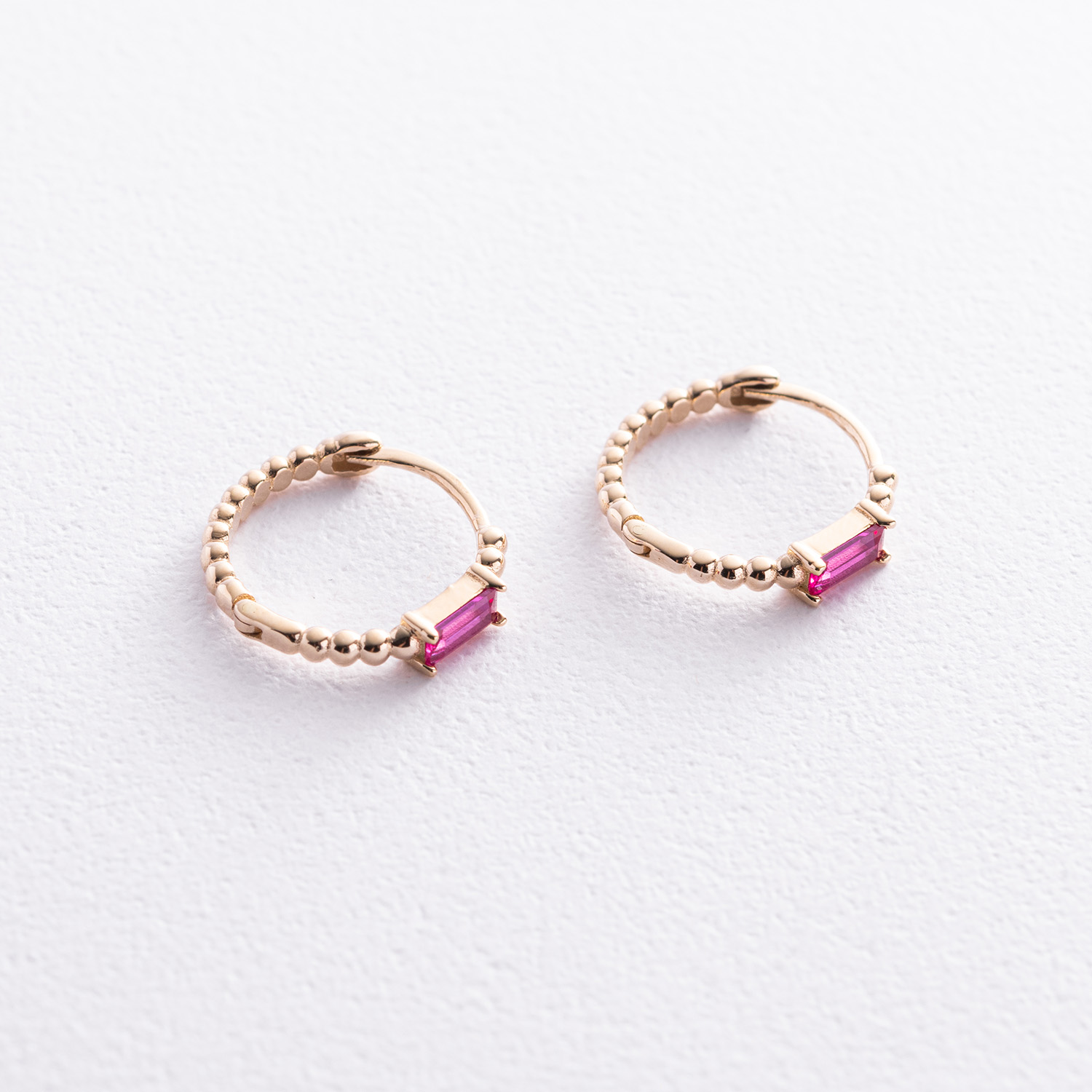 Золотые серьги - кольца "Аннабель" с розовыми фианитами с08499