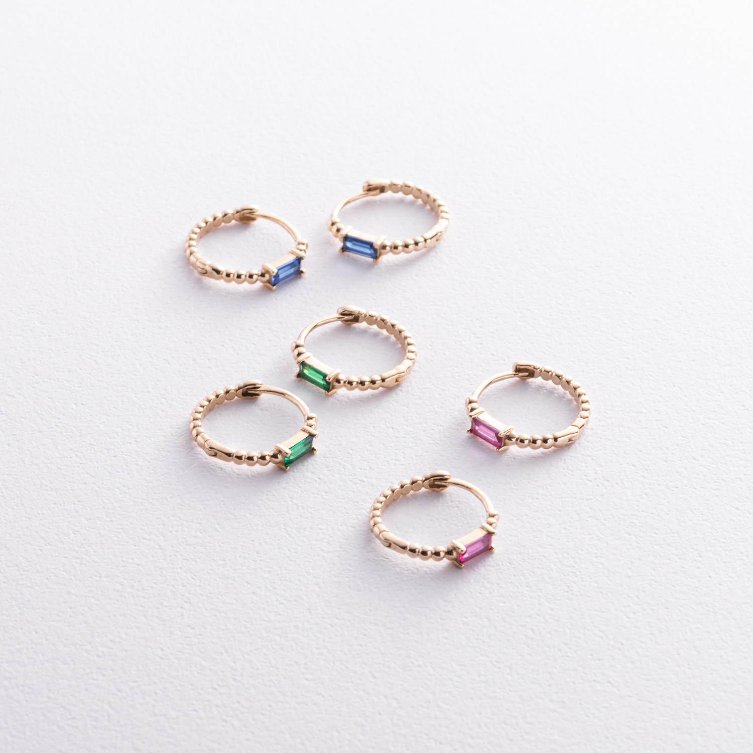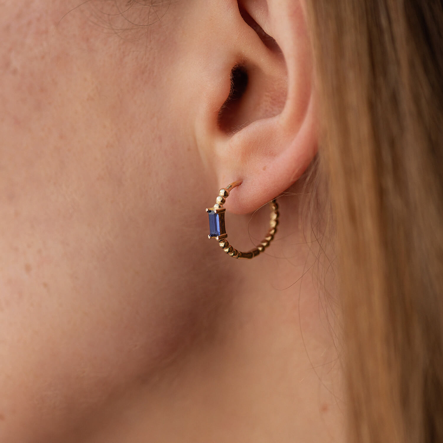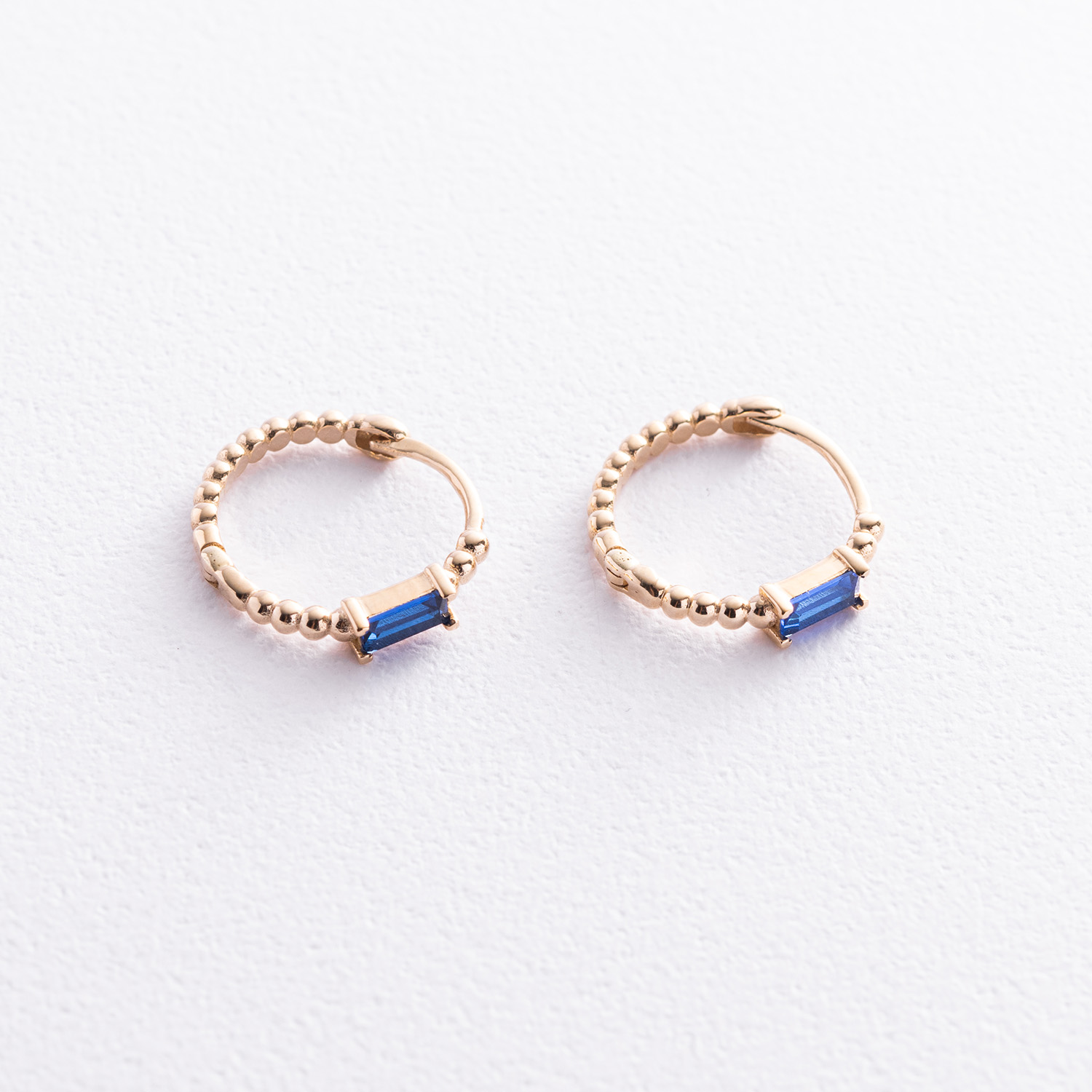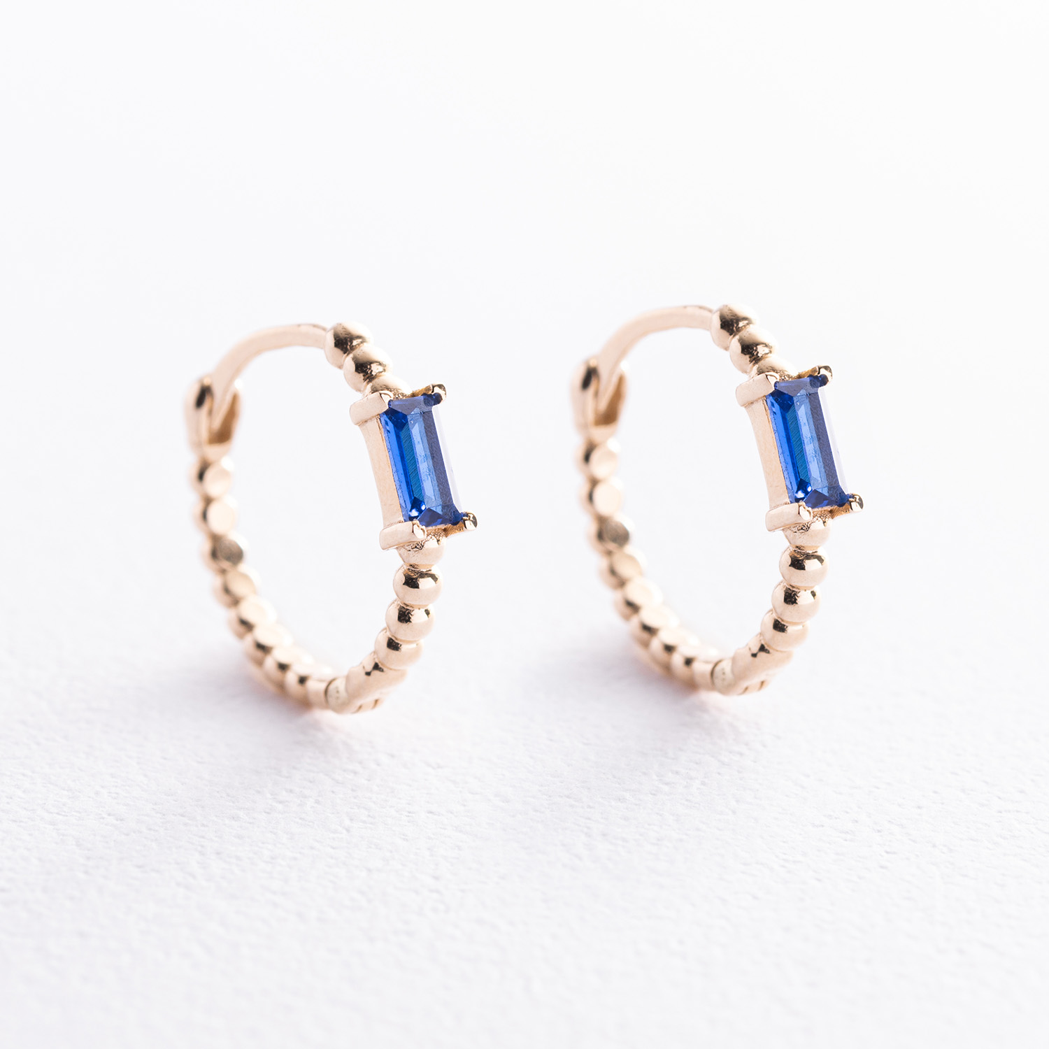 Золотые серьги - кольца "Аннабель" с синими фианитами с08498